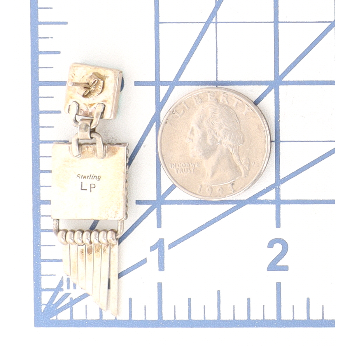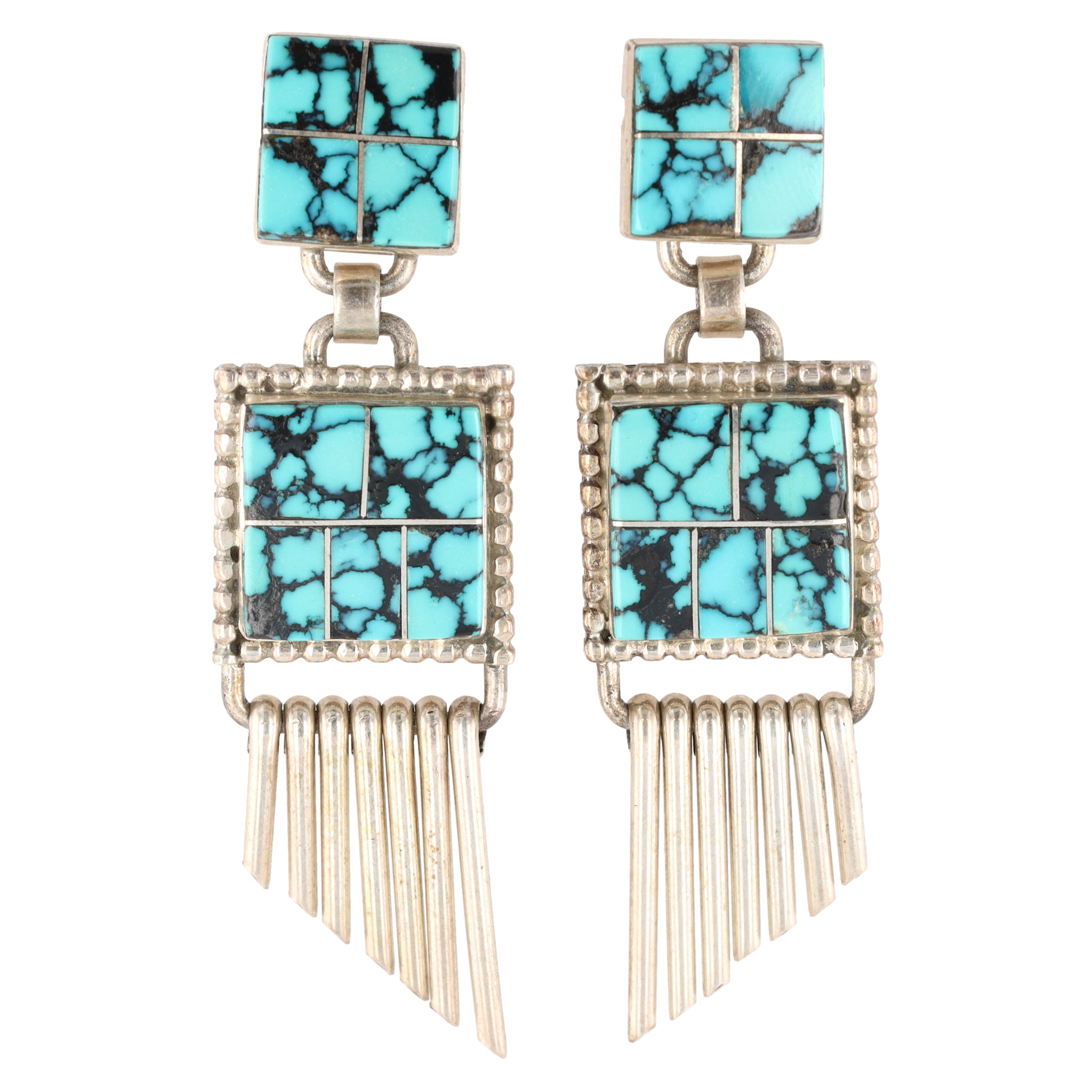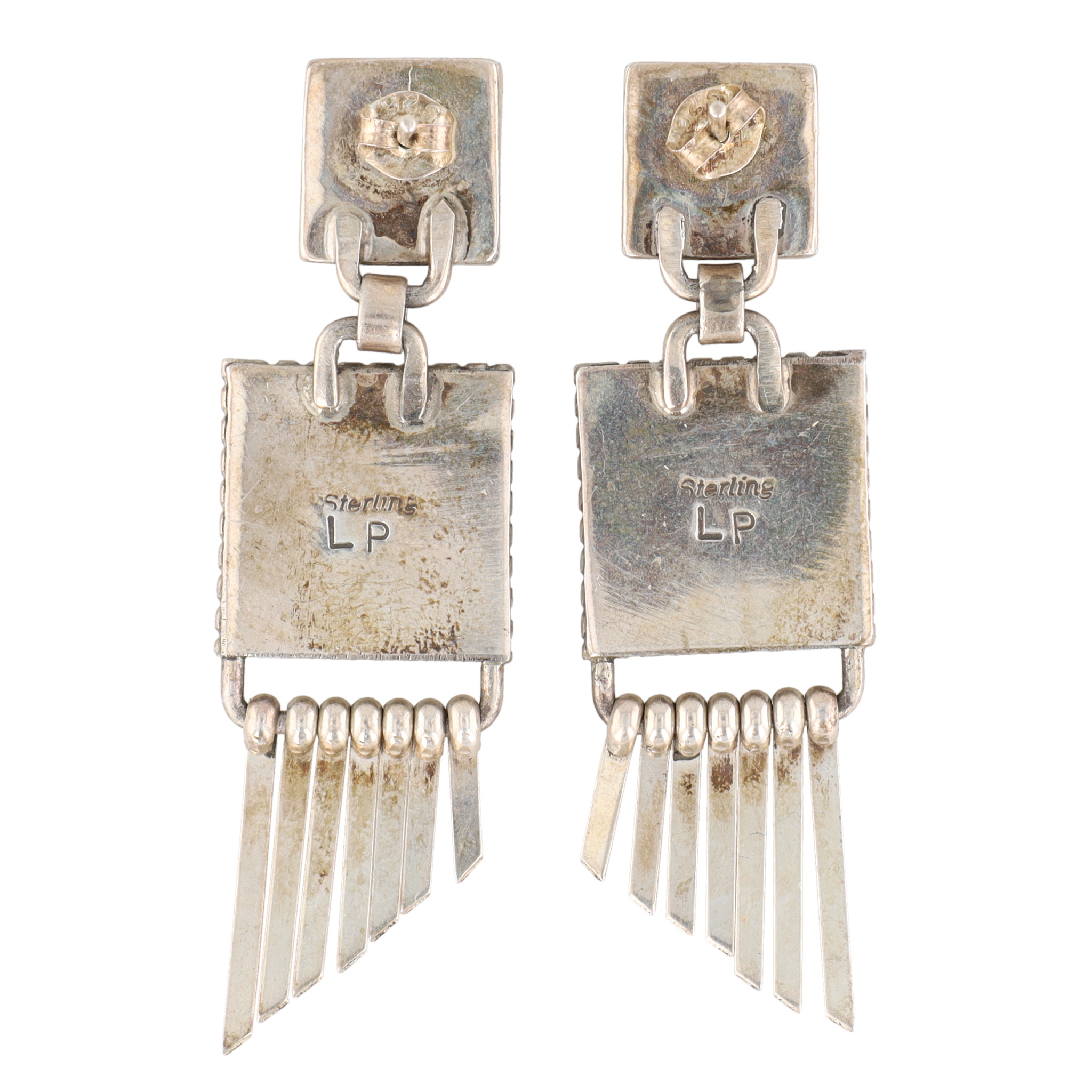 Signed LP Navajo Sterling Spiderweb Turquoise Inlay Dangle Earrings
