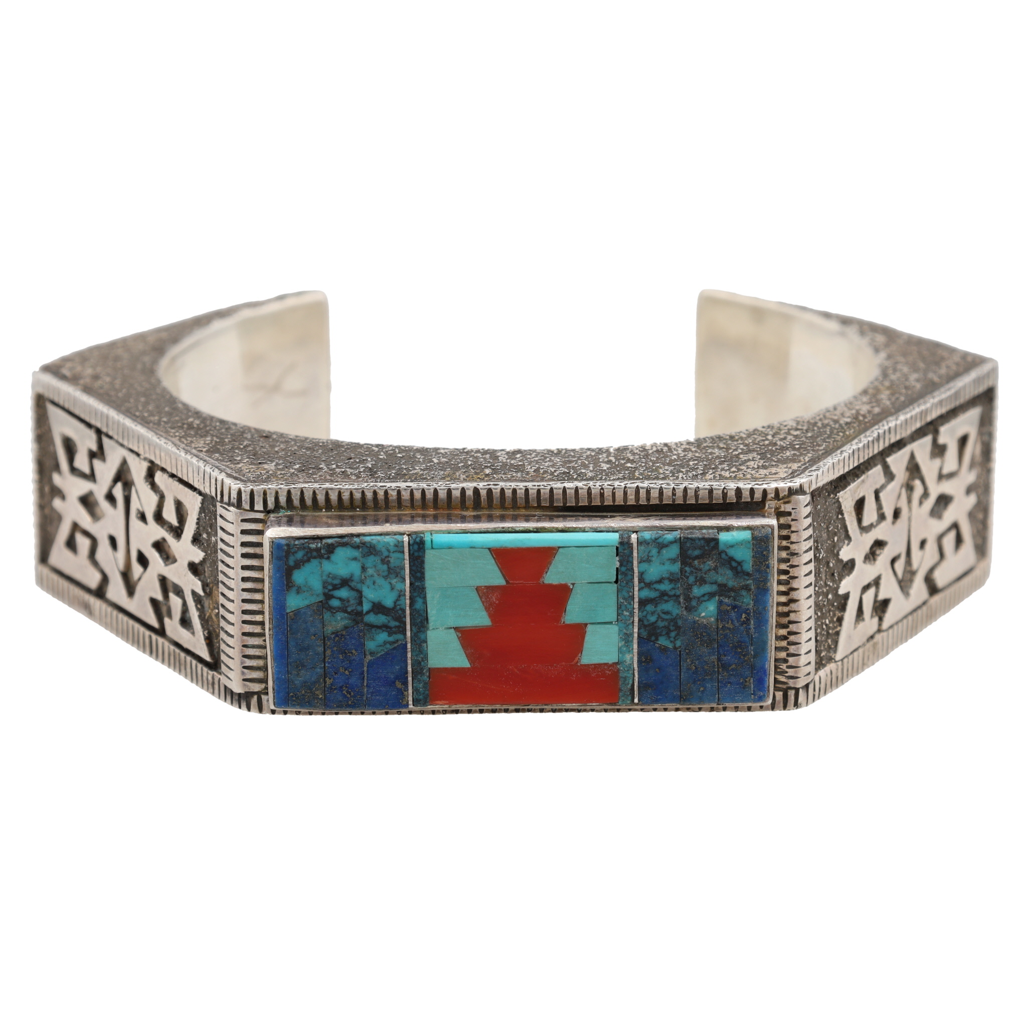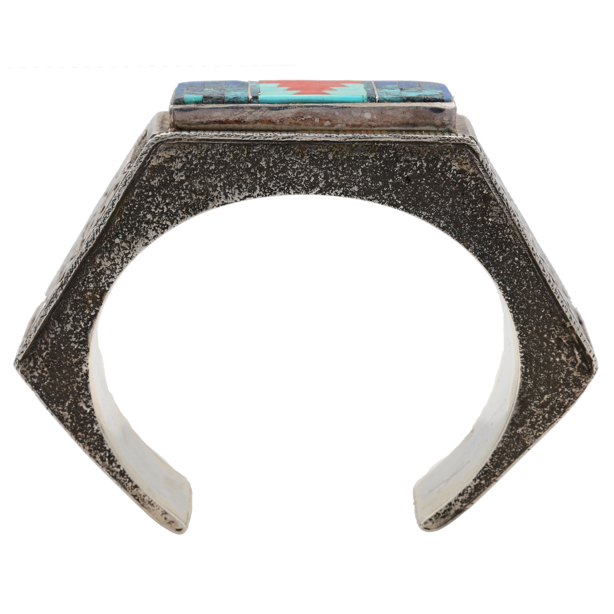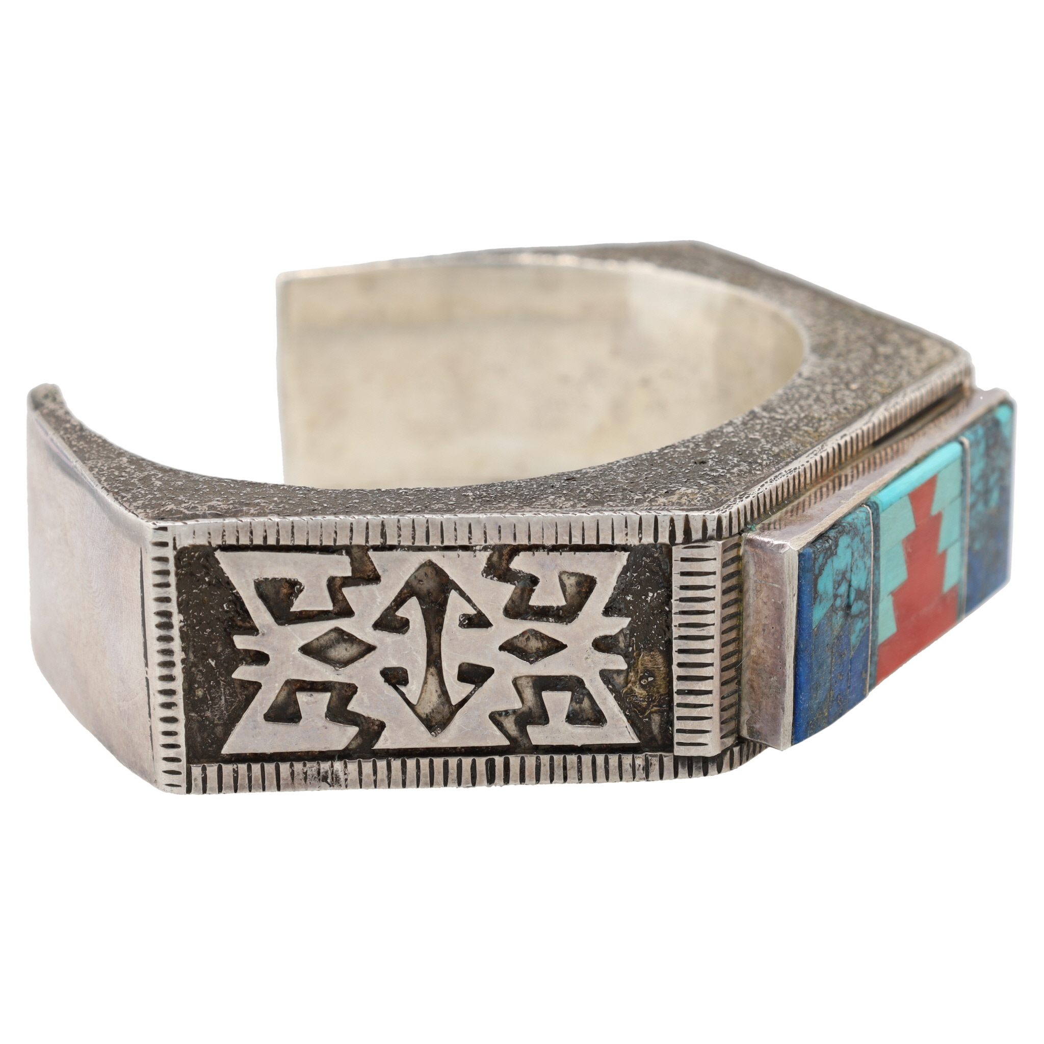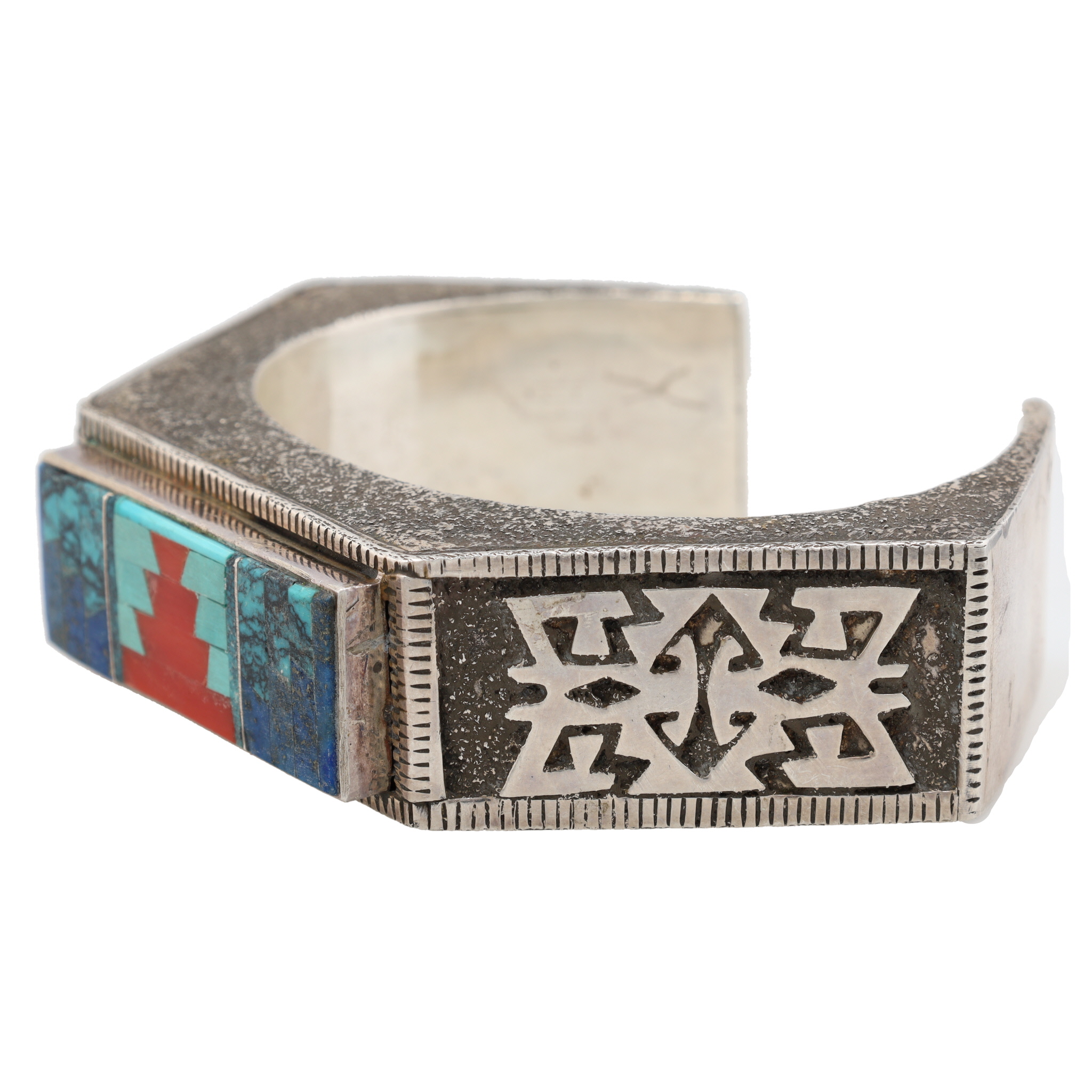 Vintage Navajo Sterling Cast Multi Stone Inlay Cuff Bracelet