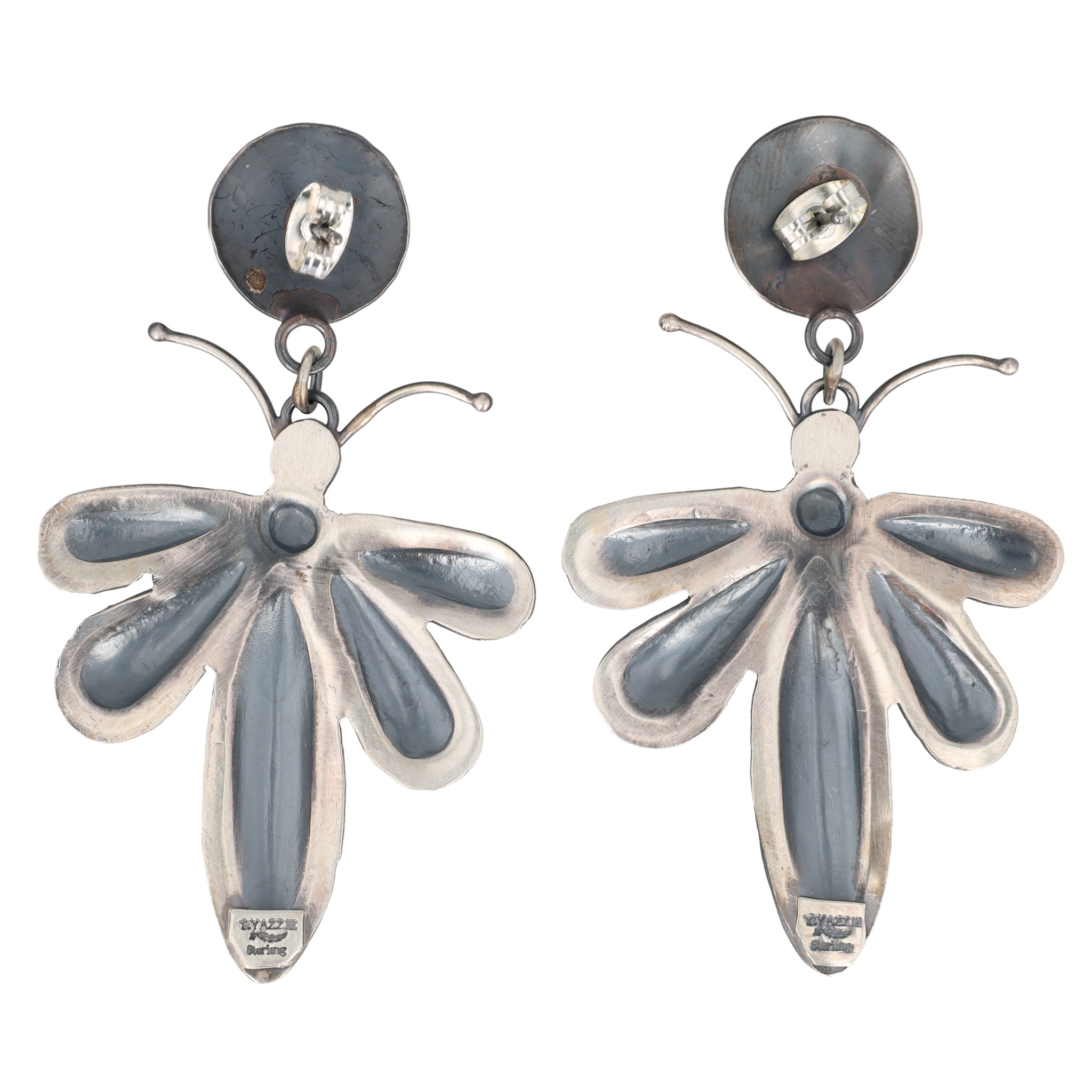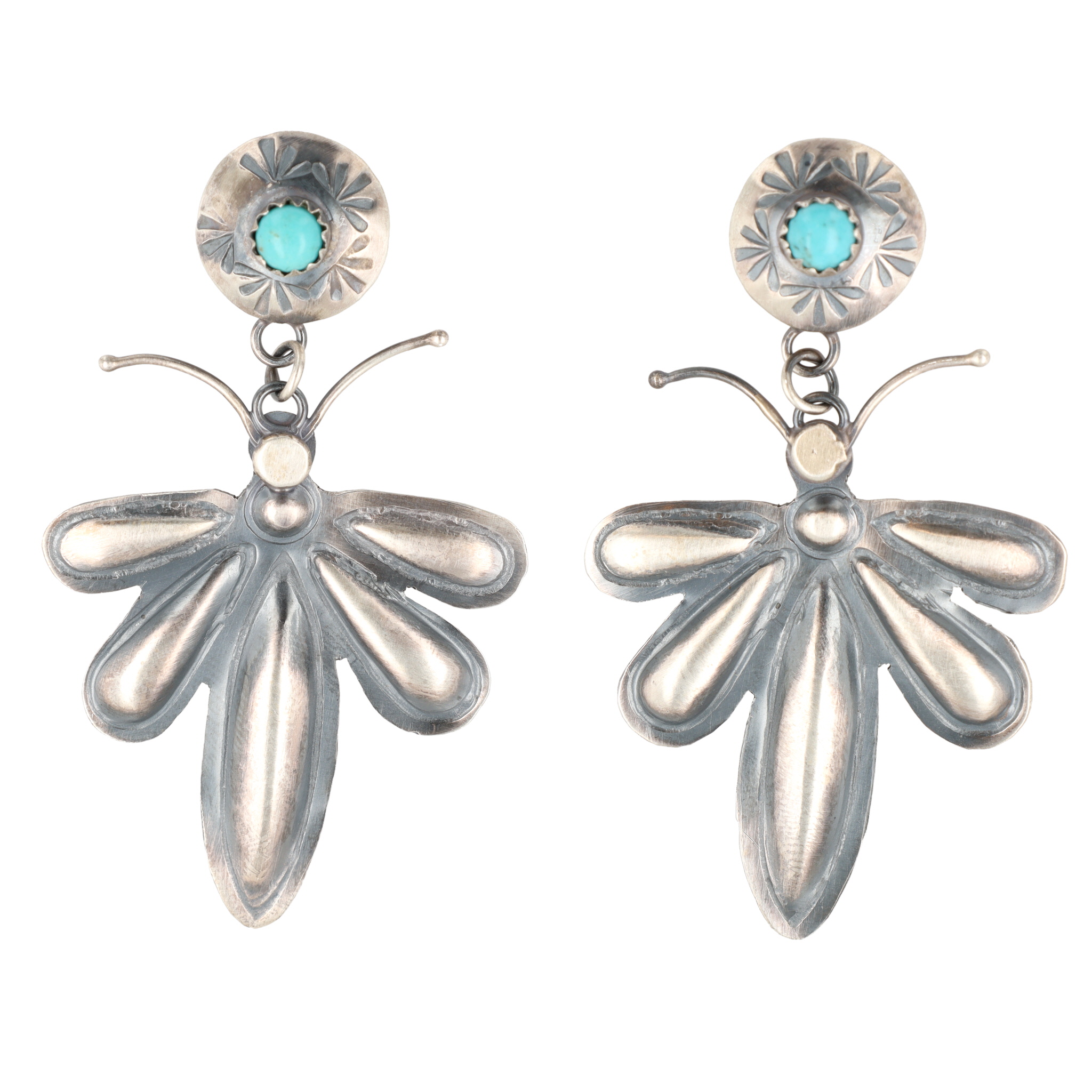 Tim Yazzie Navajo Sterling Turquoise Dragonfly Dangle Earrings