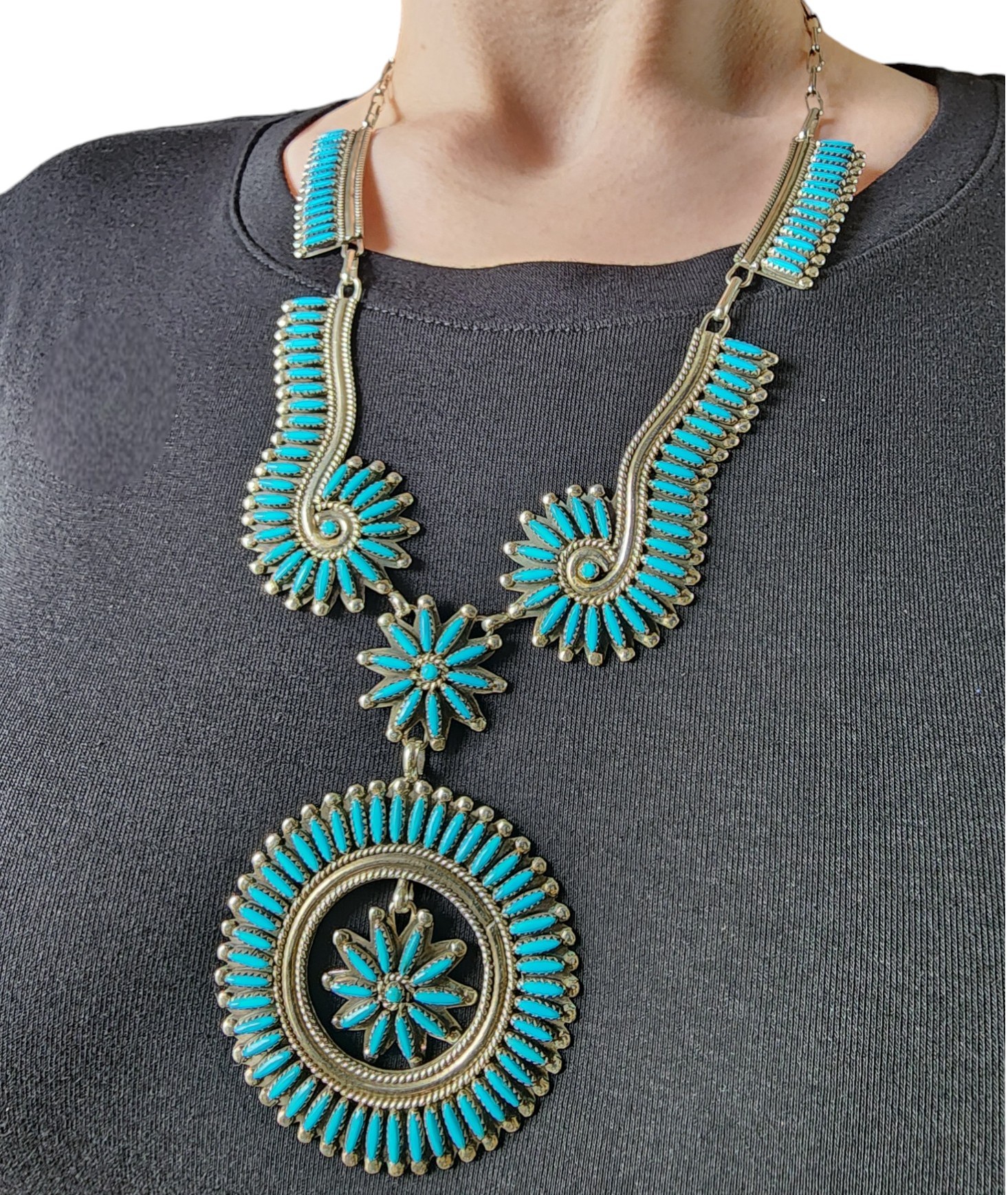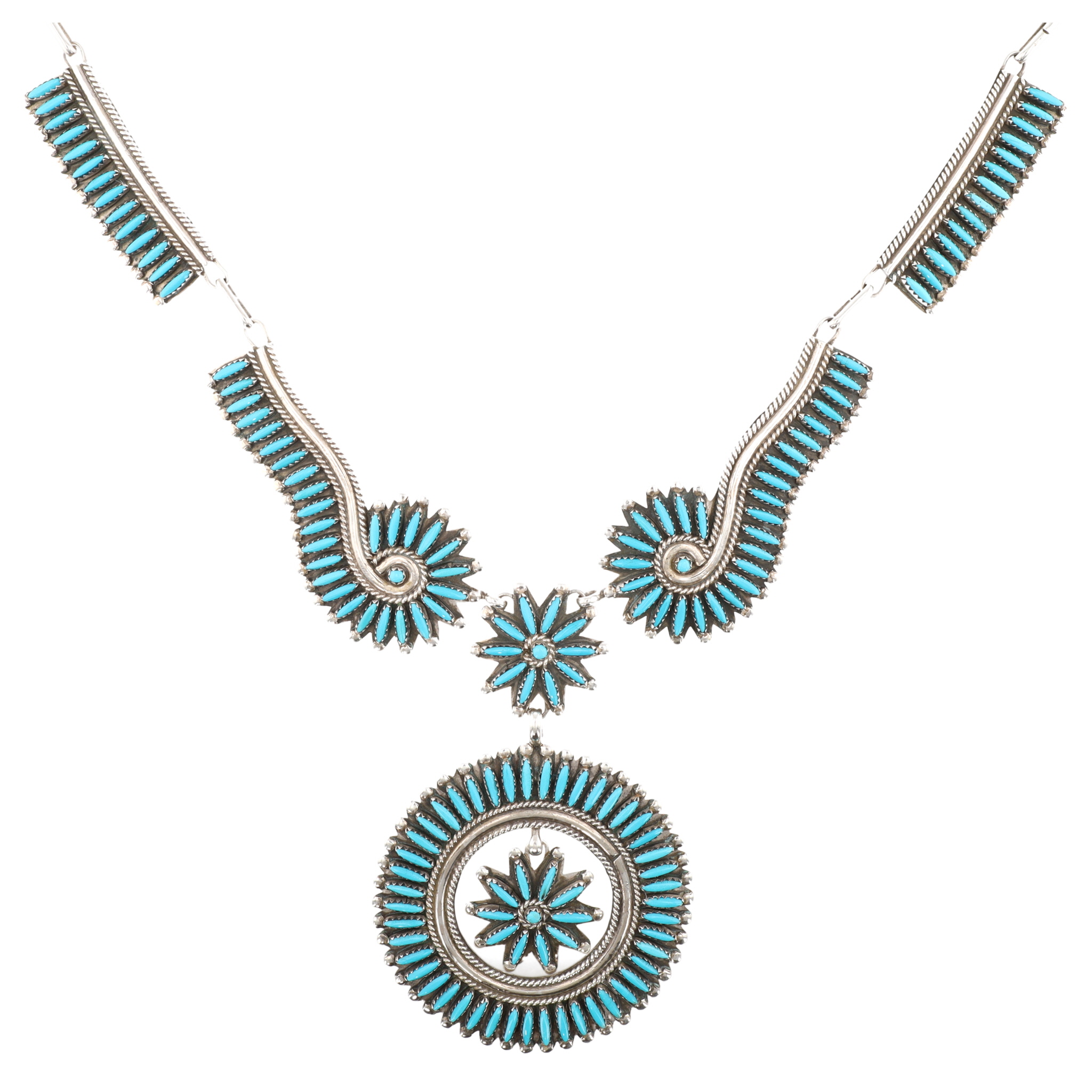Corbet Joe Navajo Sterling Turquoise Needlepoint Necklace