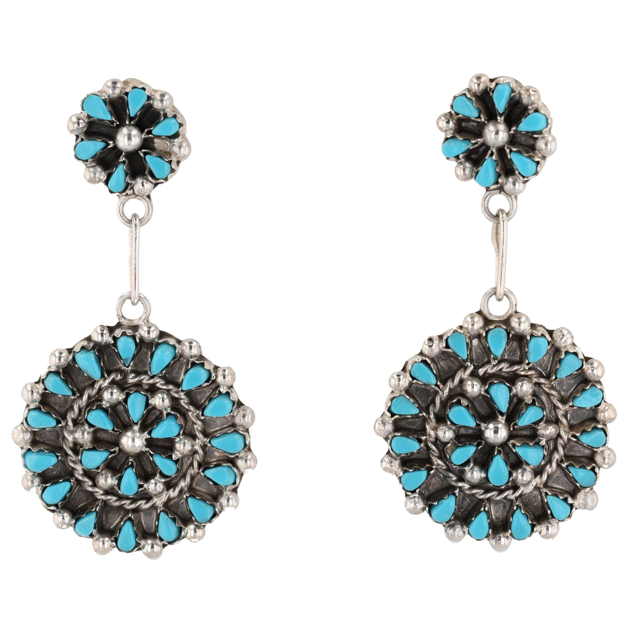 Tricia Leekity Zuni Sterling Kingman Turquoise Cluster Dangle Earrings