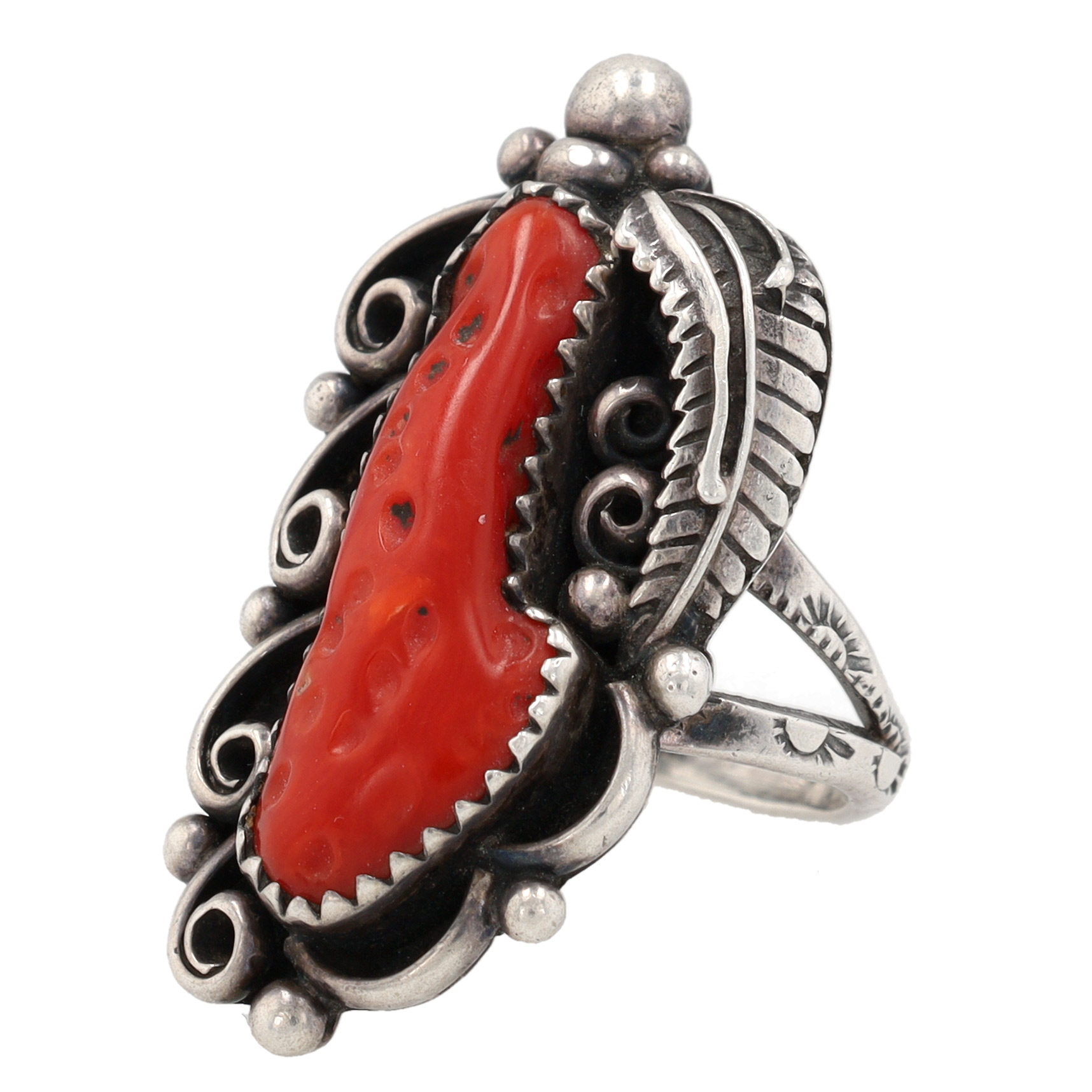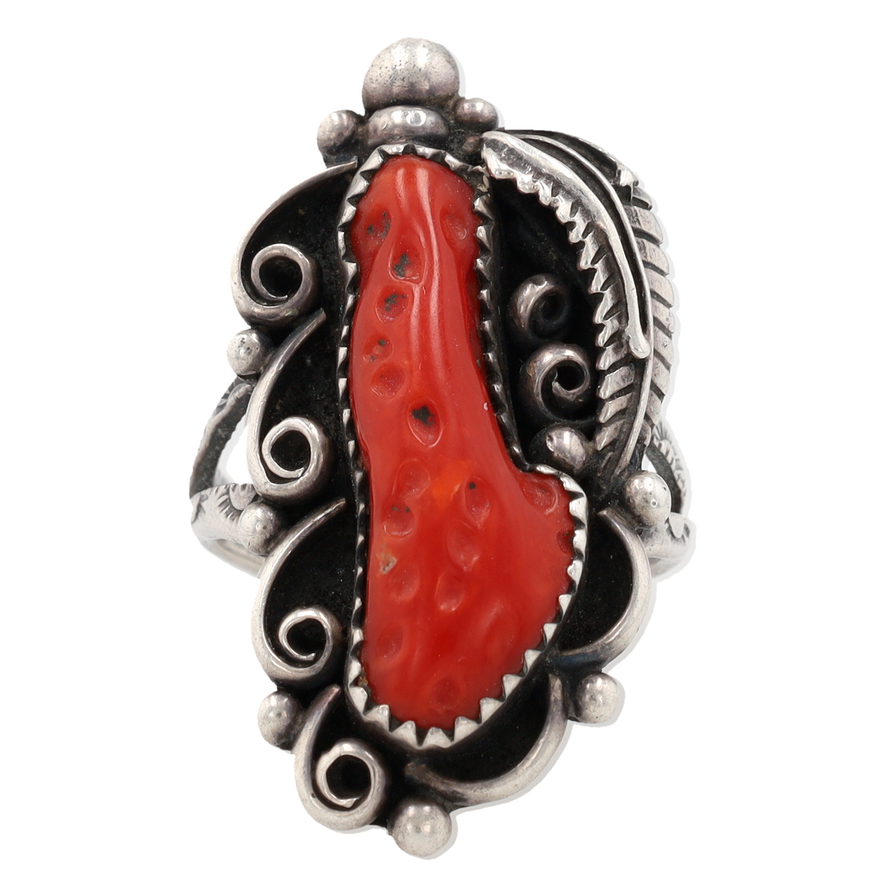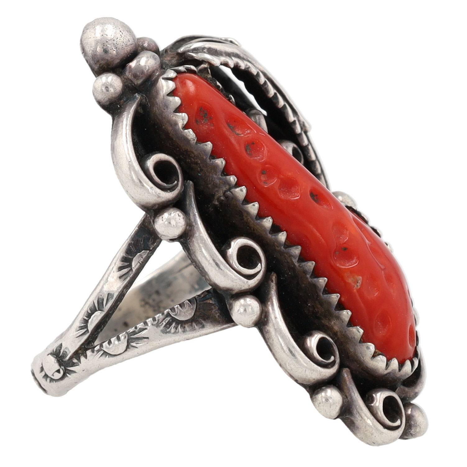 Signed Navajo Sterling Stamped Branch Coral Ring Sz 6.5