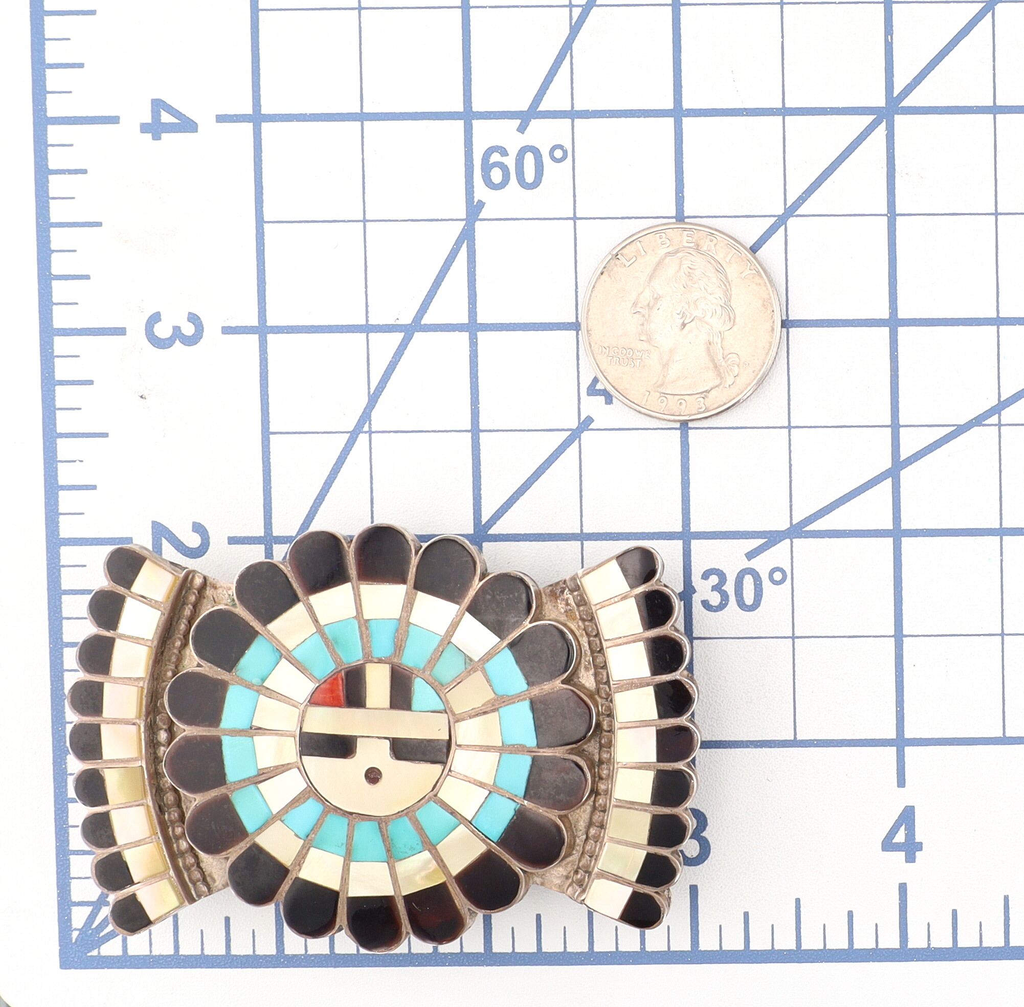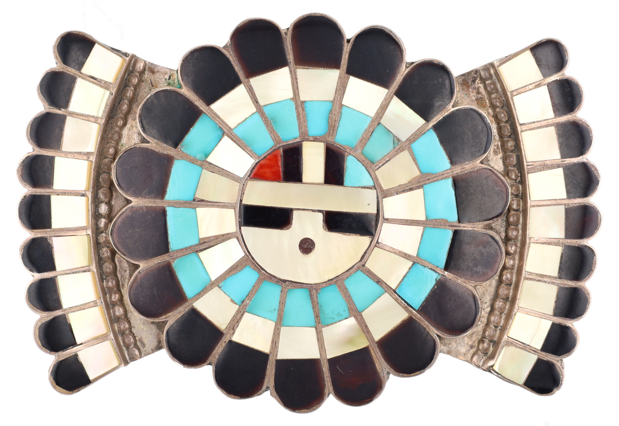 Jose and Dora Massie Zuni Sterling Multi Stone Inlay Sunface Belt Buckle