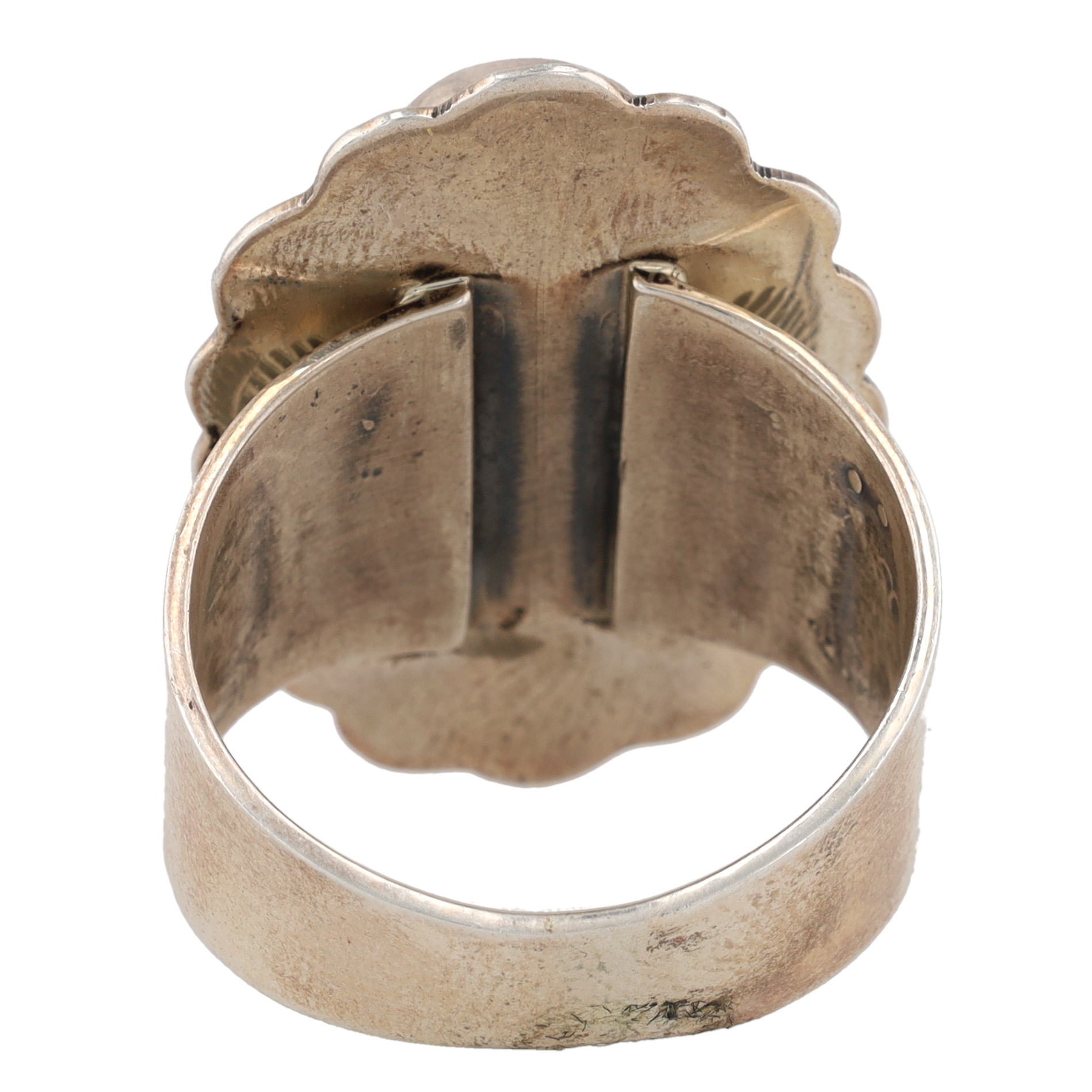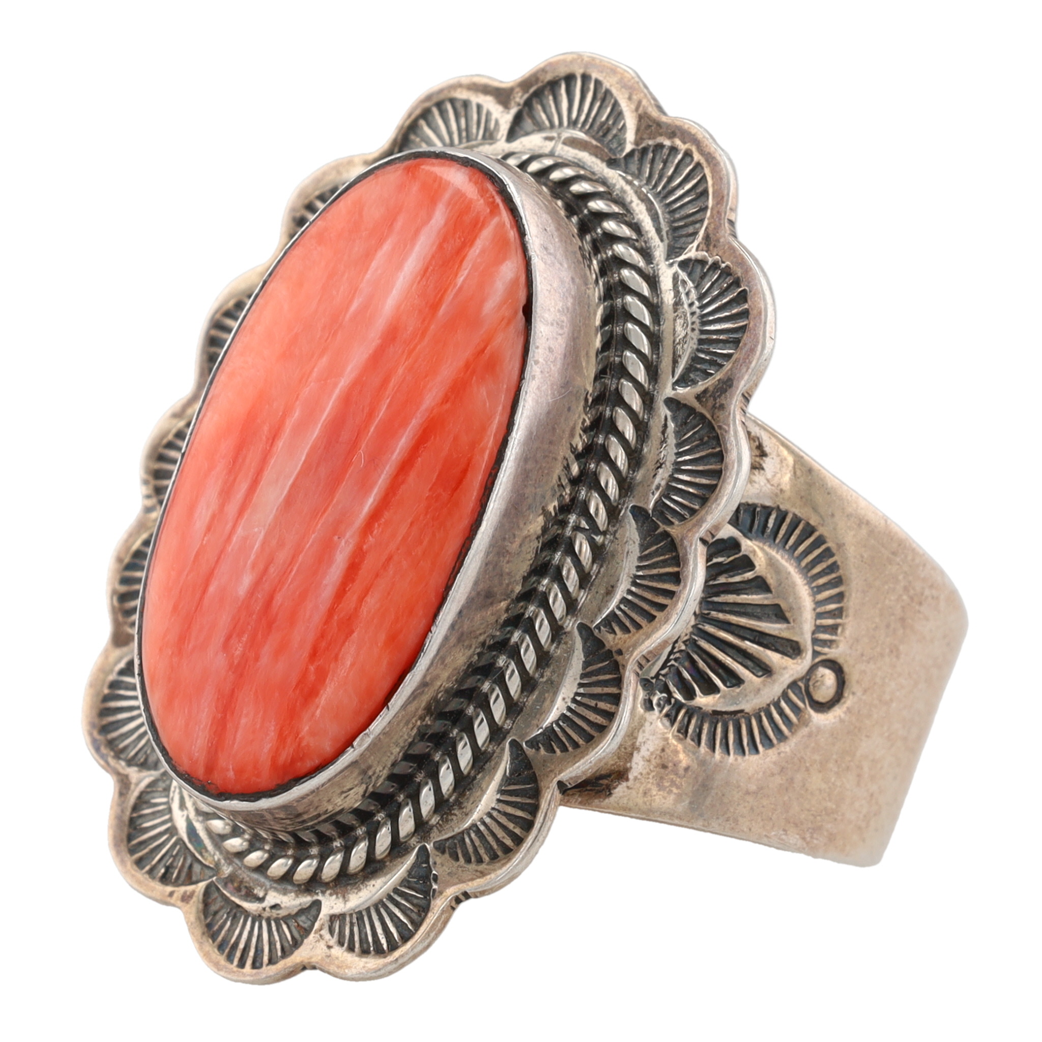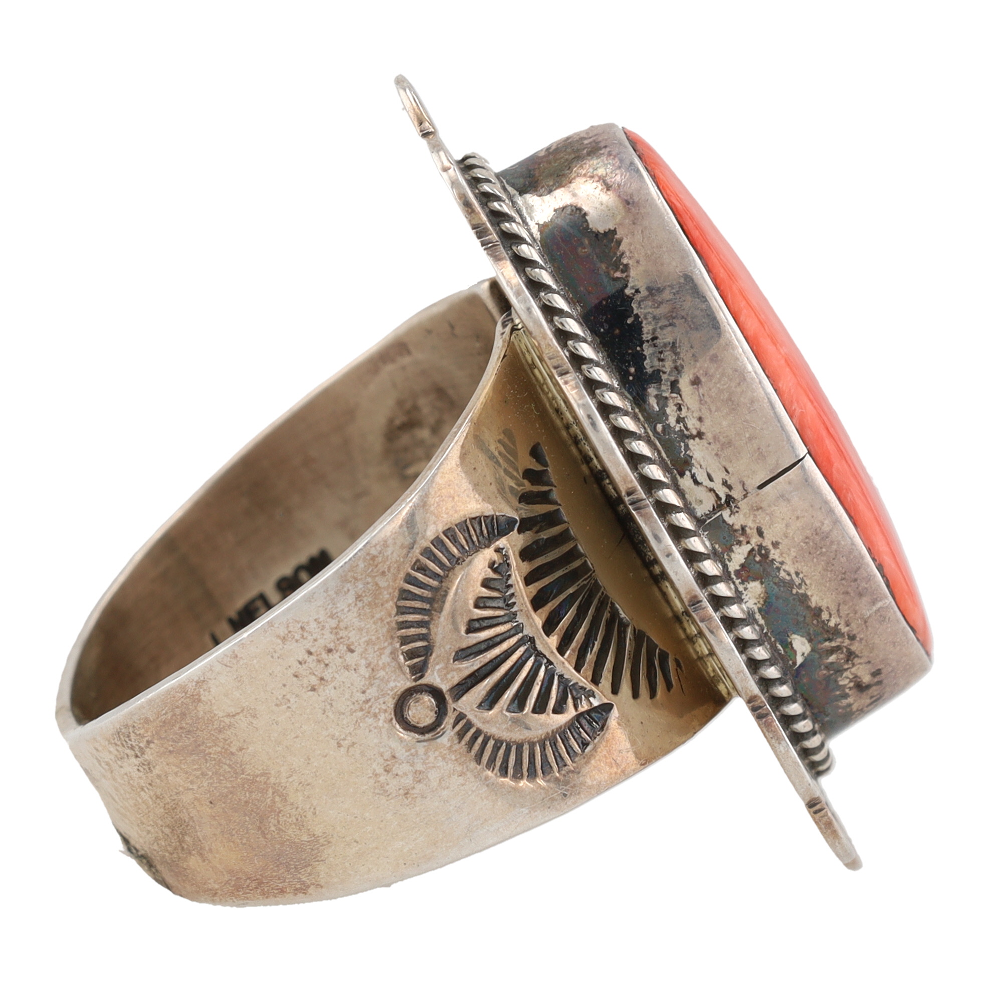 Signed JN (possibly Jeffrey Nelson) Navajo Sterling Stamped Spiny Oyster Men’s Ring Sz 14