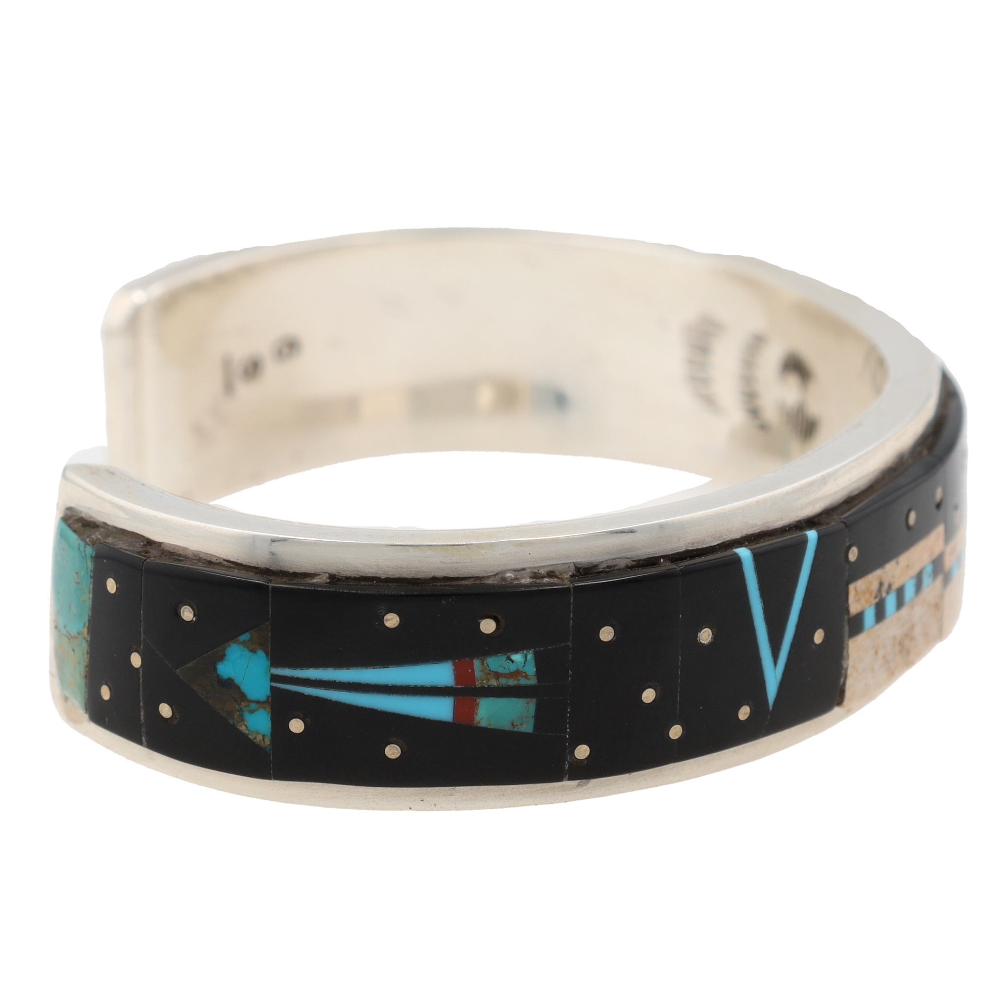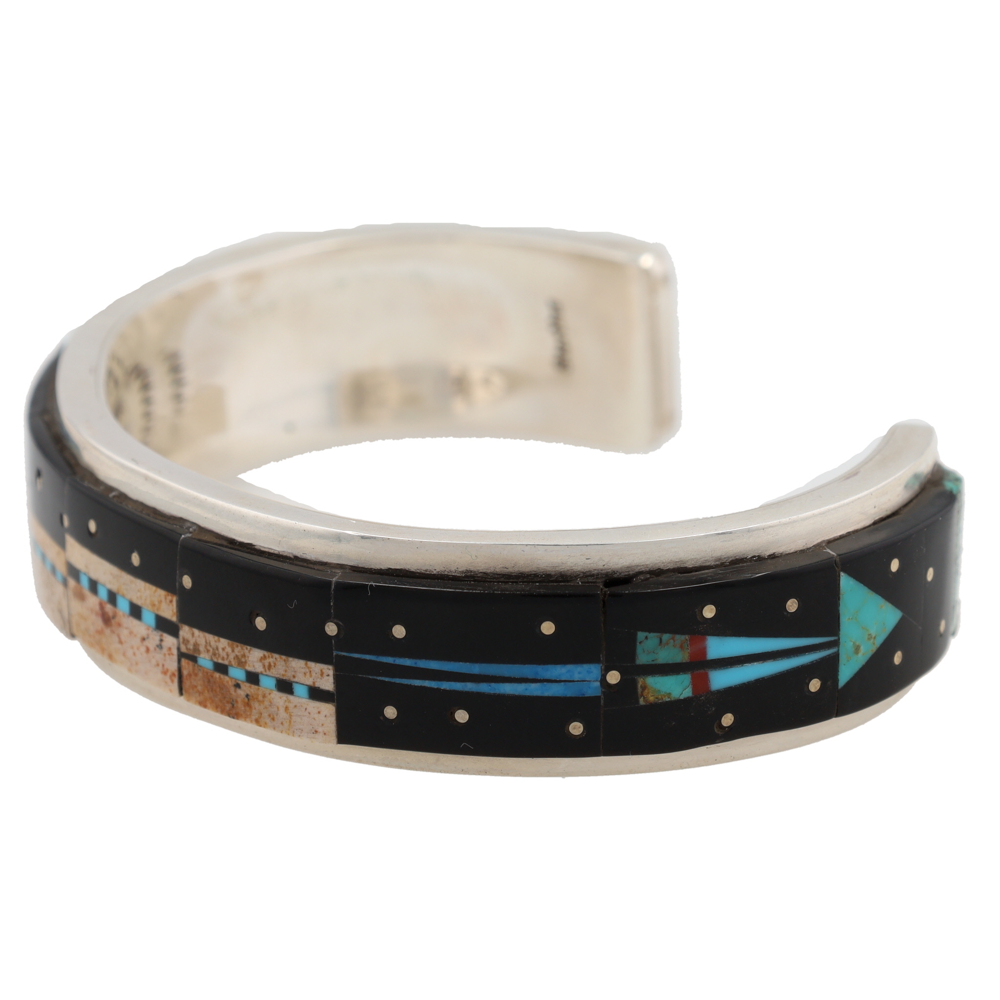 Gilbert Smith Navajo Sterling Multi Stone Inlay Pueblo Cuff Bracelet