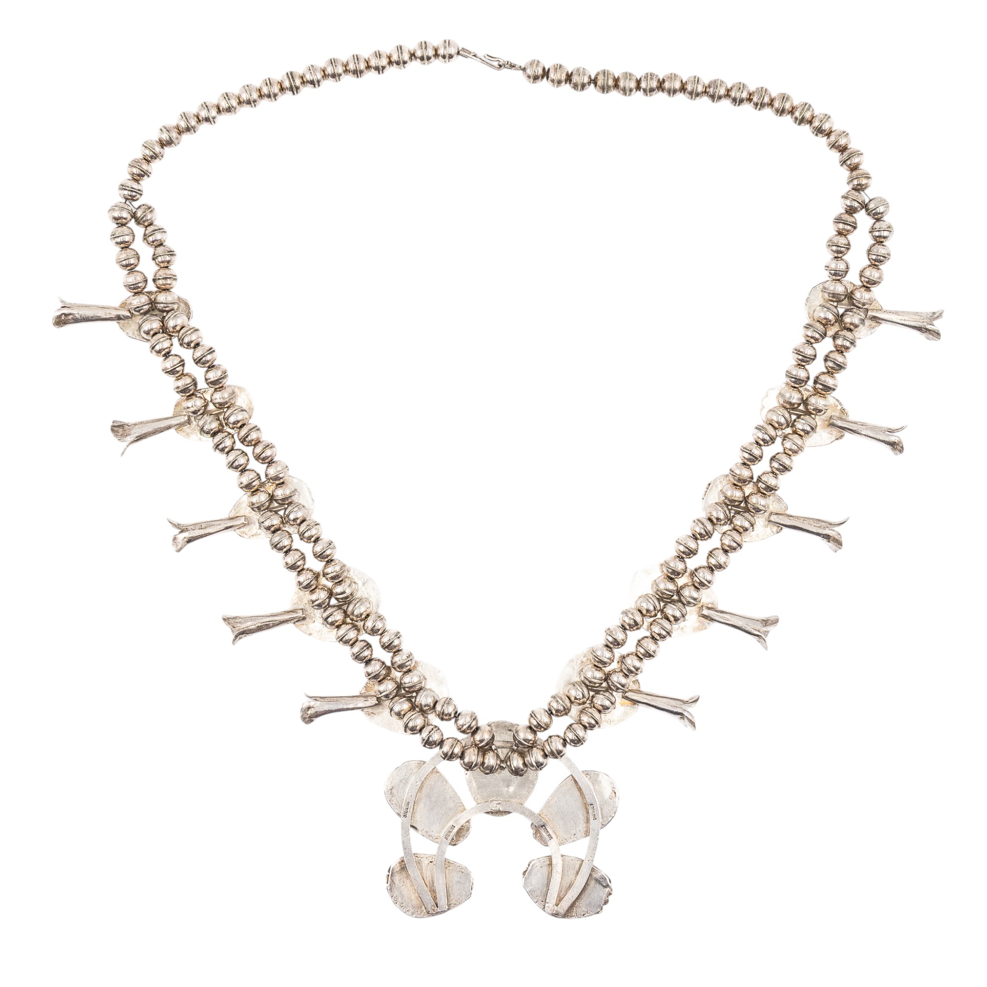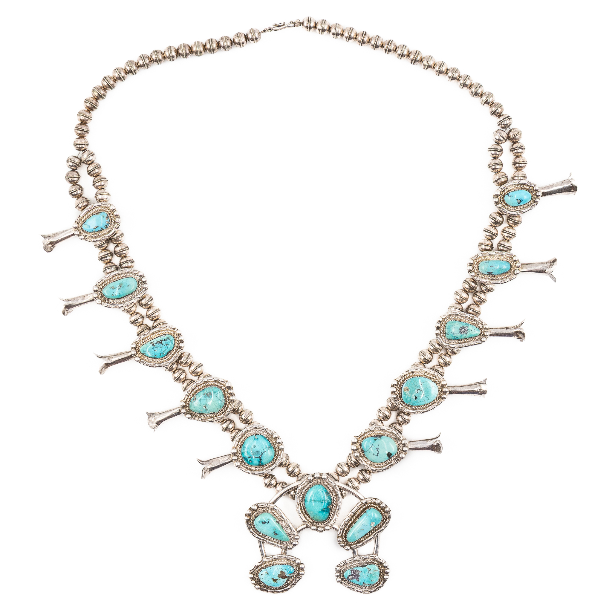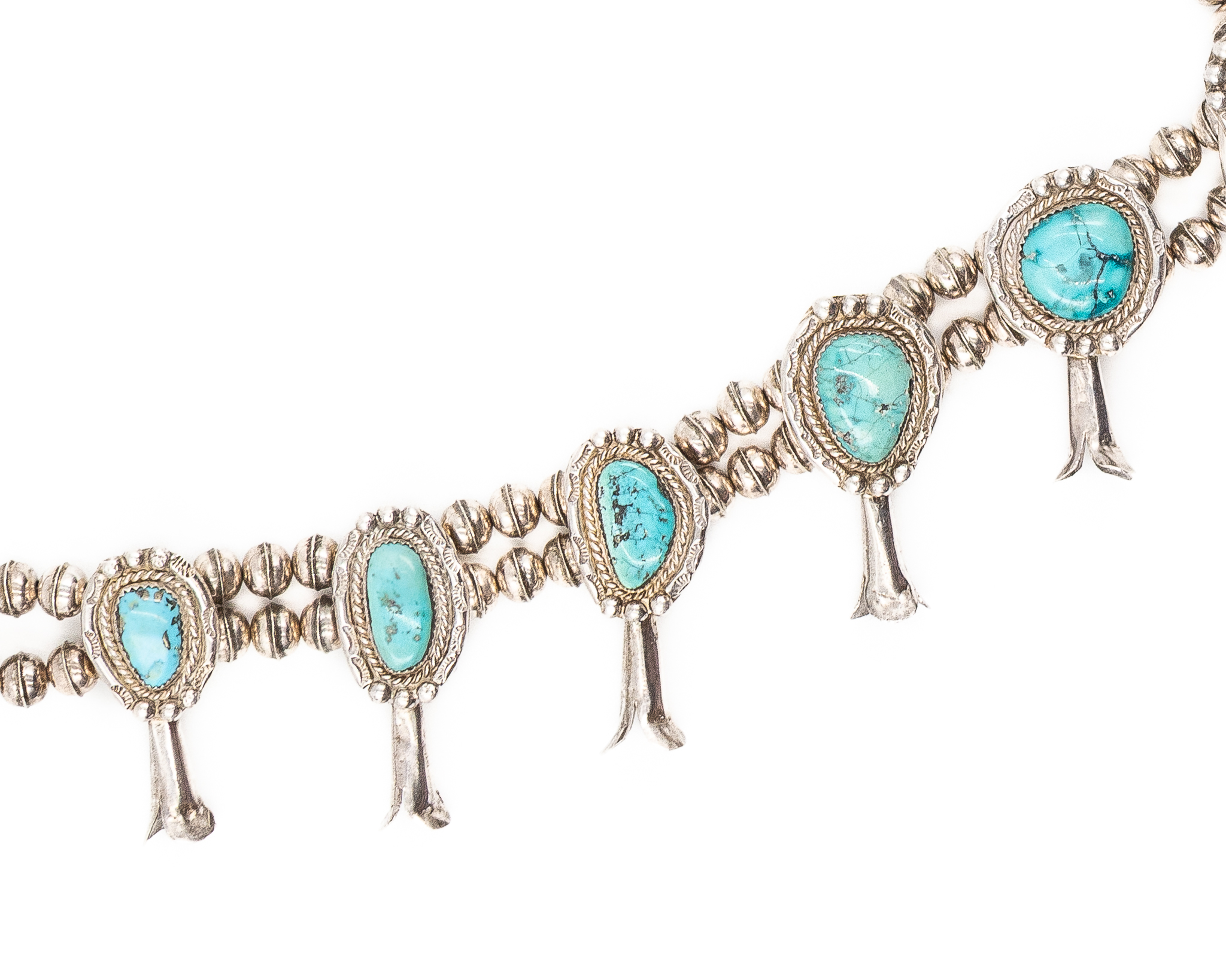Navajo Sterling Turquoise Squash Blossom Necklace