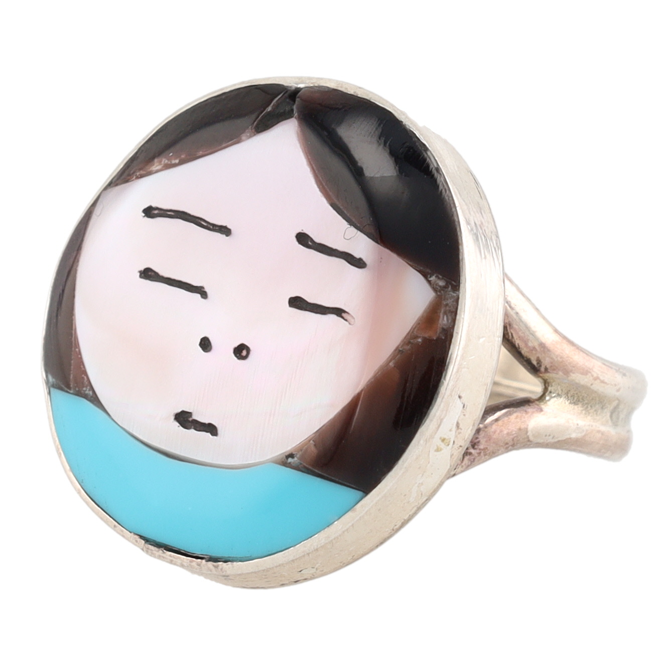 Joyce Waseta Zuni Sterling Multi Stone Inlay Olla Maiden Face Ring Sz 6