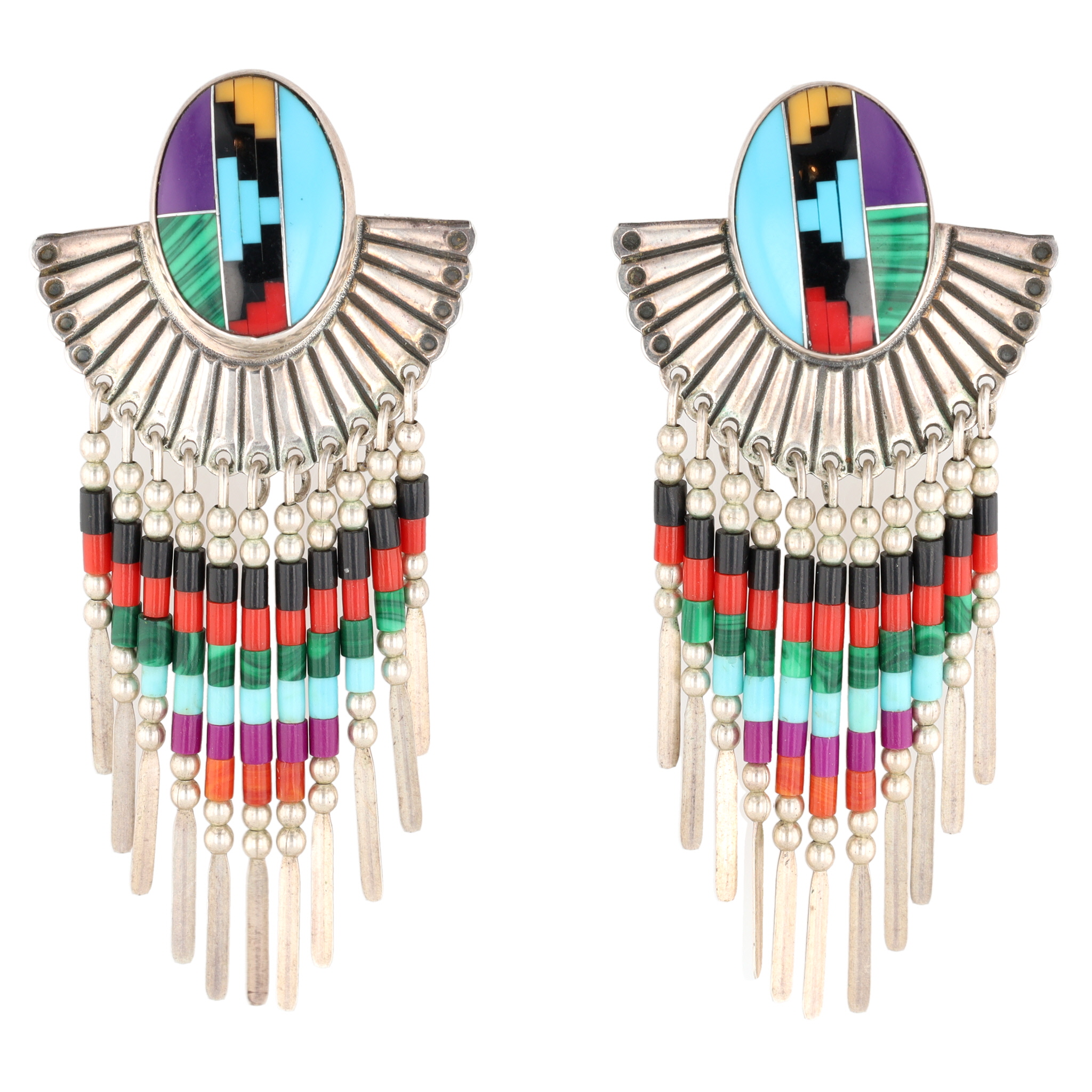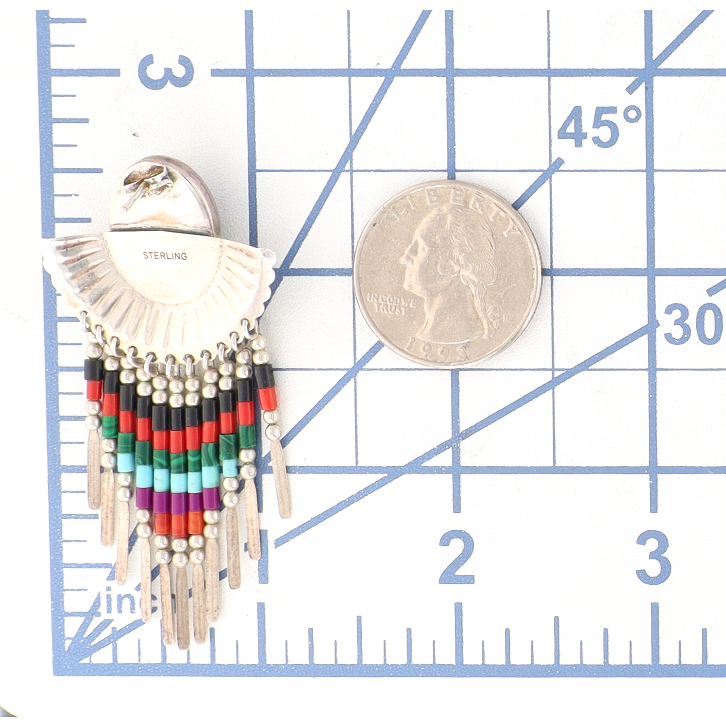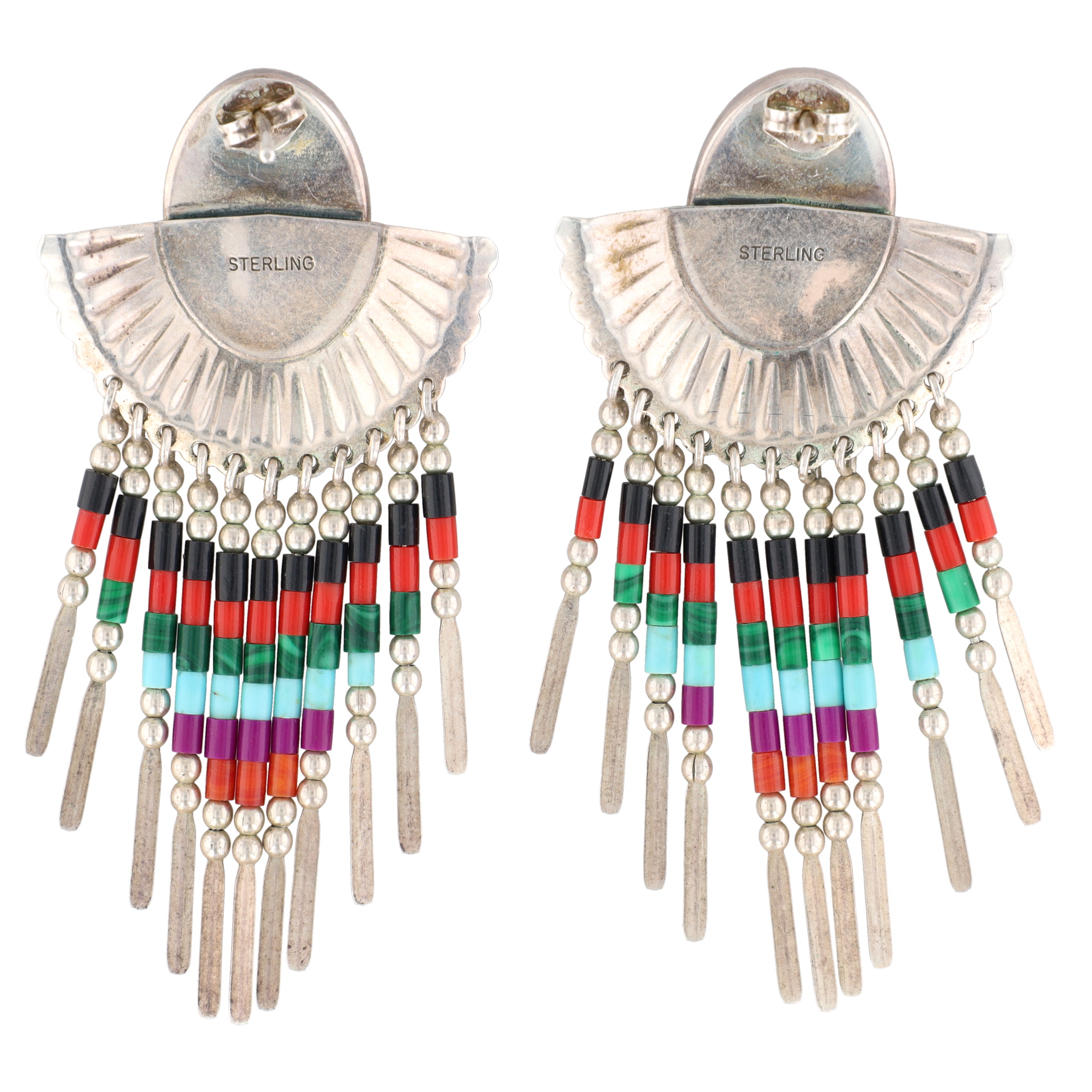 Navajo Sterling Multi Stone Concho Fringe Earrings
