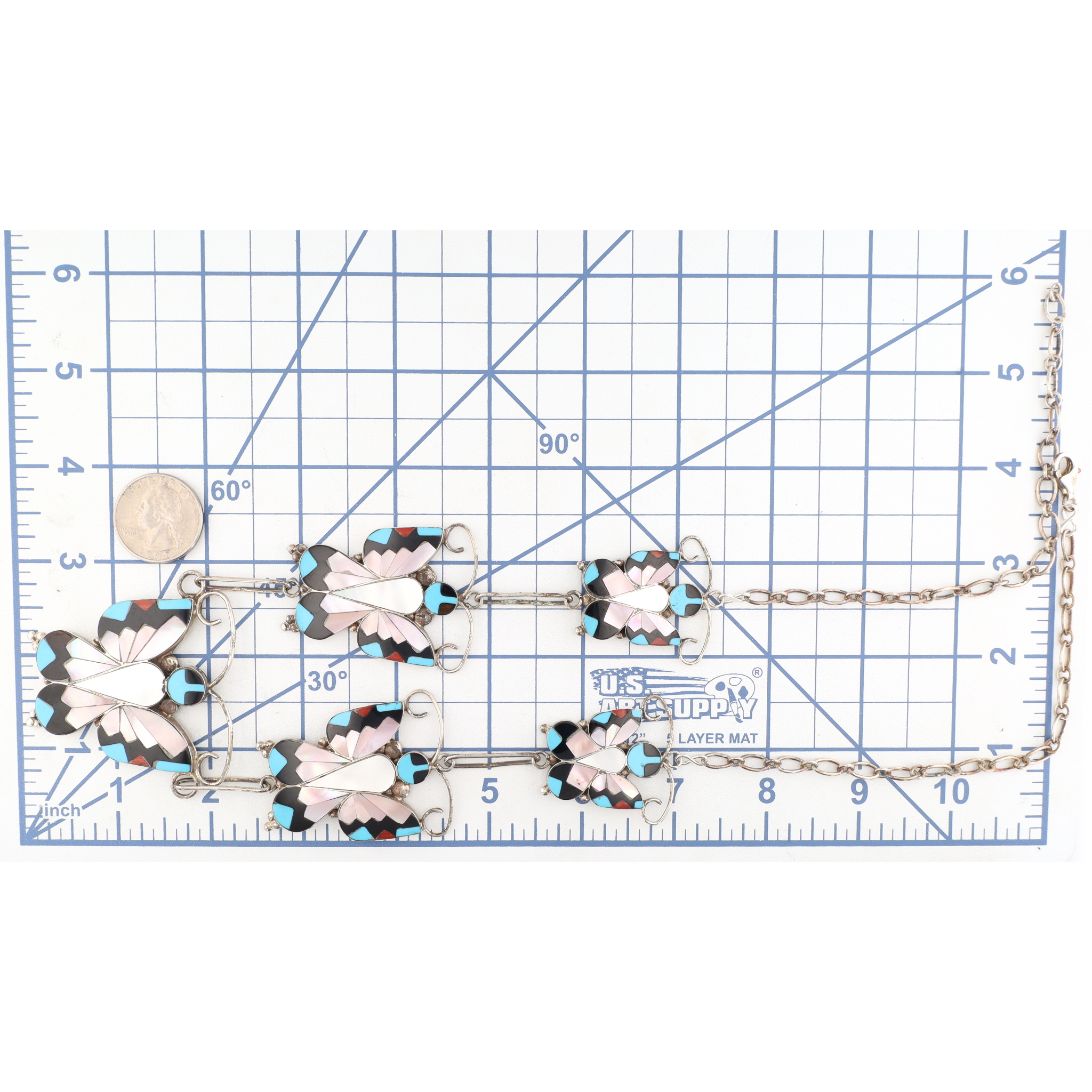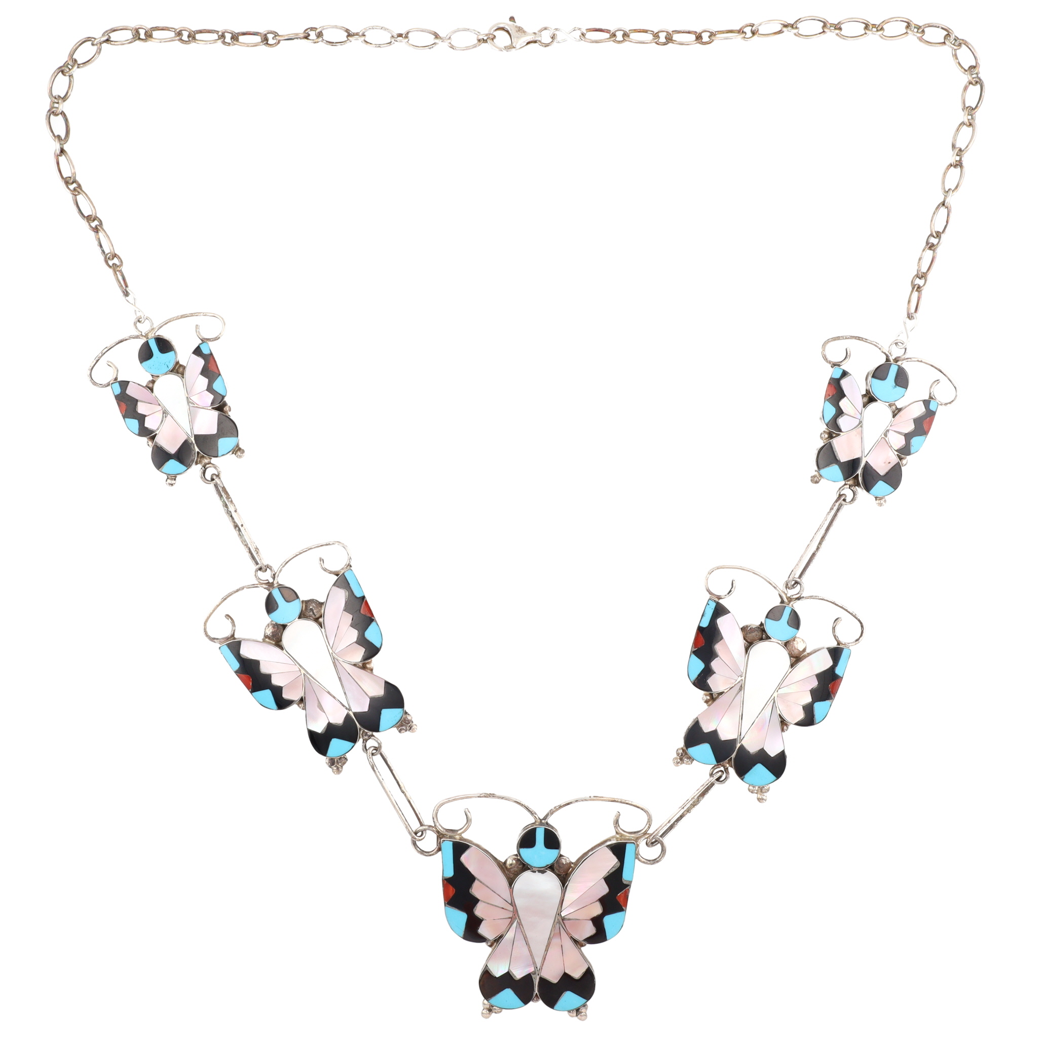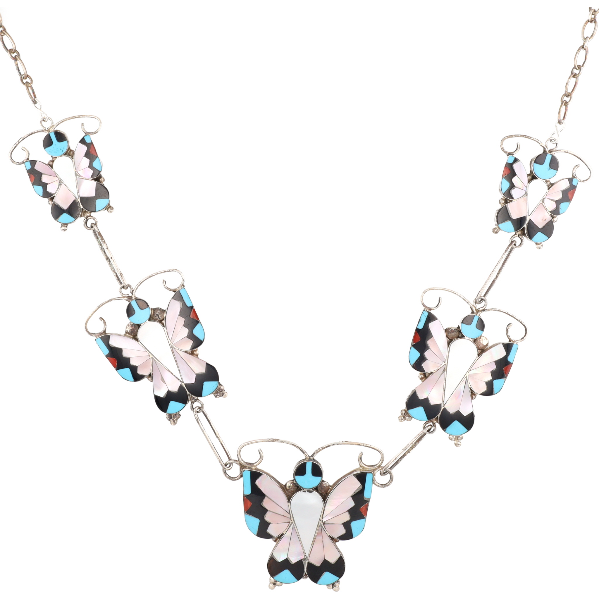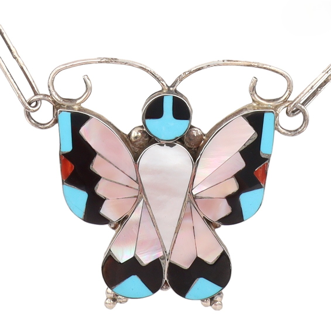 Alison Dishta Zuni Sterling Multi Stone Inlay Butterfly Necklace