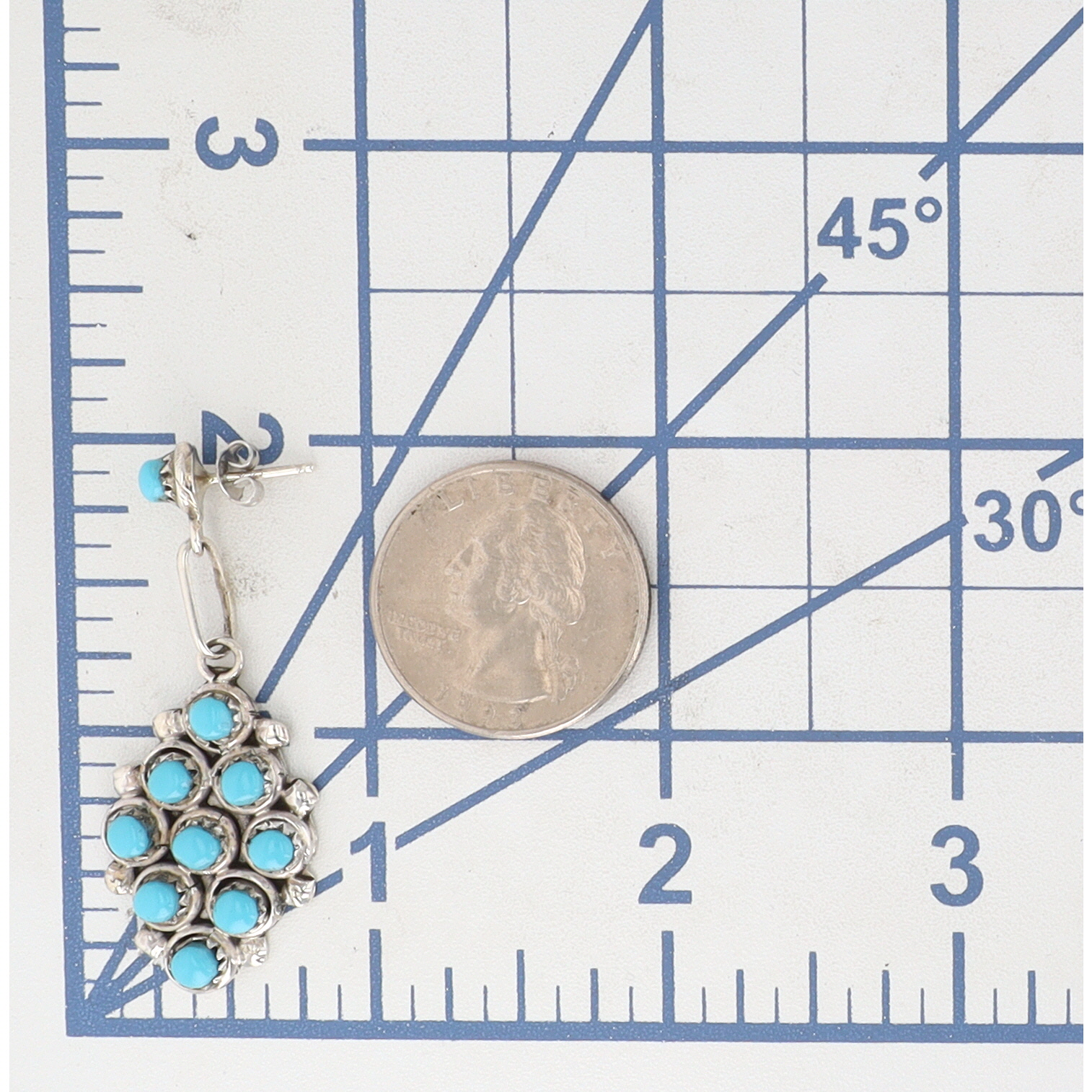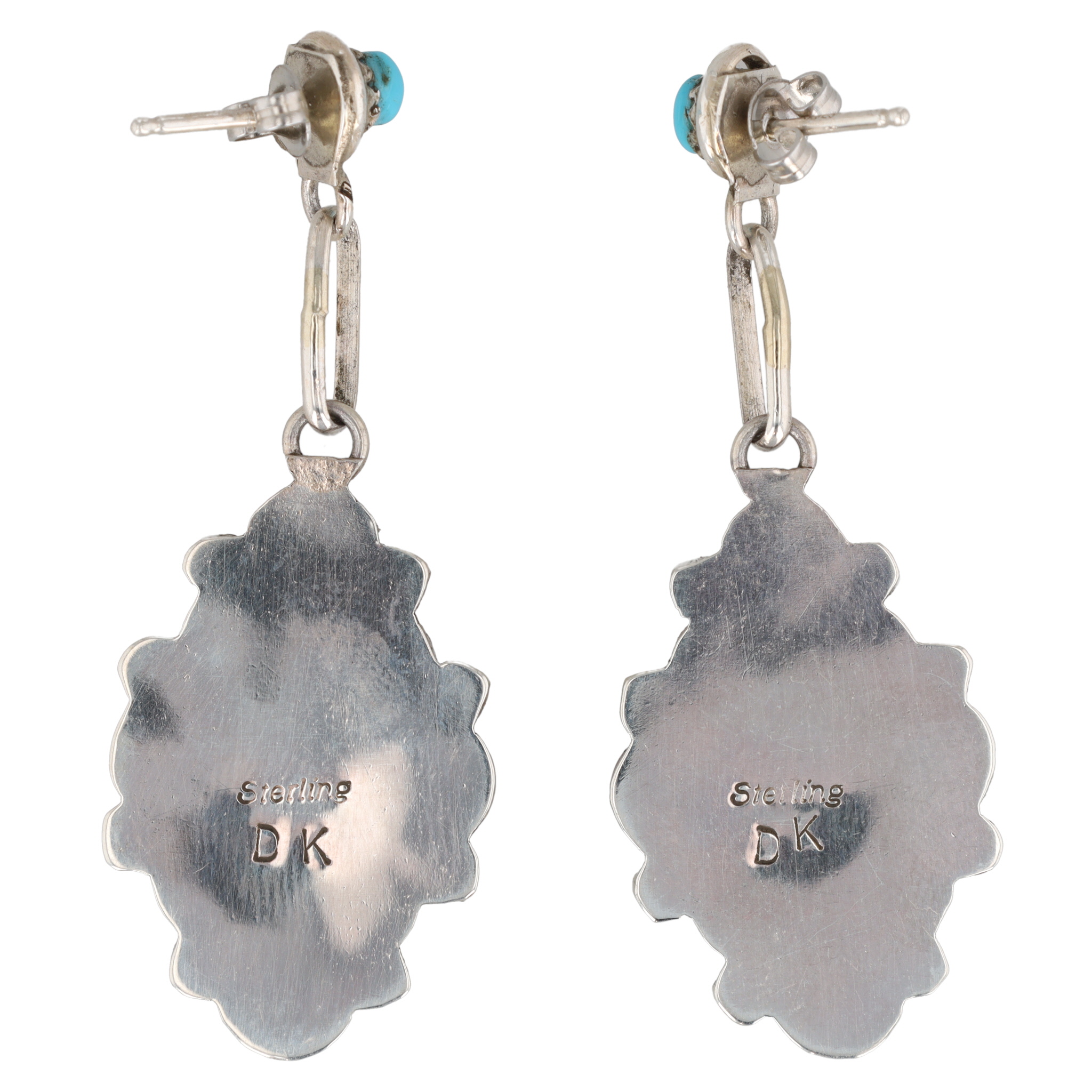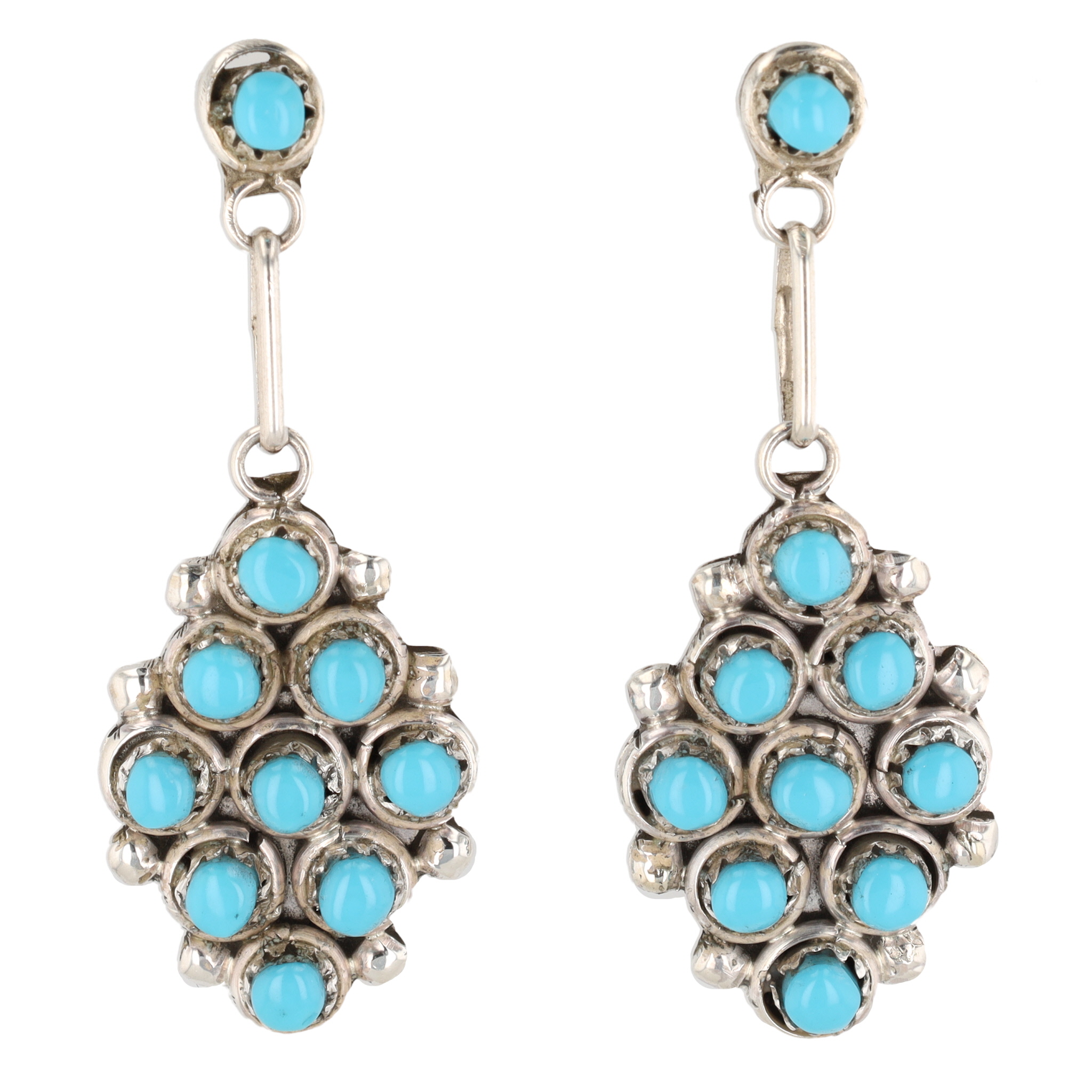 Davis Kaamasee Zuni Sterling Kingman Turquoise Cluster Dangle Earrings