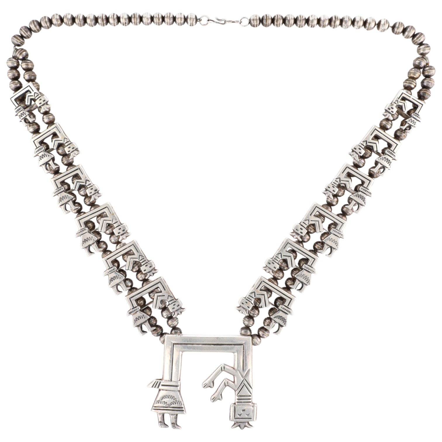 Francis Jones Navajo Sterling Yei Squash Blossom Necklace