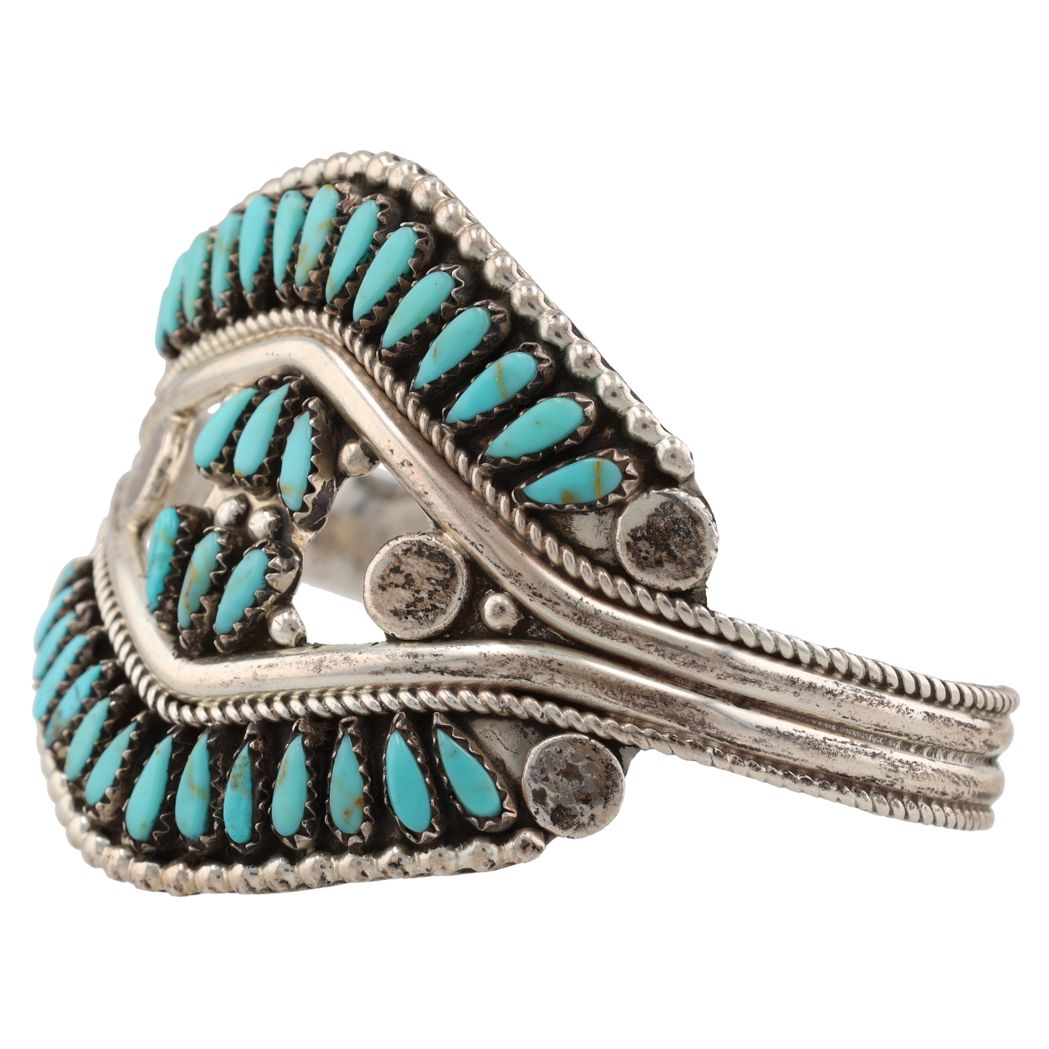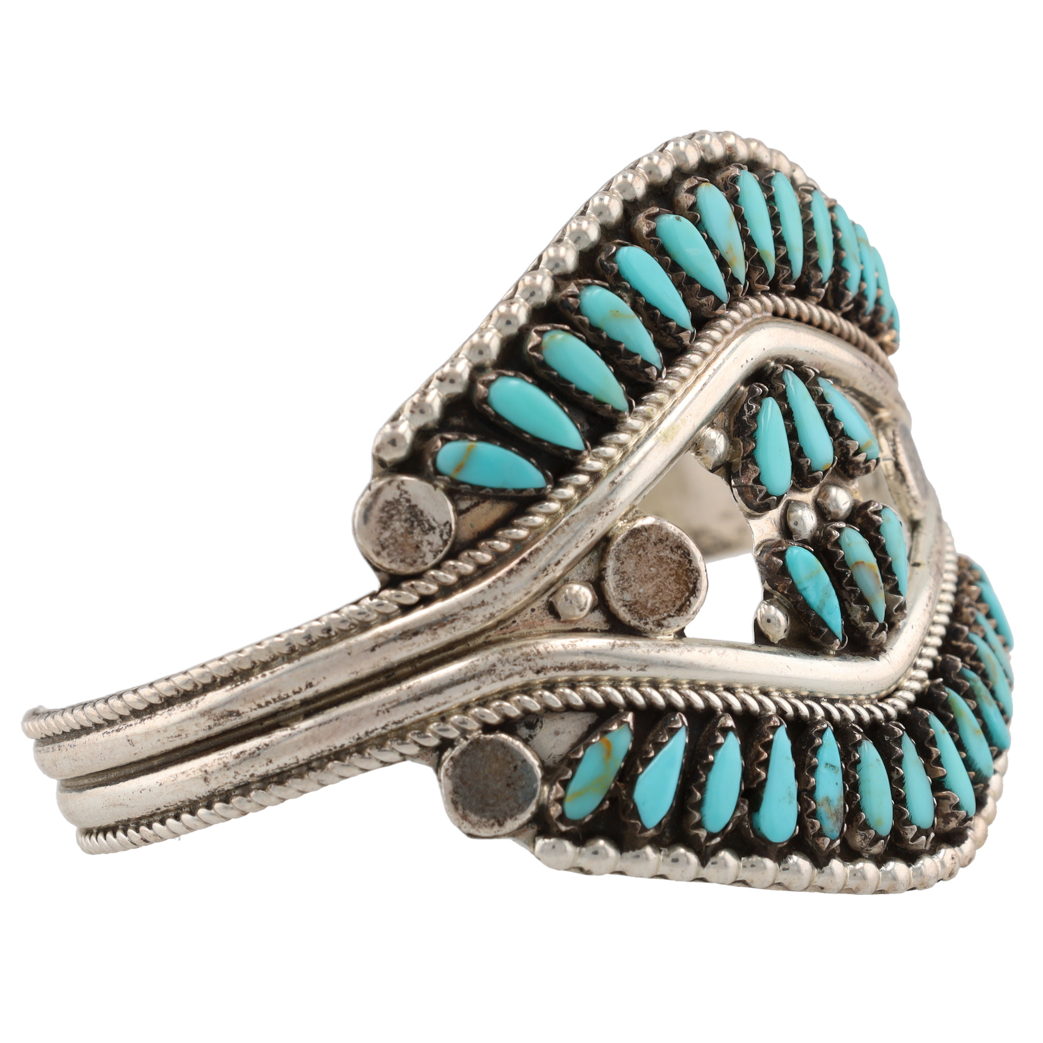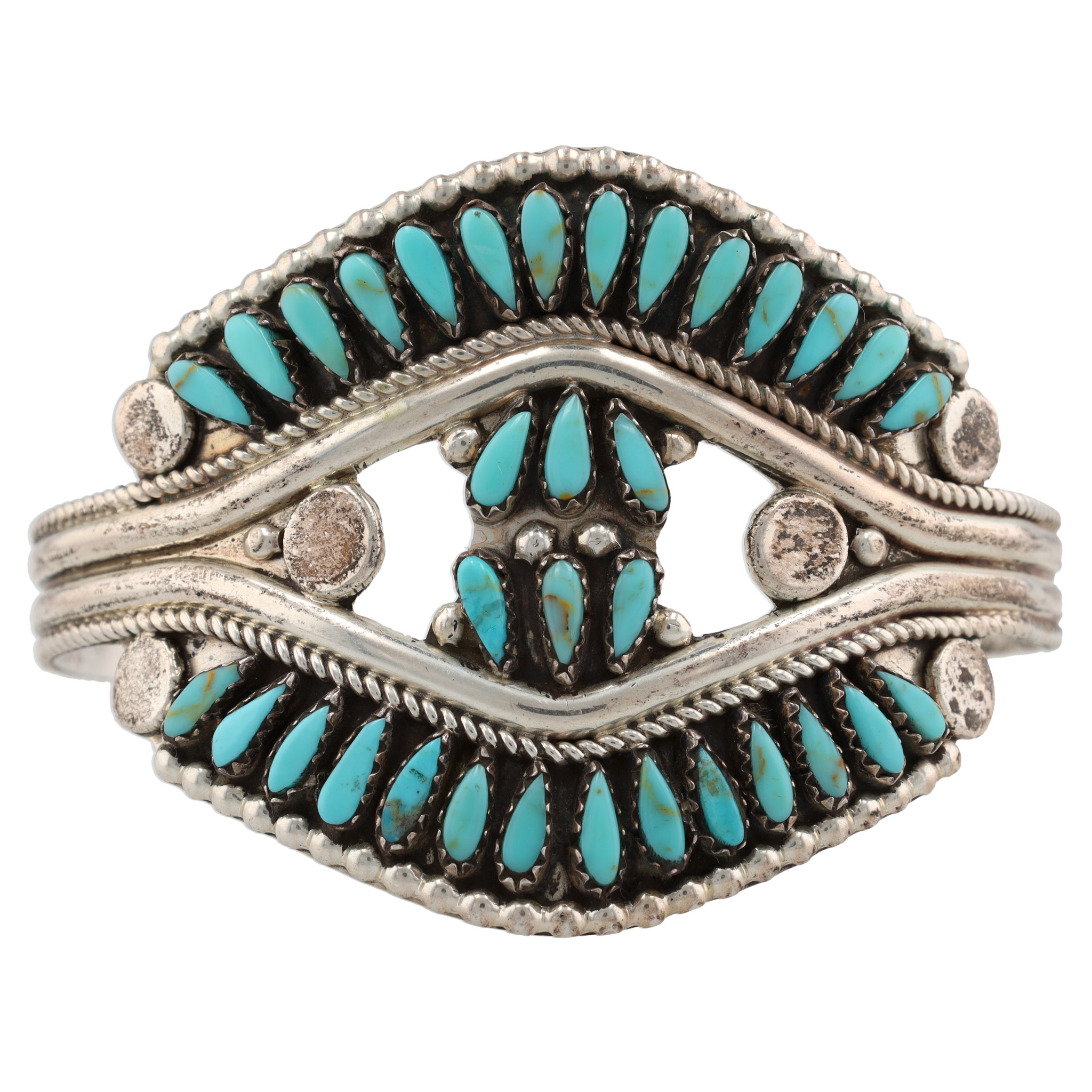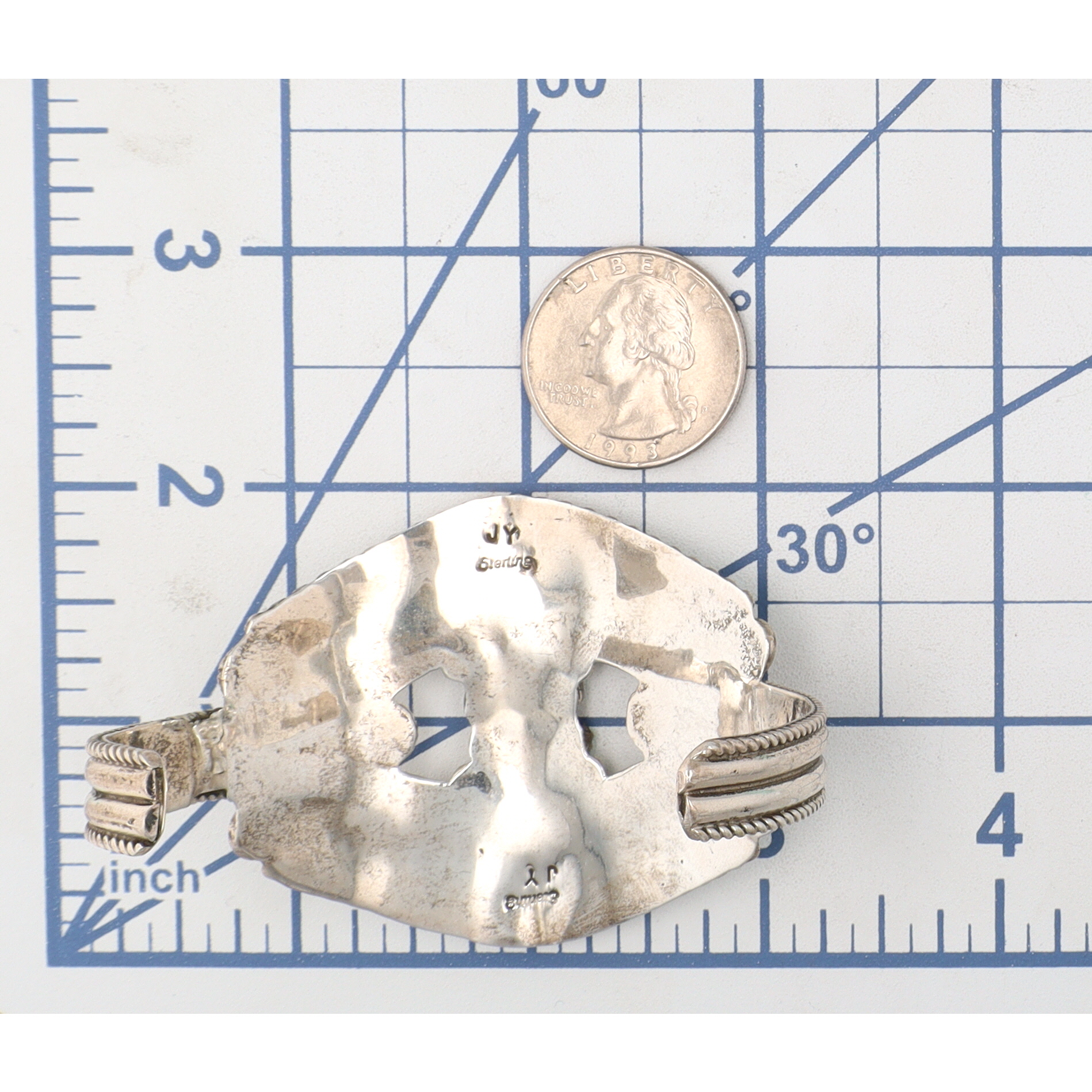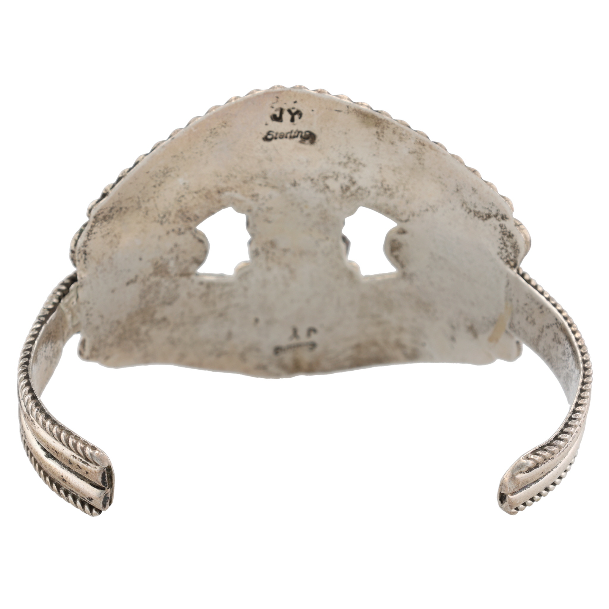 Signed JY Navajo Sterling Turquoise Petit Point Cuff Bracelet