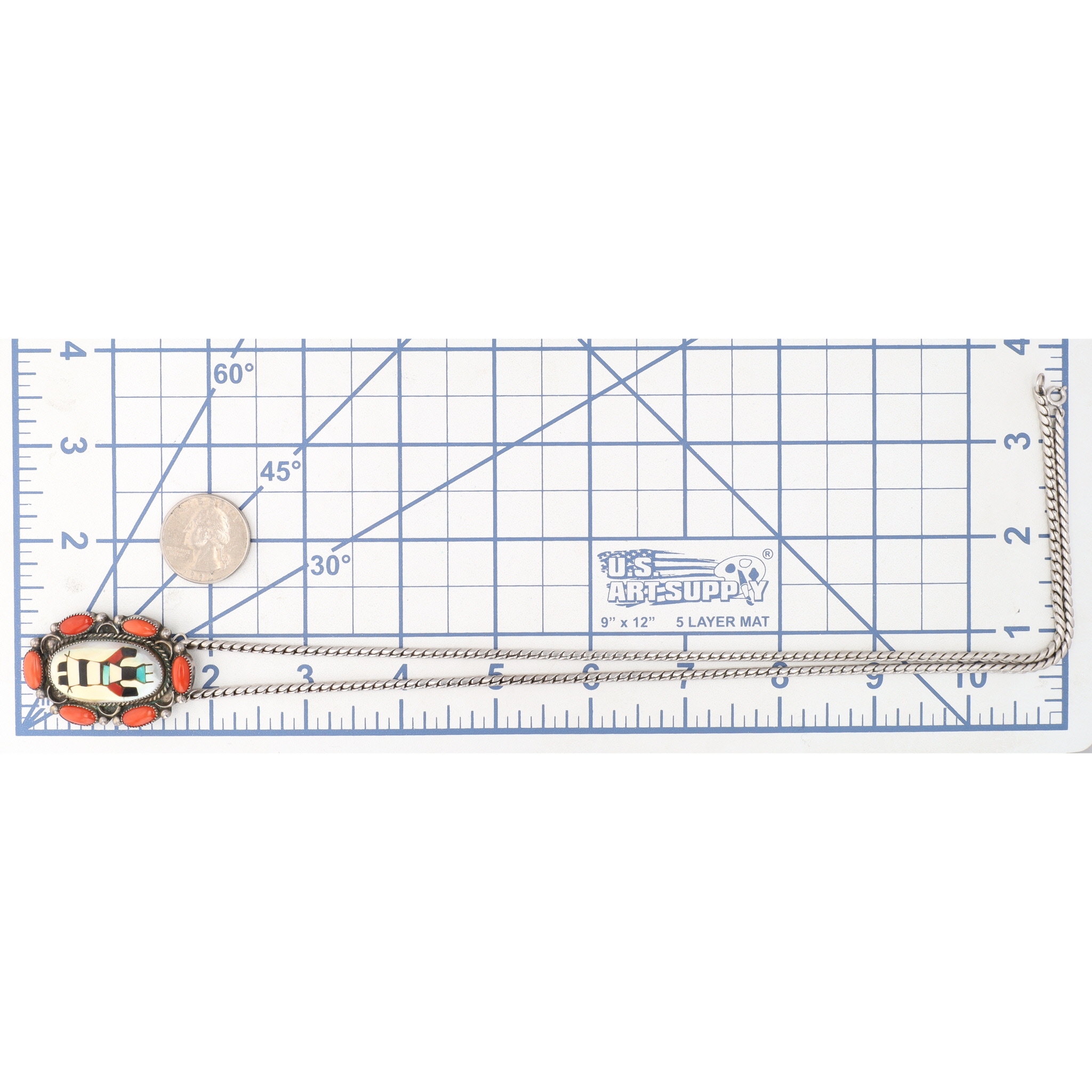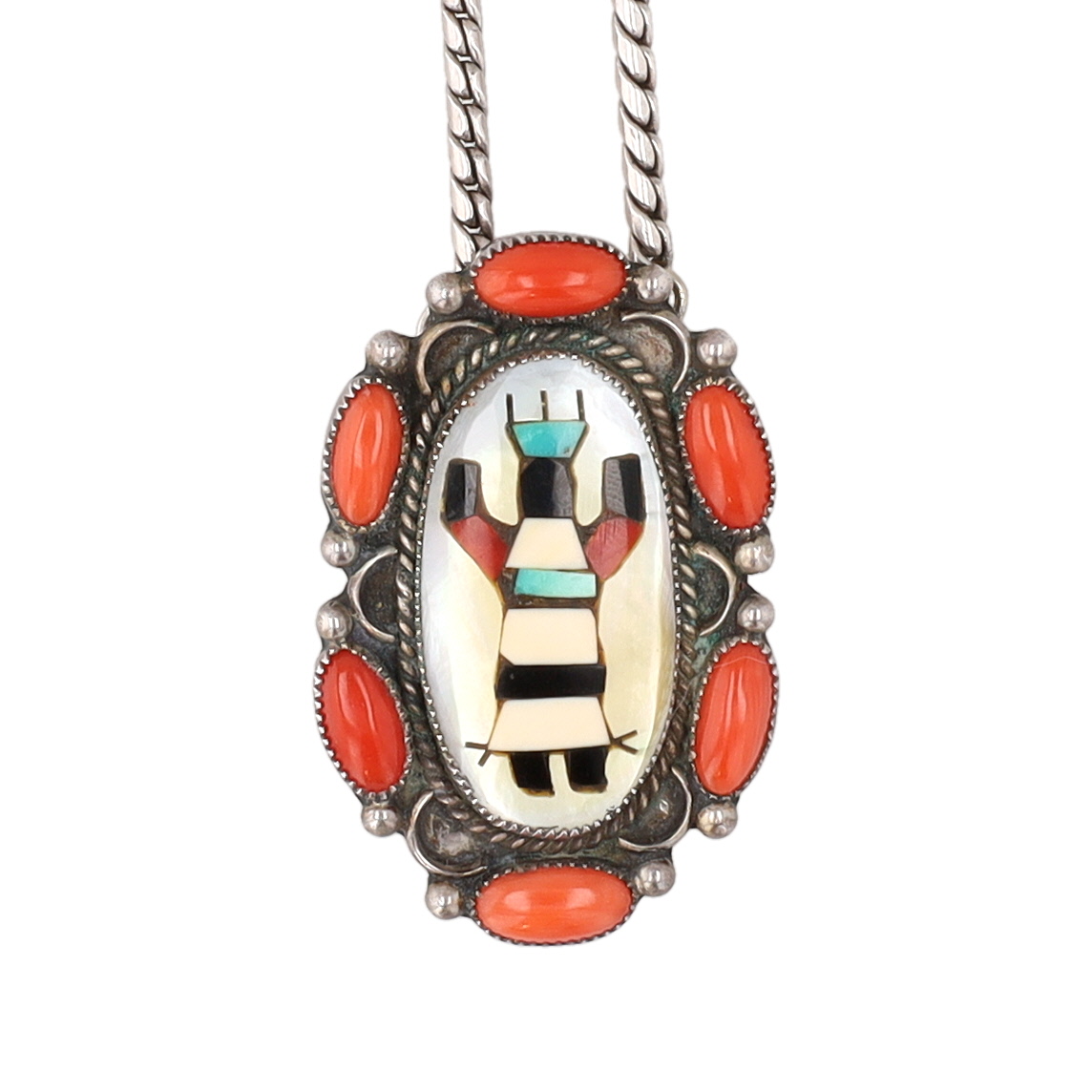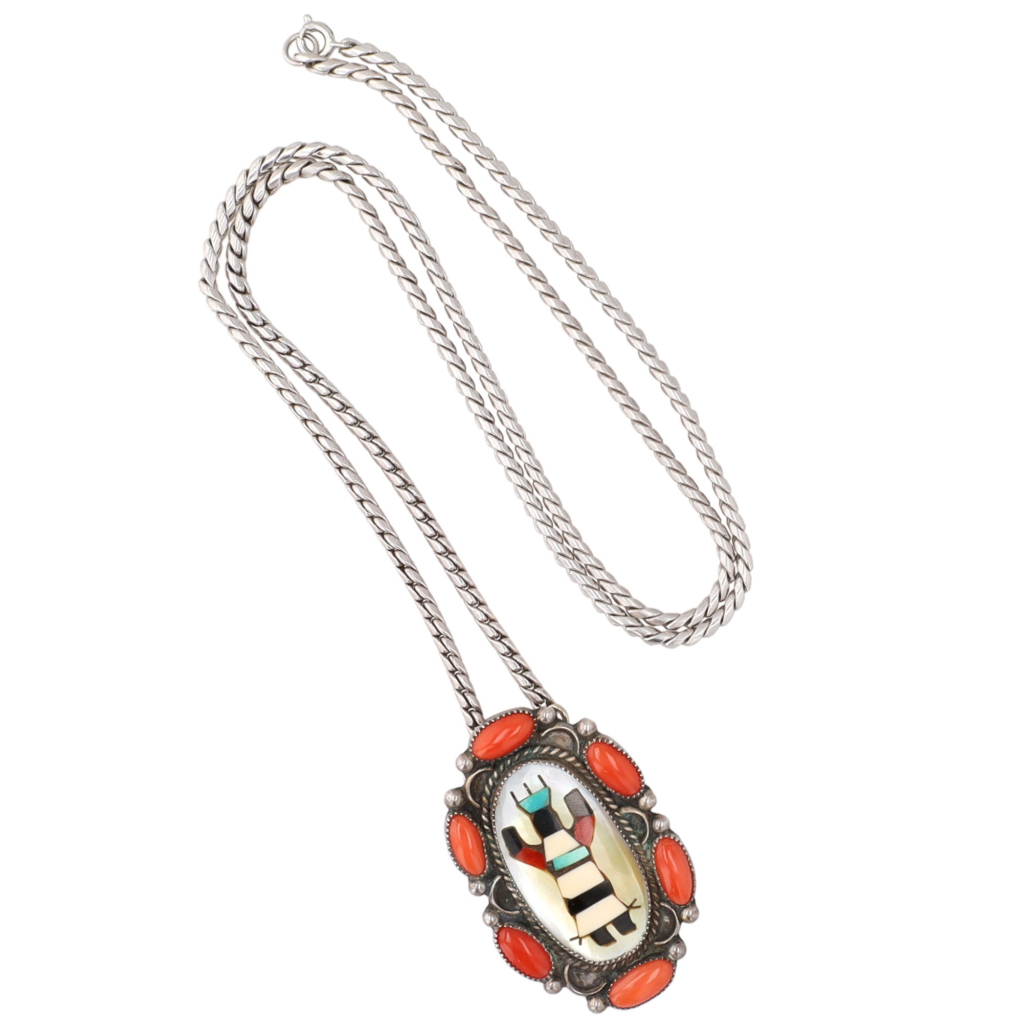 Signed FD Navajo Sterling Multi Stone Inlay Gaan Dancer Necklace