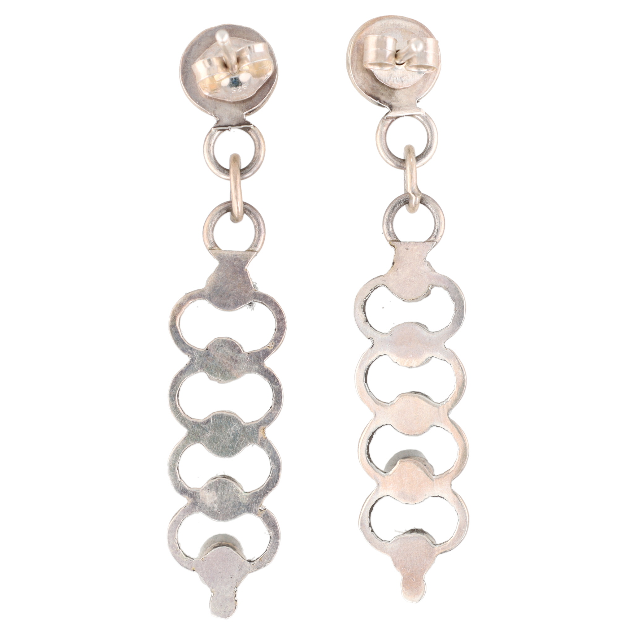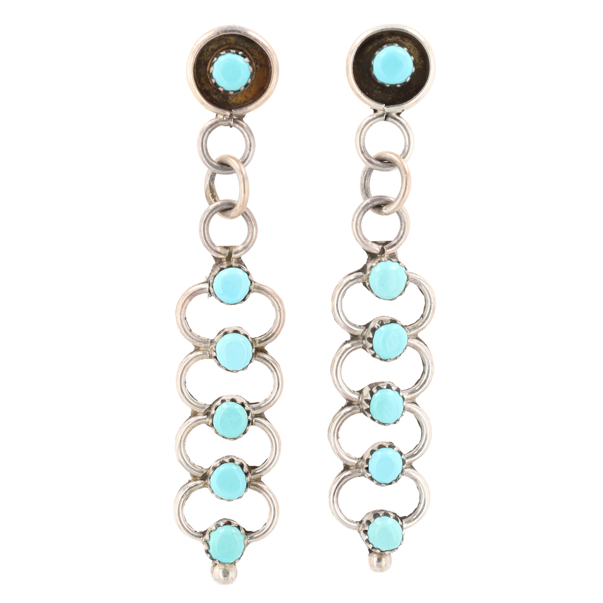 Vintage Zuni Sterling Turquoise Snake Eye Dangle Earrings