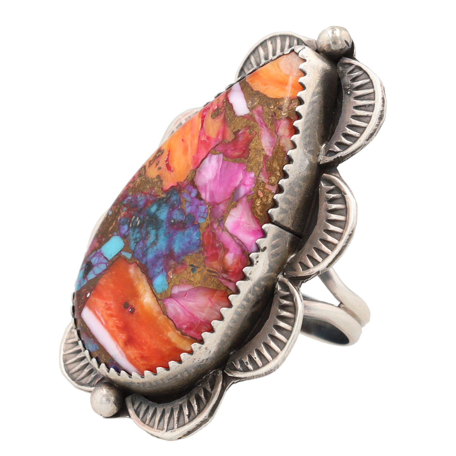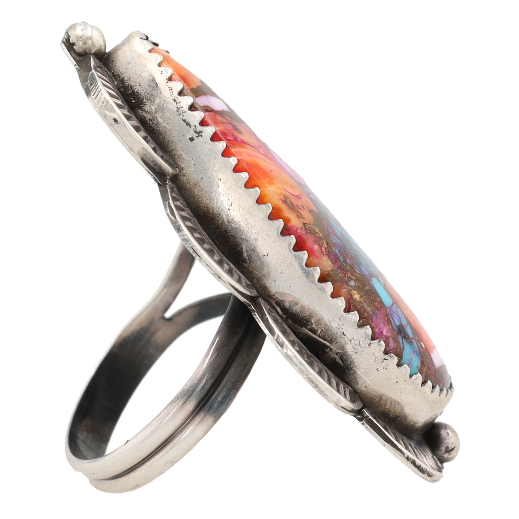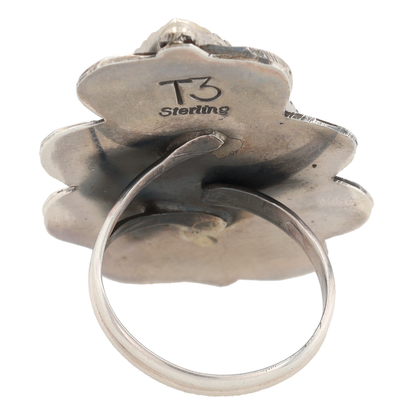 Tia Long Navajo Sterling Dahlia Turquoise Adjustable Ring