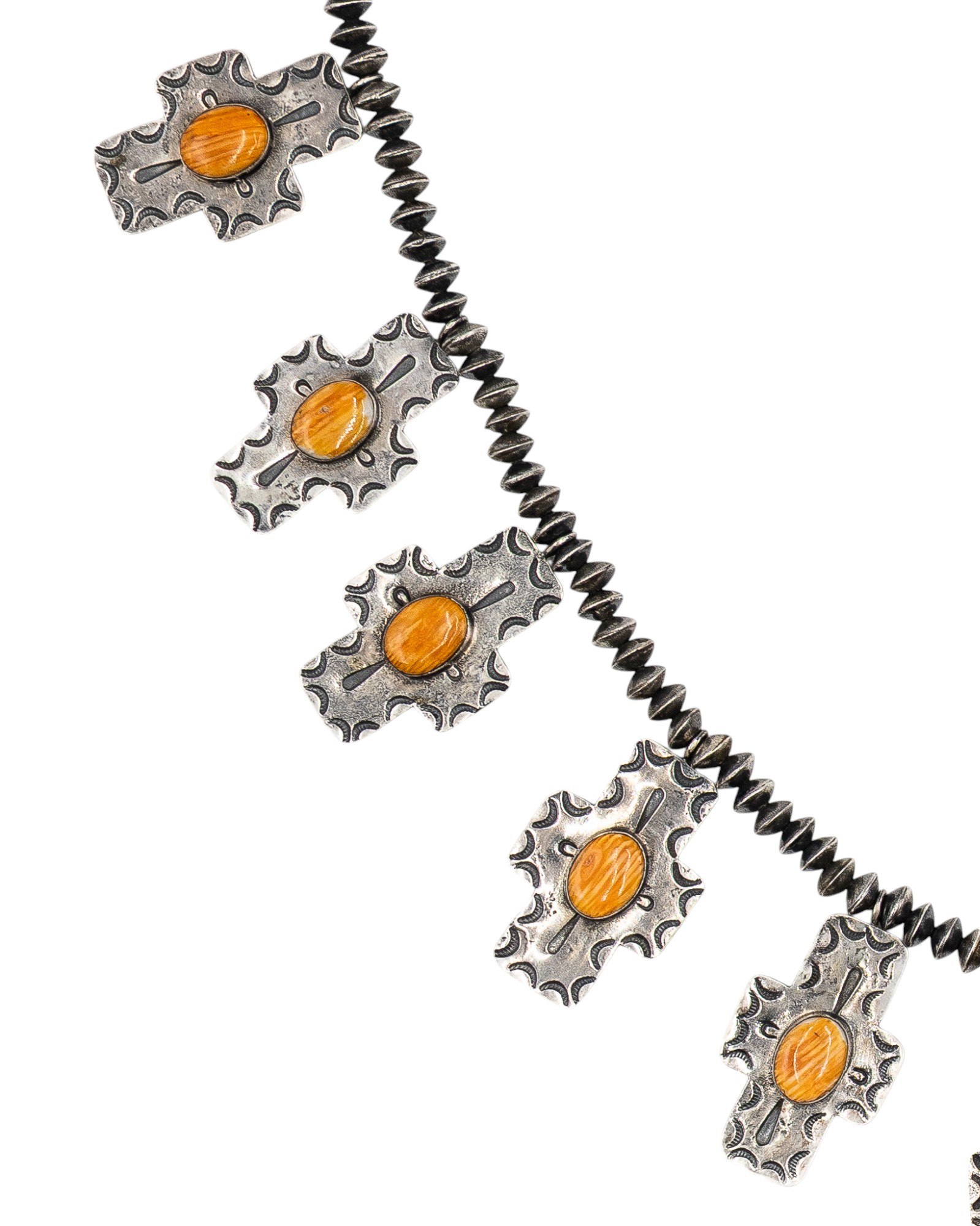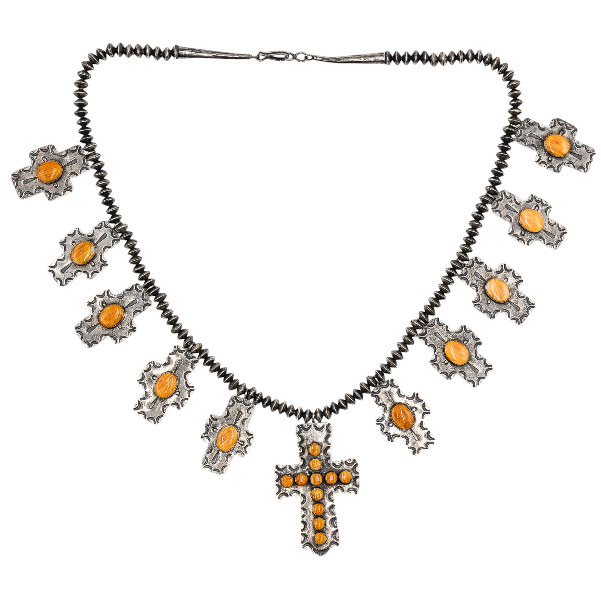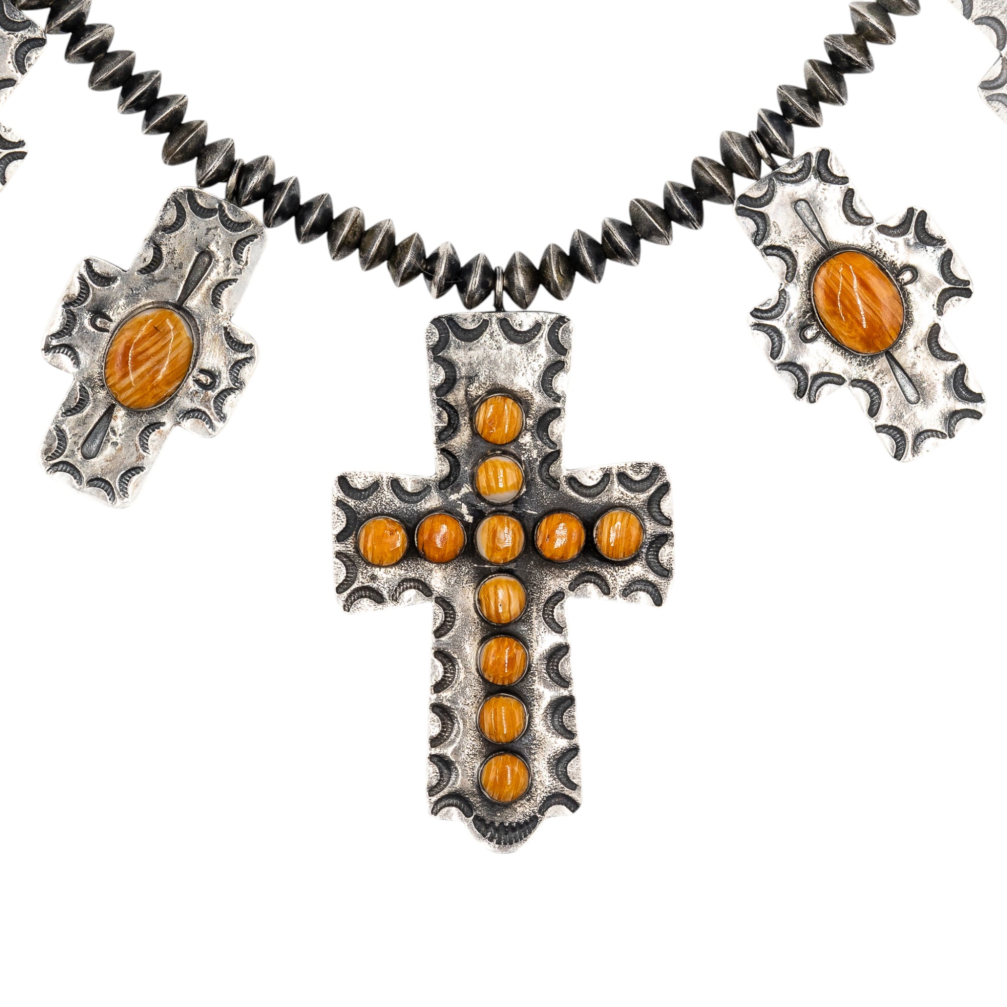 Vintage Navajo Sterling Hand Stamped Spiny Oyster Cross Necklace