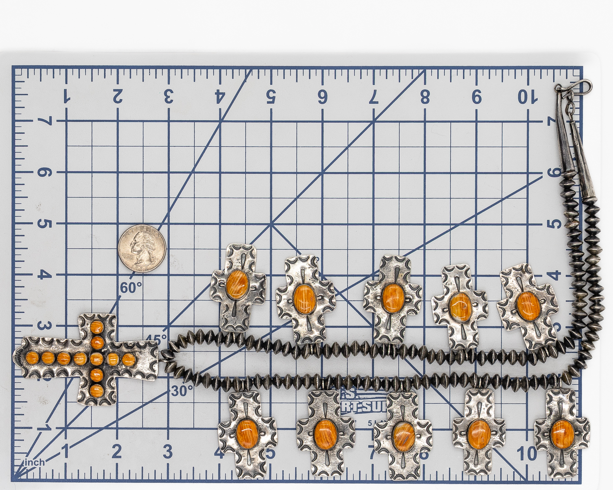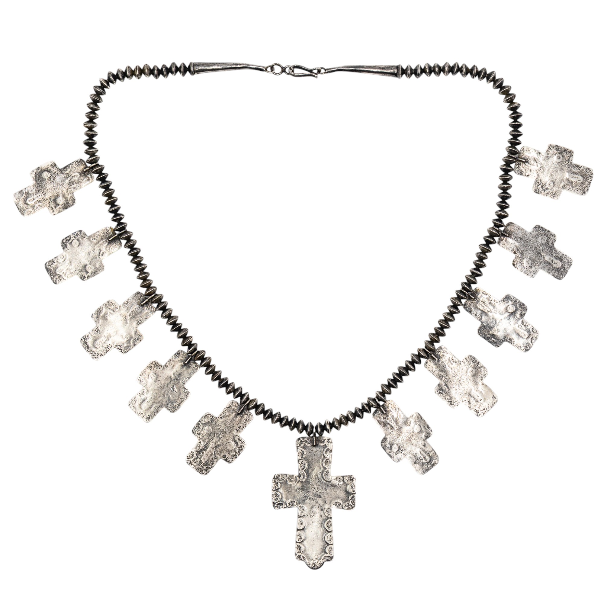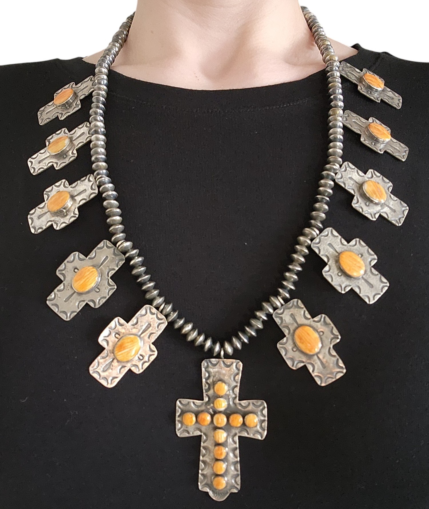 Vintage Navajo Sterling Hand Stamped Spiny Oyster Cross Necklace