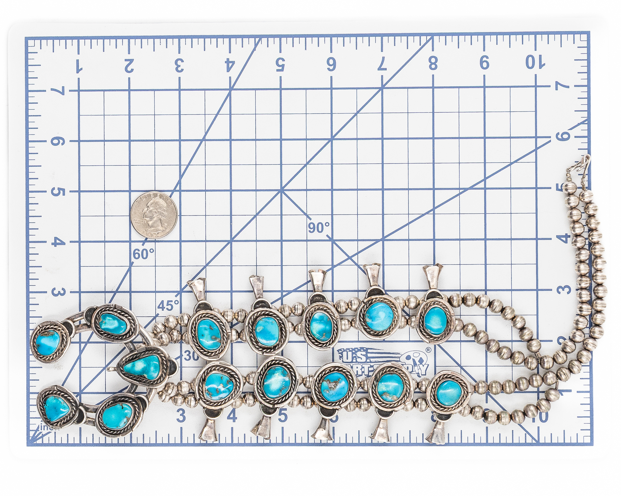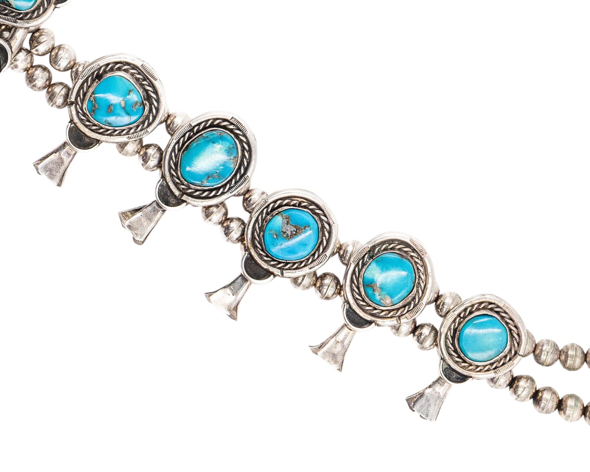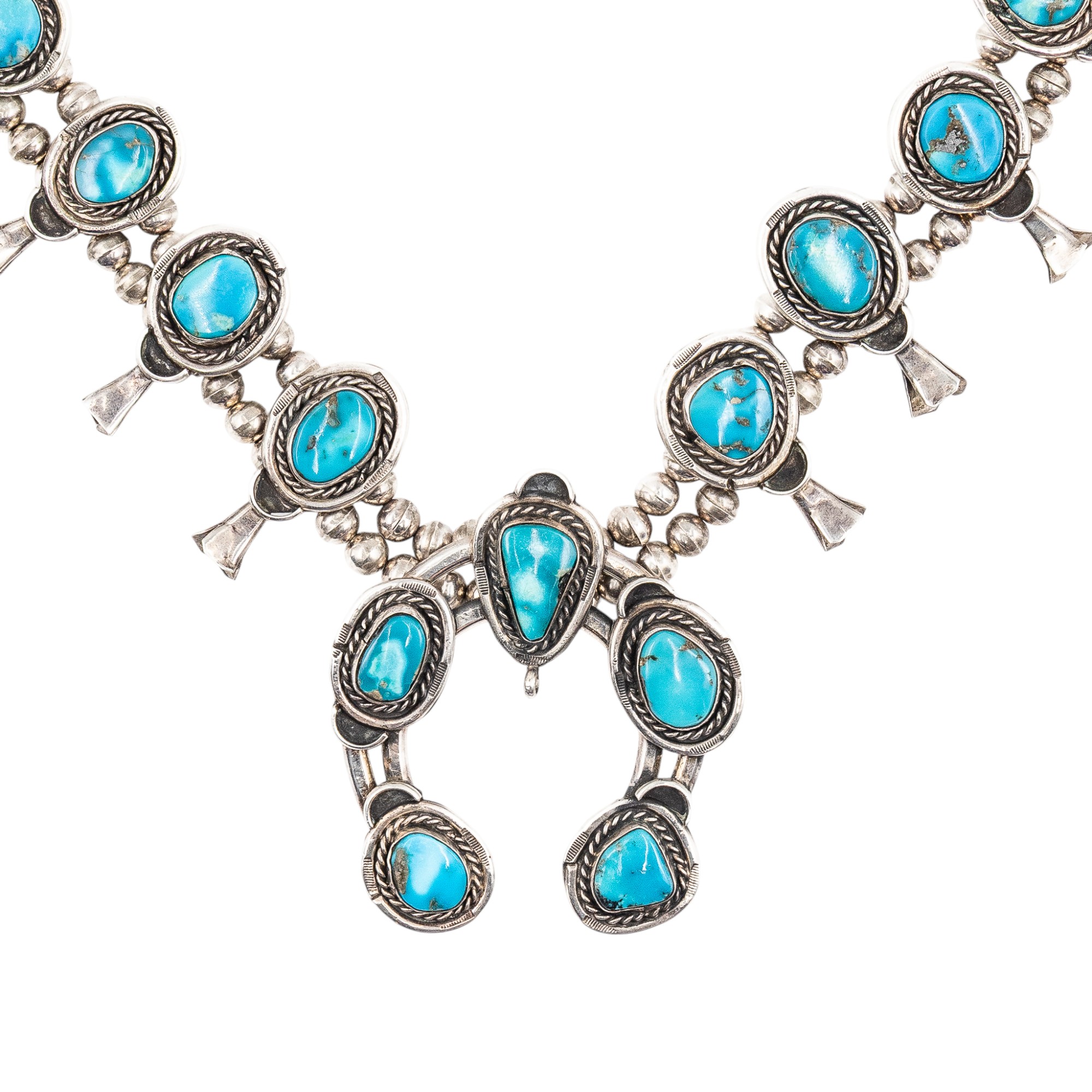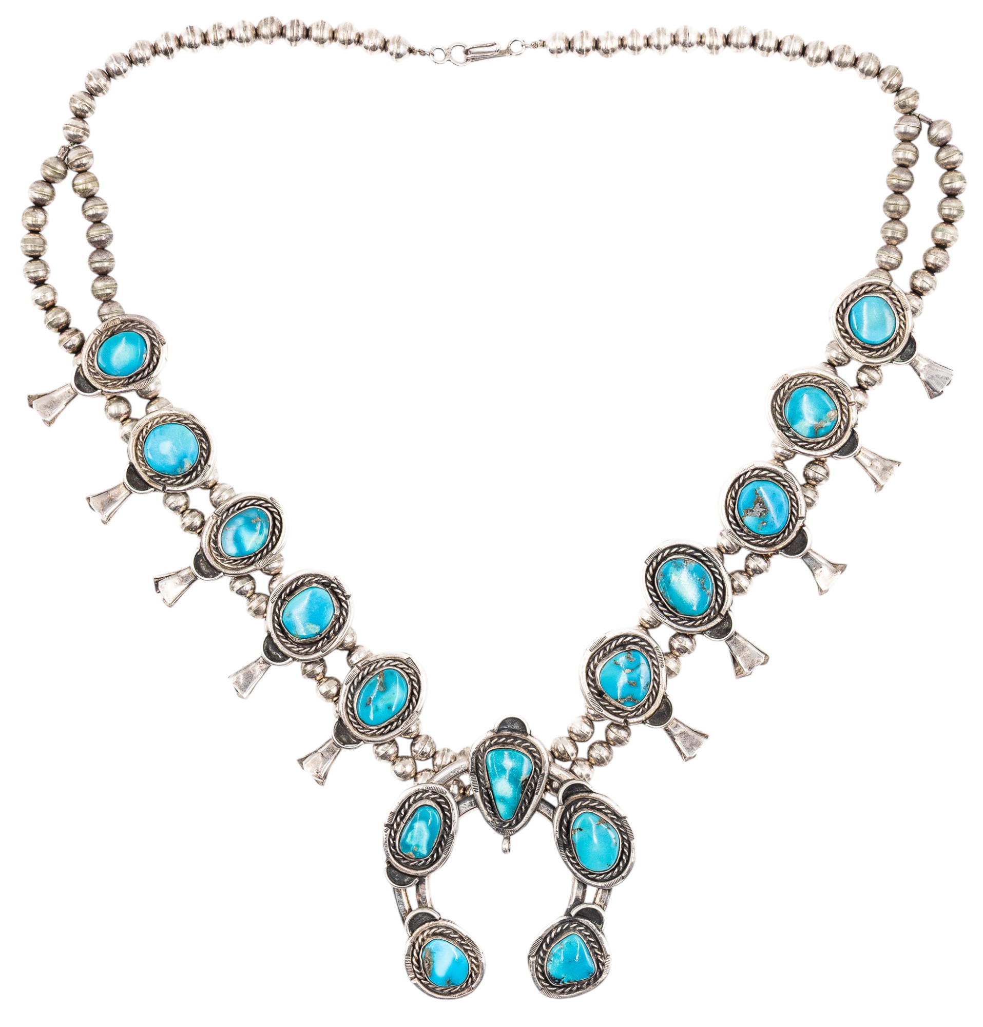 Navajo Sterling Turquoise Squash Blossom Necklace
