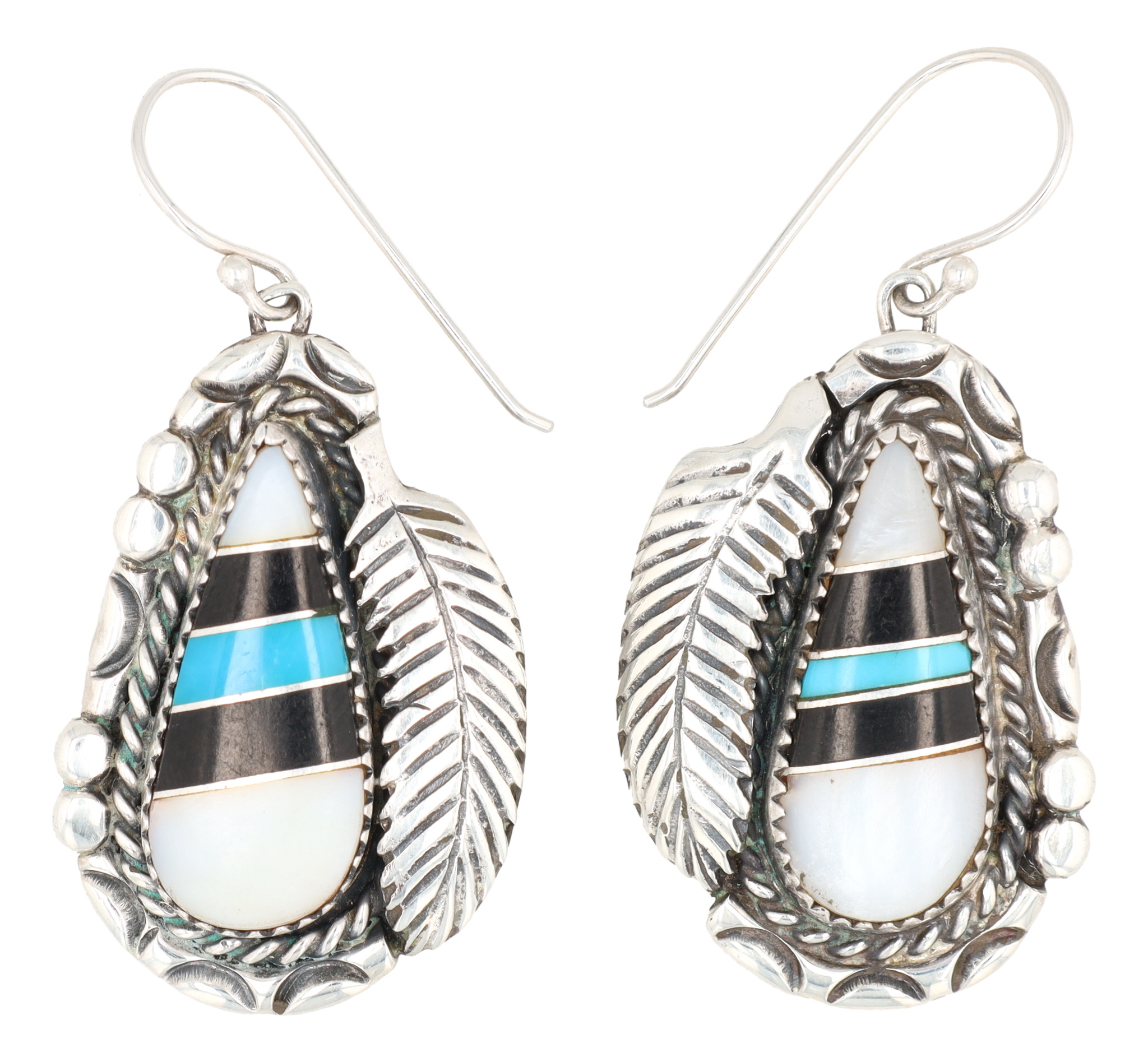 Leonard Burnside Navajo Sterling Multi Stone Inlay Earrings