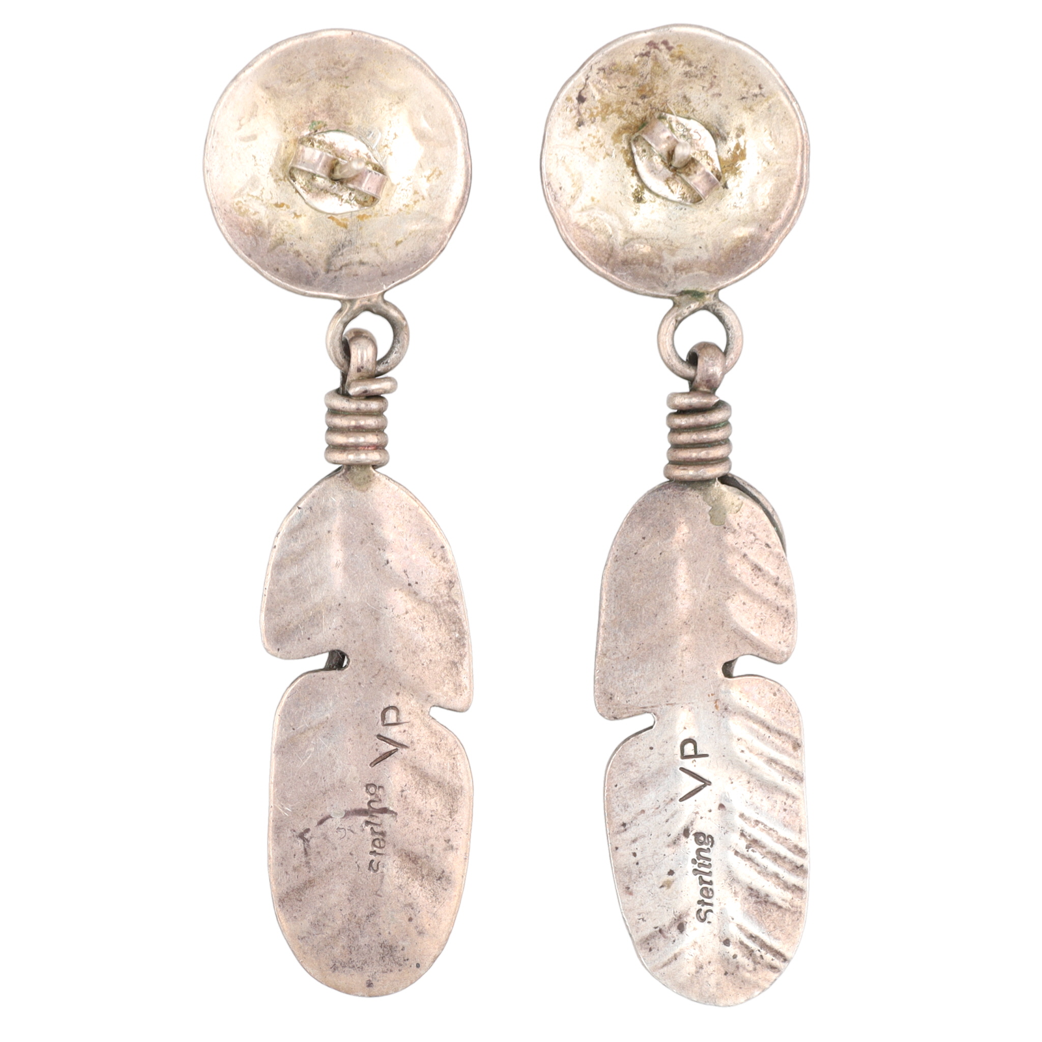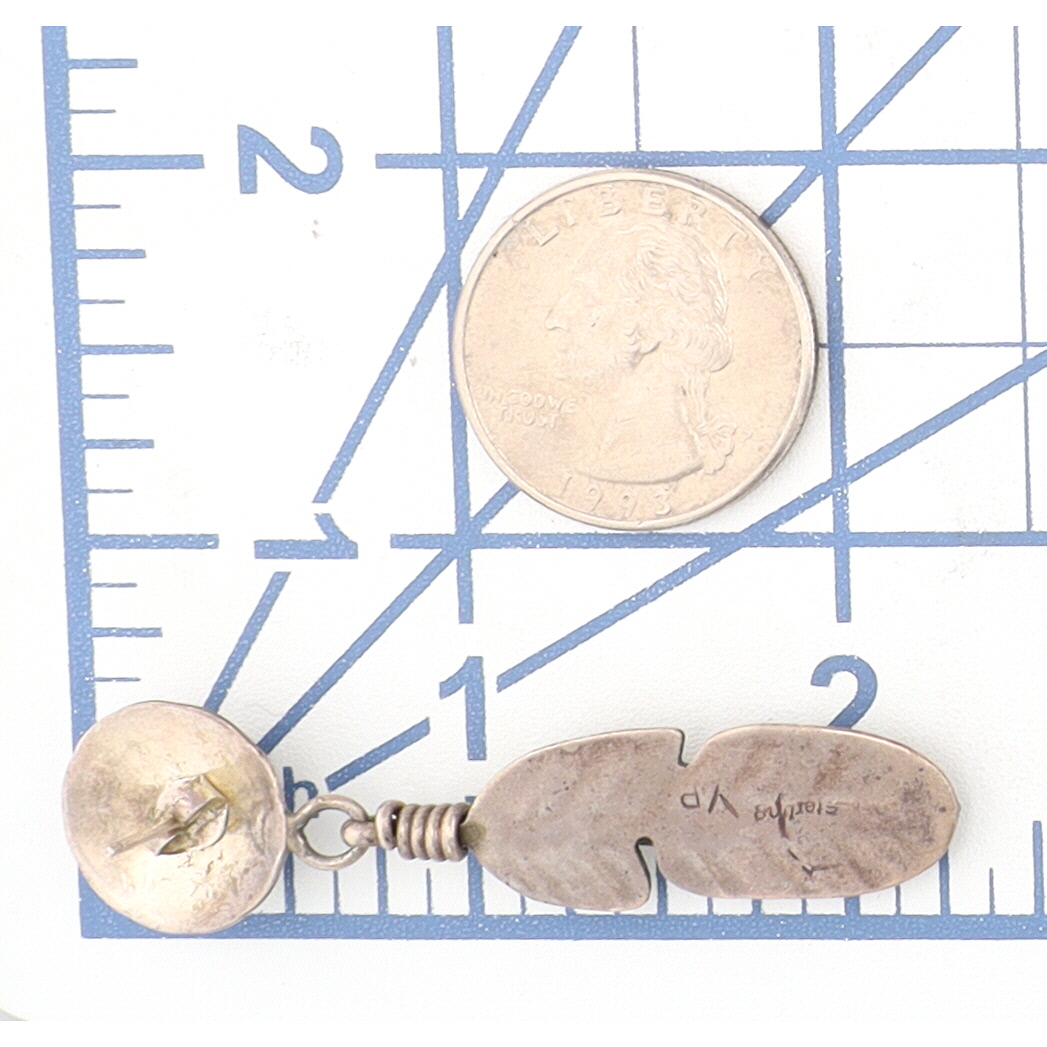 Signed VP Navajo Sterling Turquoise Feather Dangle Earrings