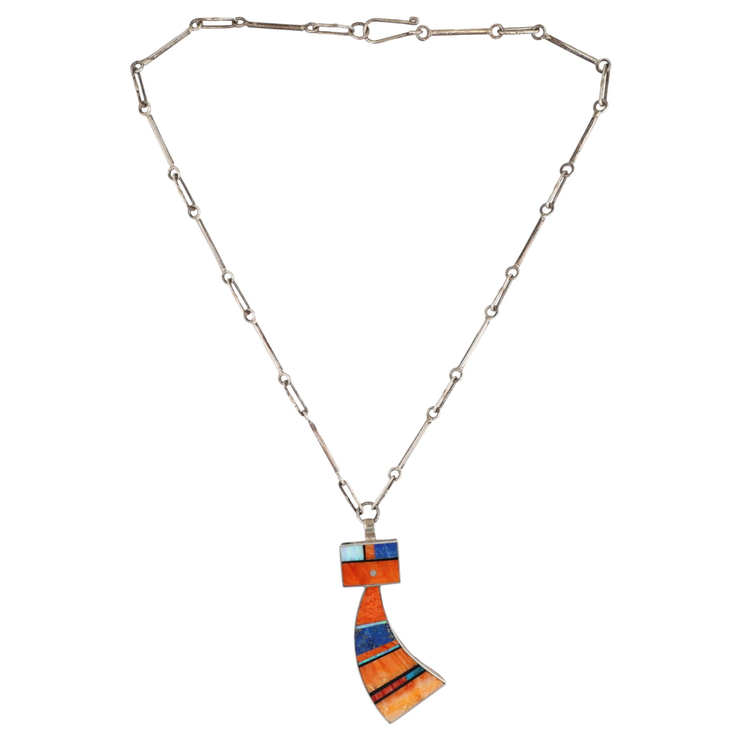 Harold Smith Navajo Sterling Multi Stone Inlay Kachina Necklace