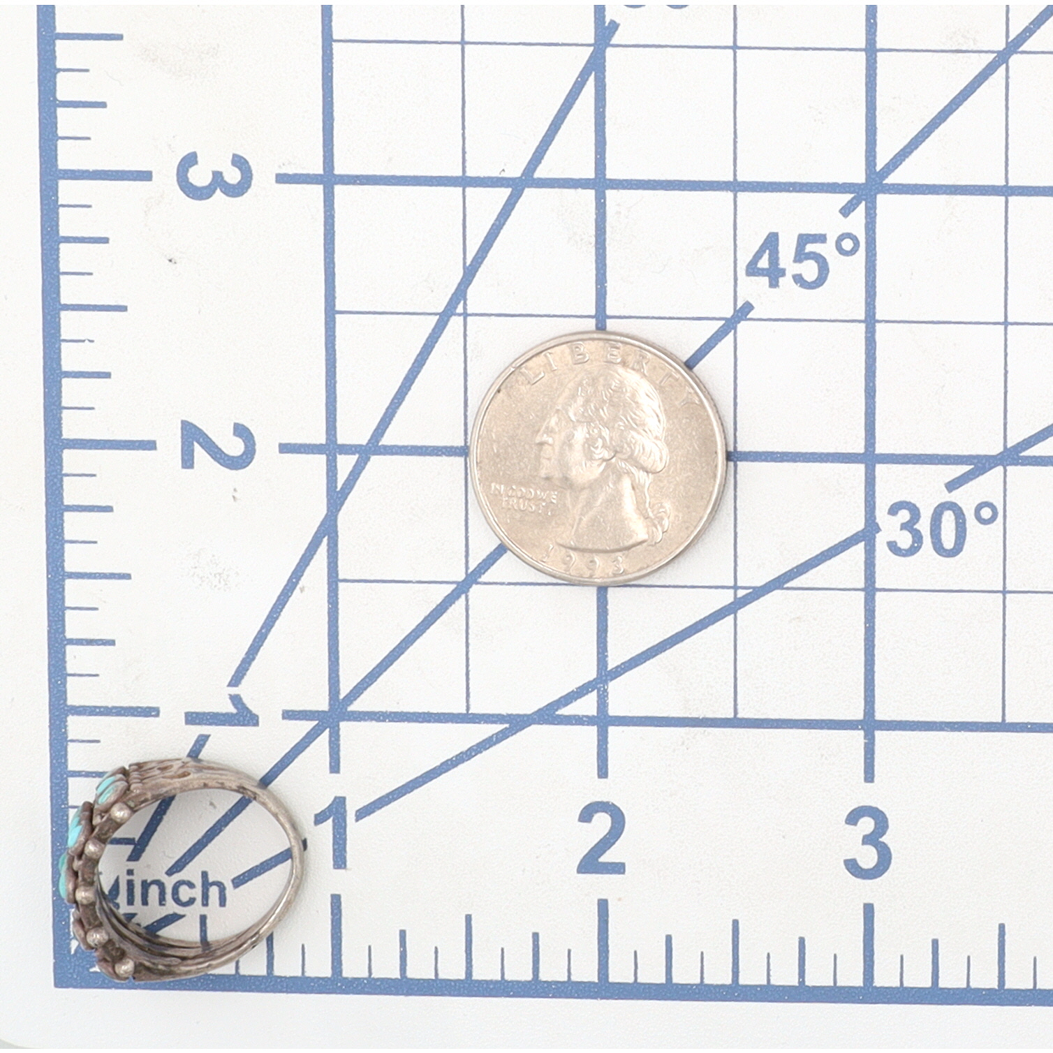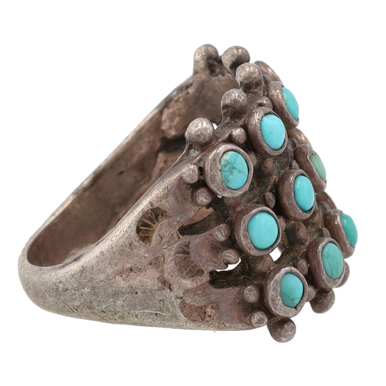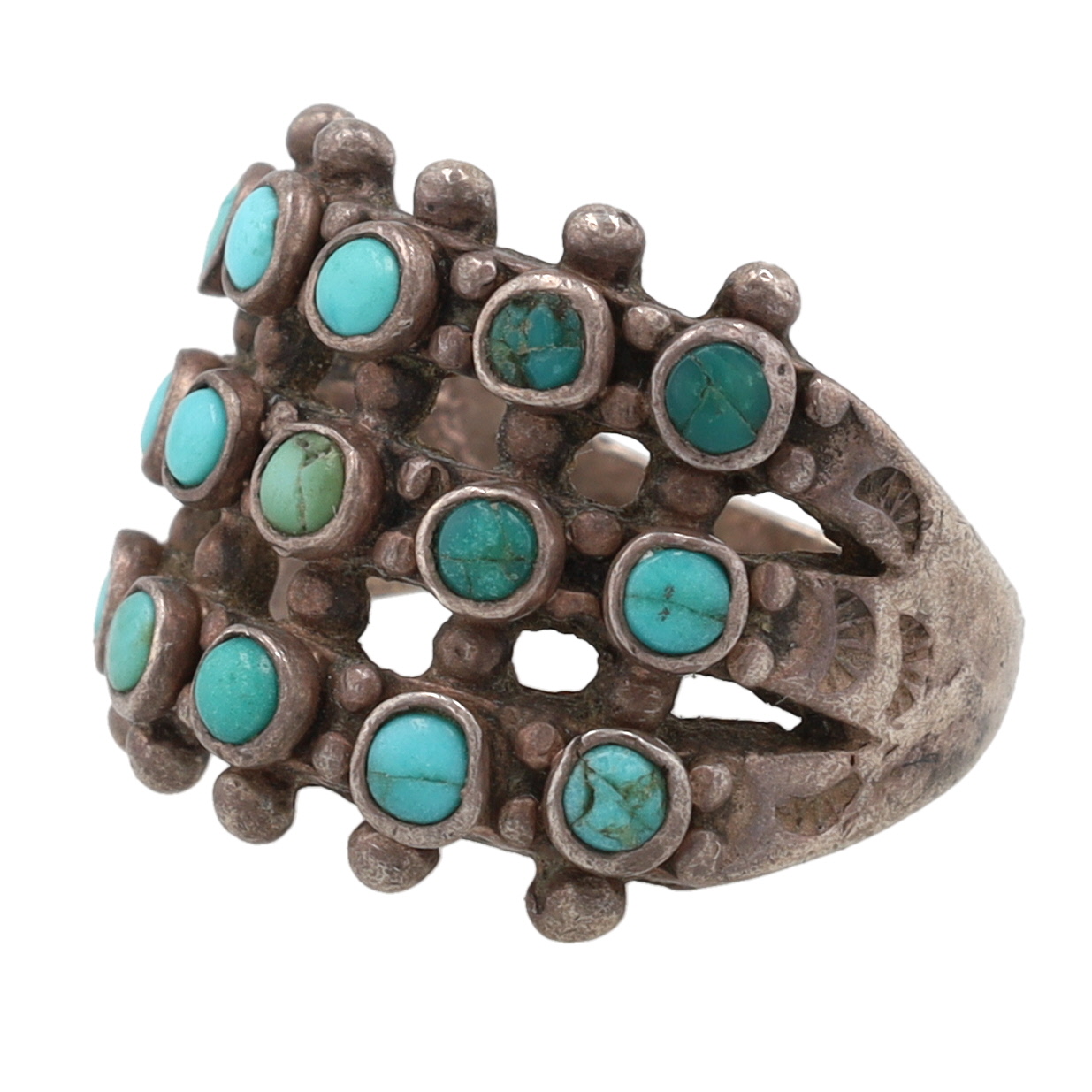 Vintage Zuni Sterling Turquoise Row Ring Sz 5.5