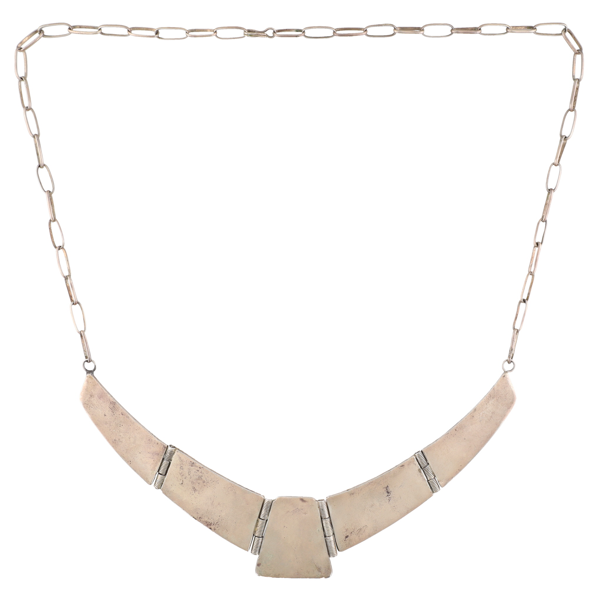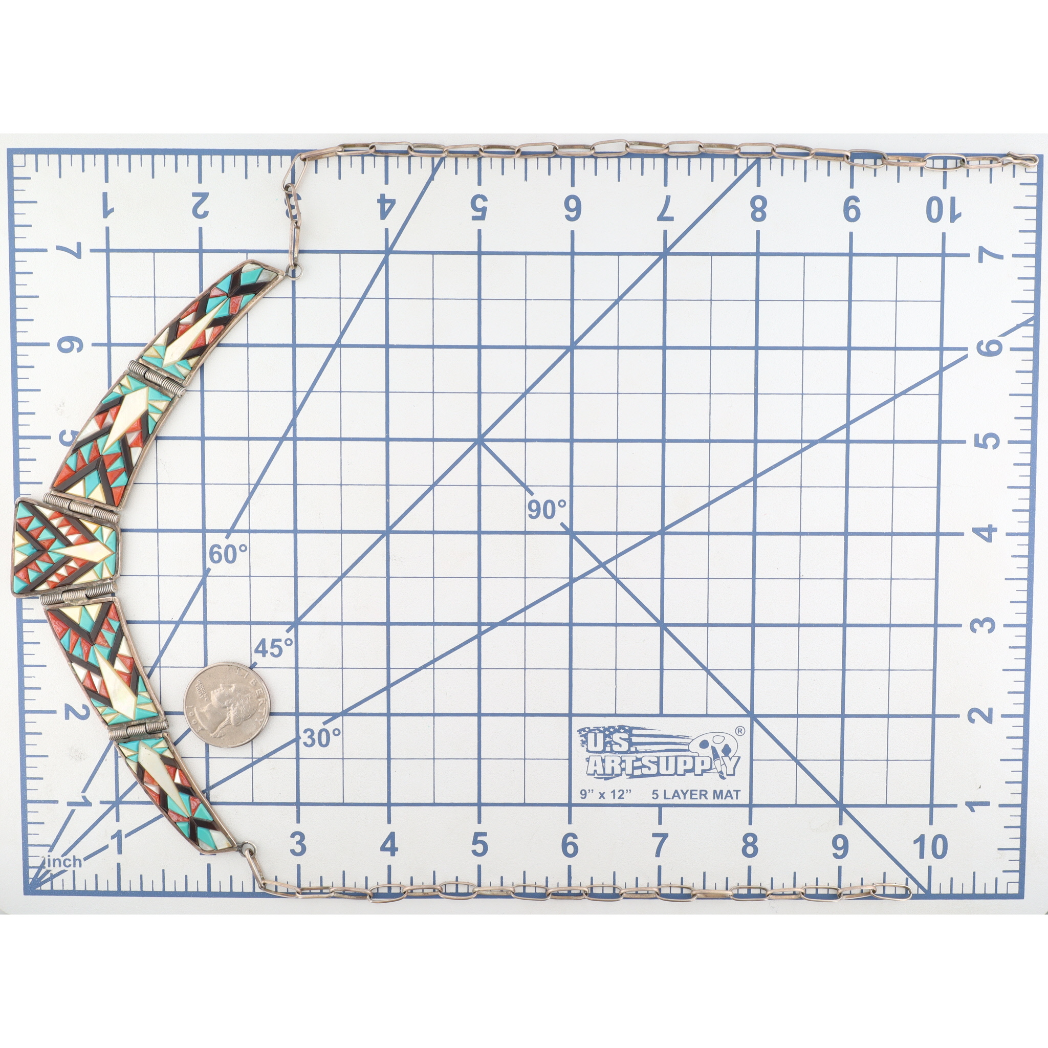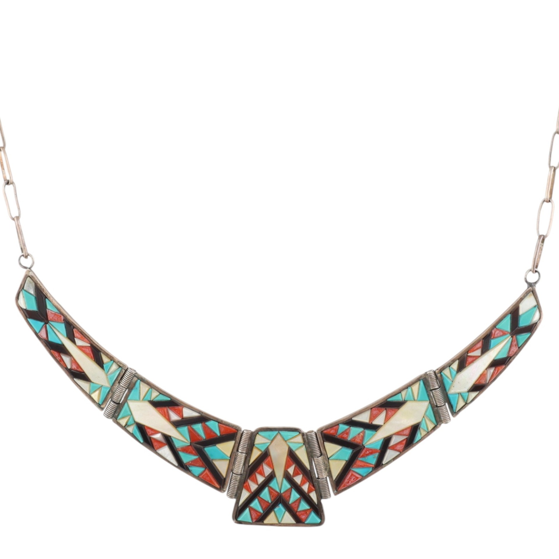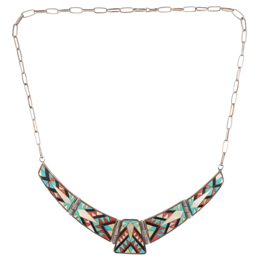 Vintage Navajo (possibly Zuni or Santo Domingo) Sterling Cobblestone Inlay Hinge Necklace