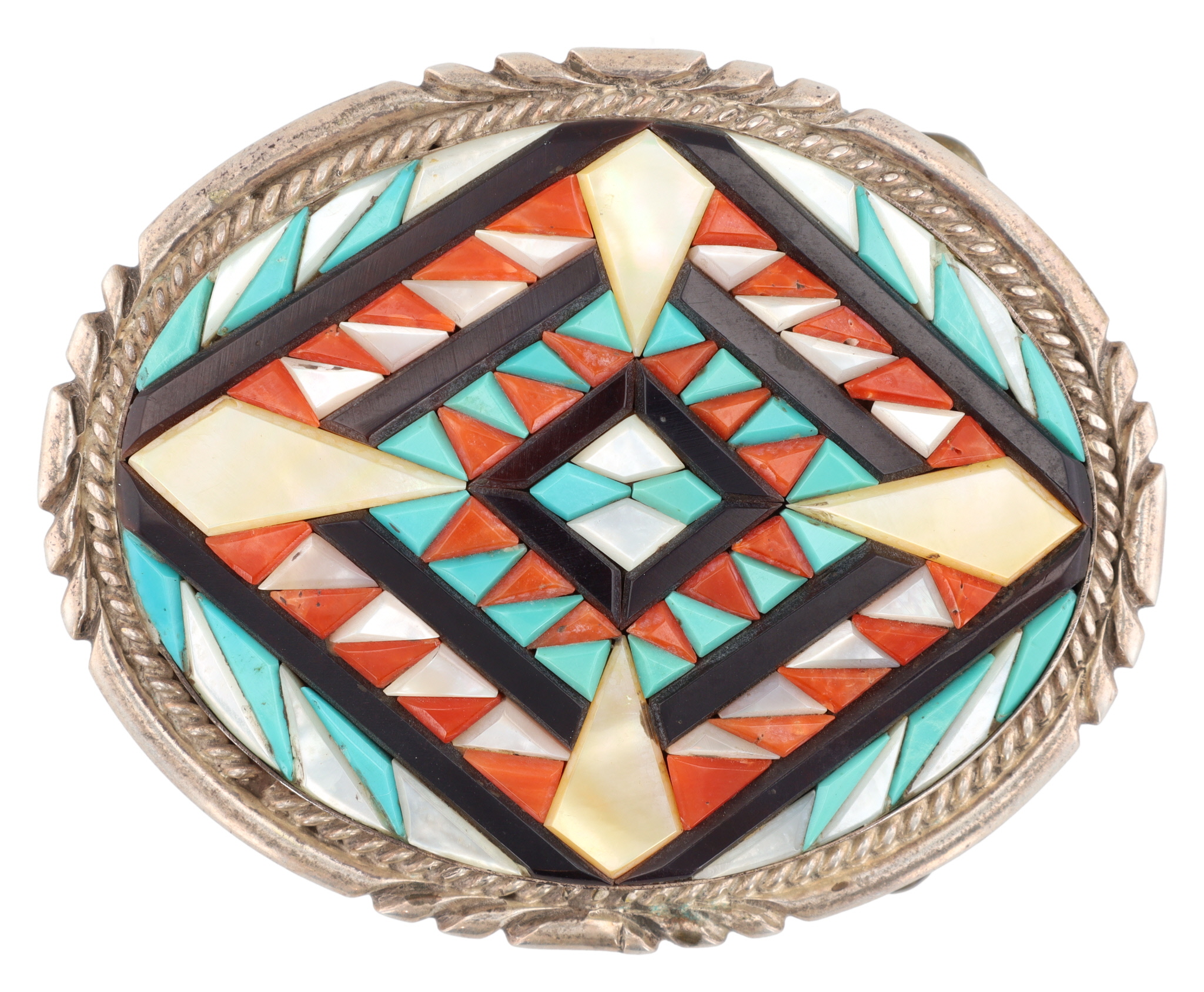 Vintage Navajo (possibly Zuni or Santo Domingo) Sterling Cobblestone Inlay Belt Buckle