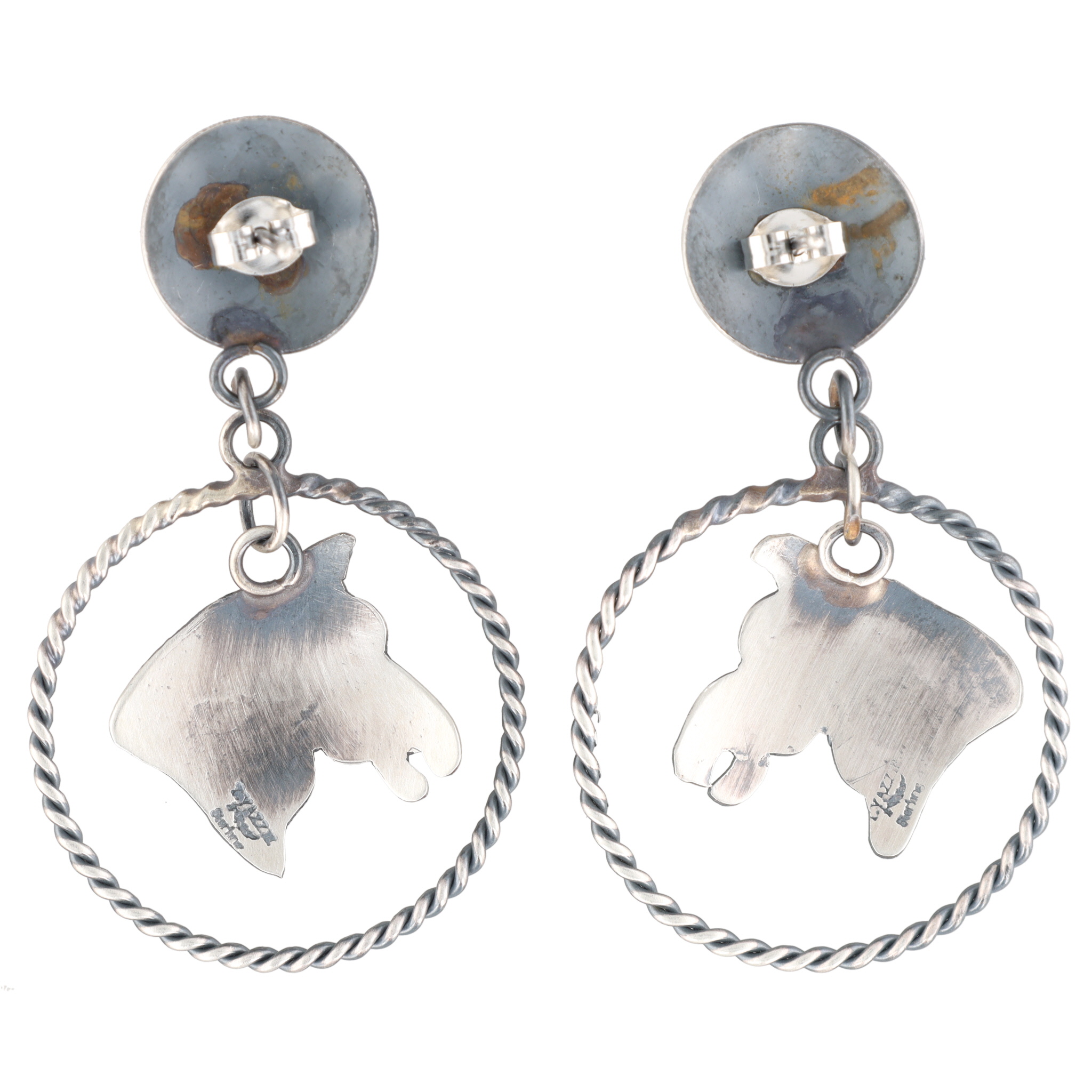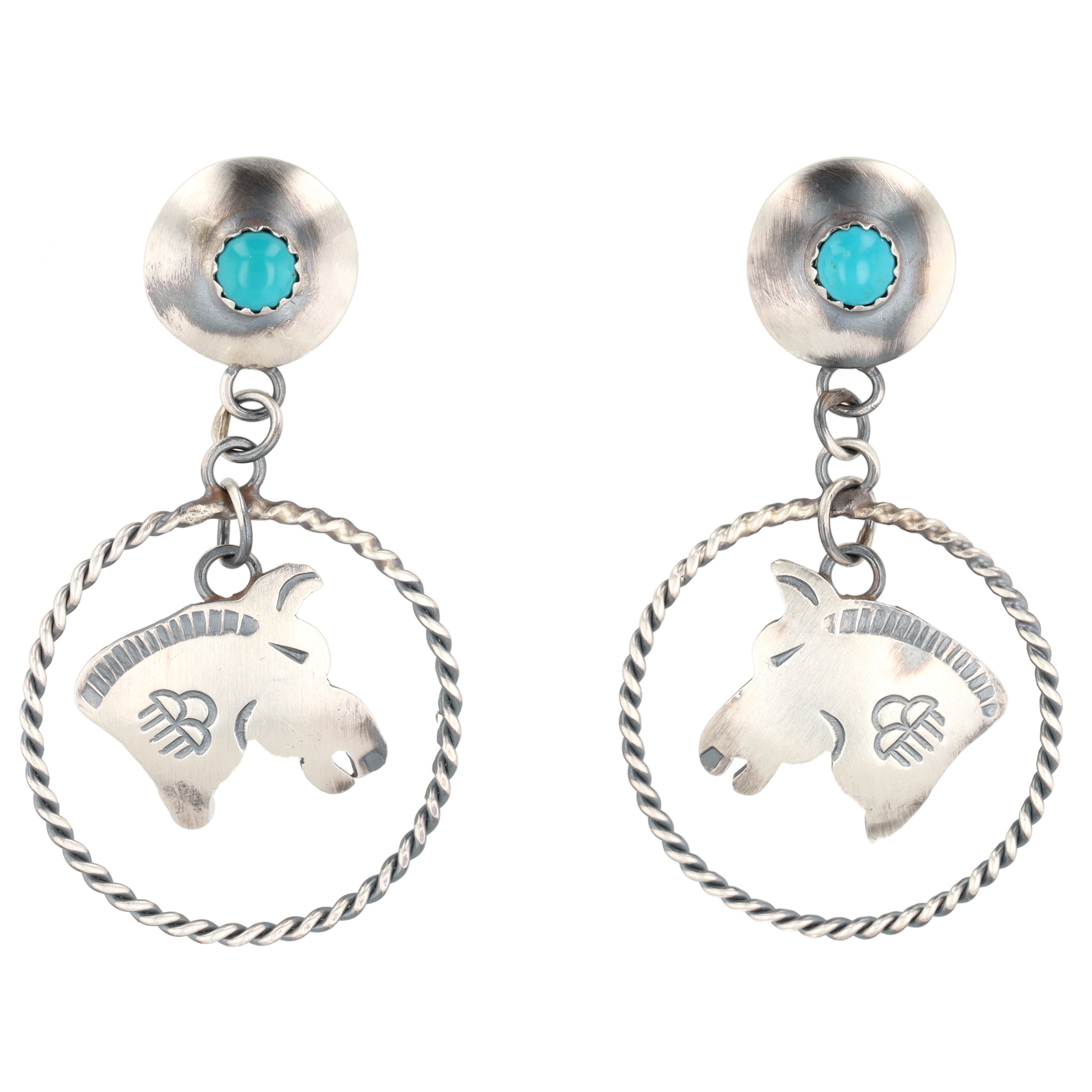 Tim Yazzie Navajo Sterling Turquoise Horse Dangle Earrings