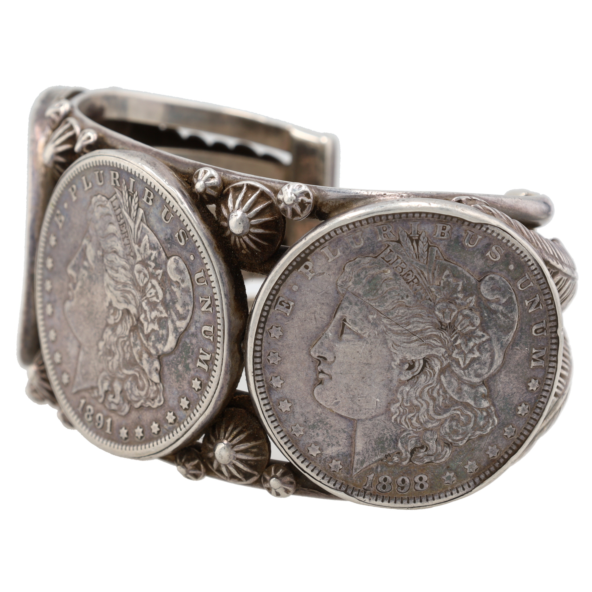 Vintage Navajo Sterling 1890’s Morgan Dollar Coin Cuff Bracelet