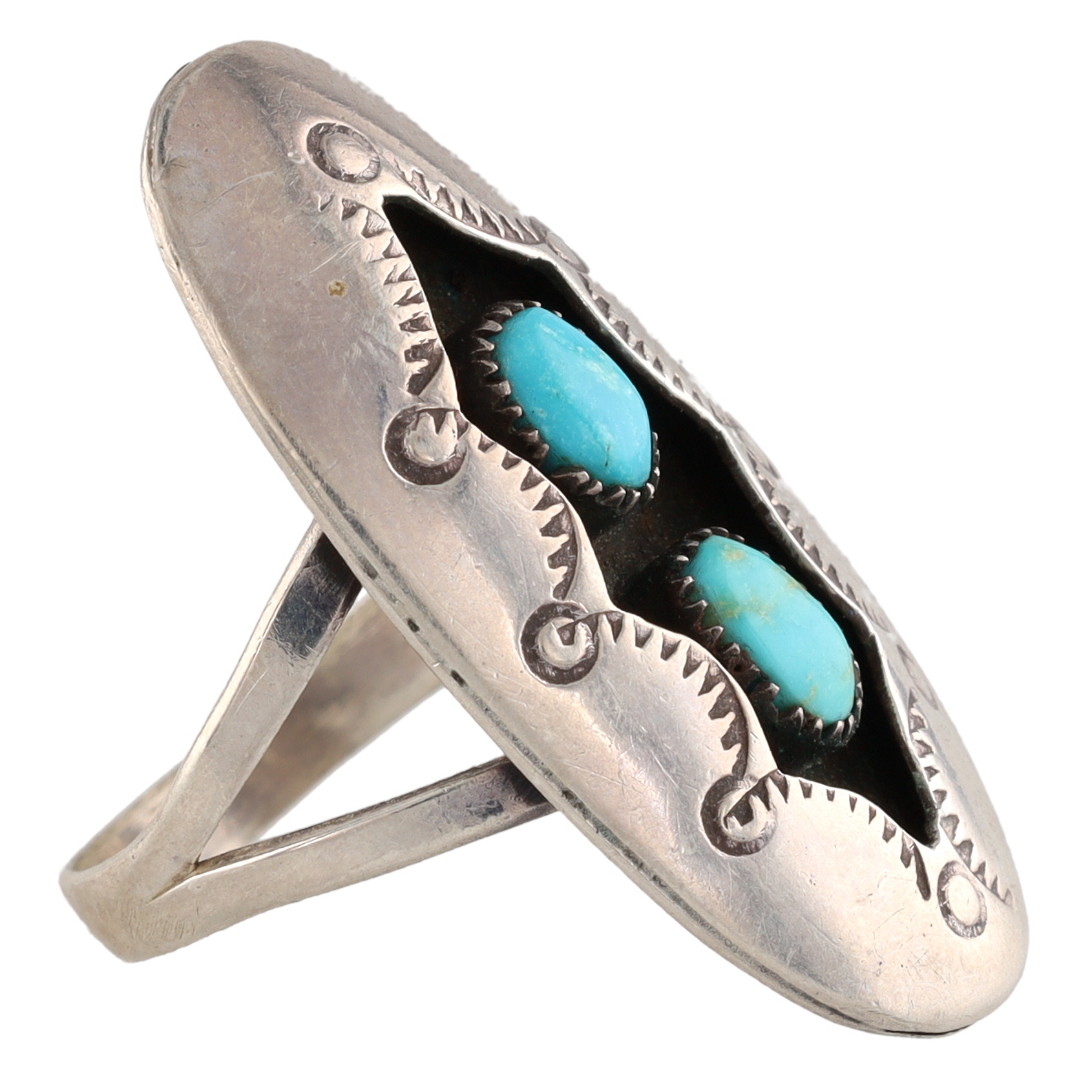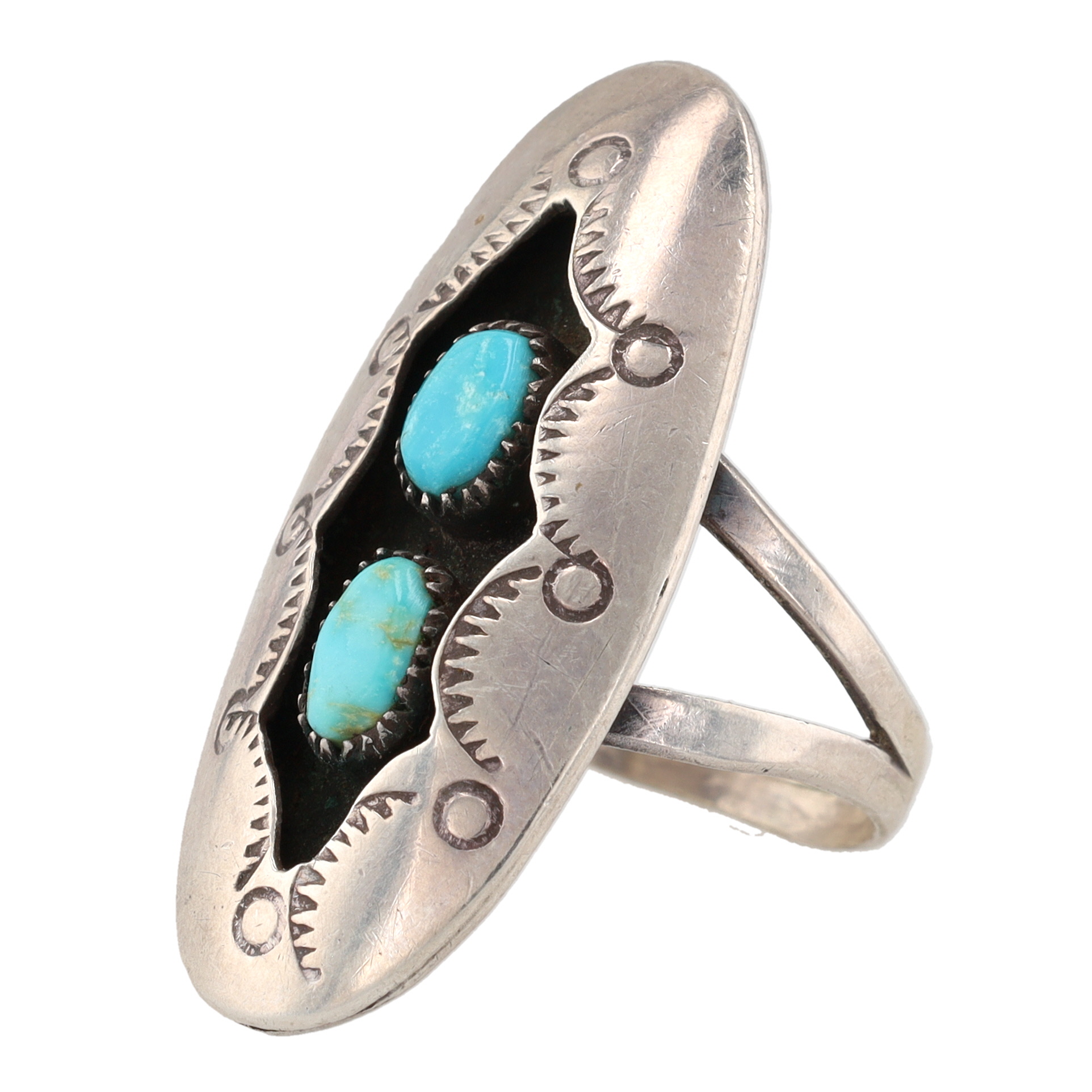 Vintage Navajo Sterling Turquoise Shadowbox Ring Sz 9.5