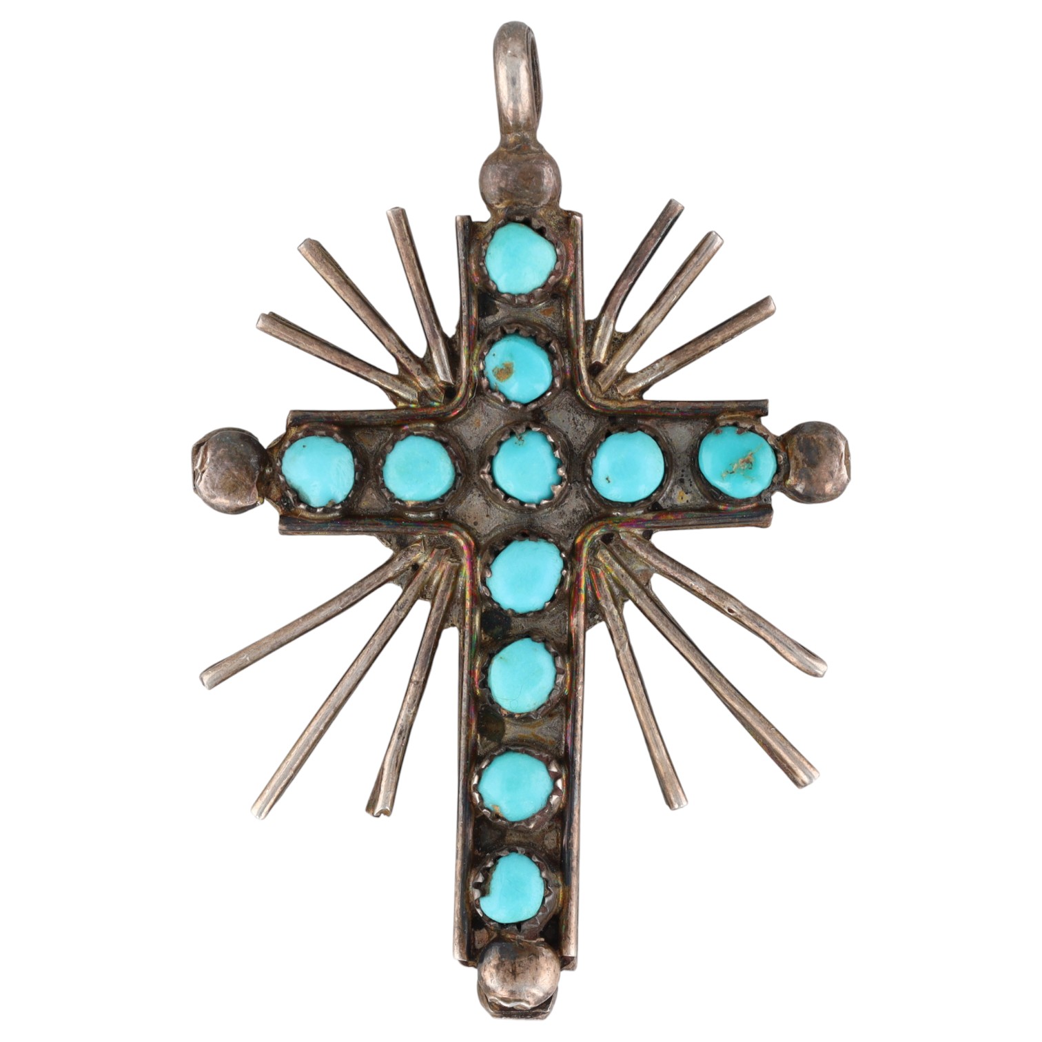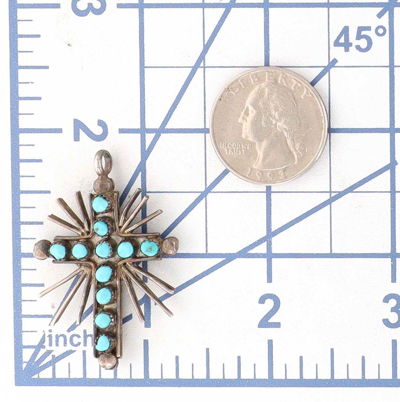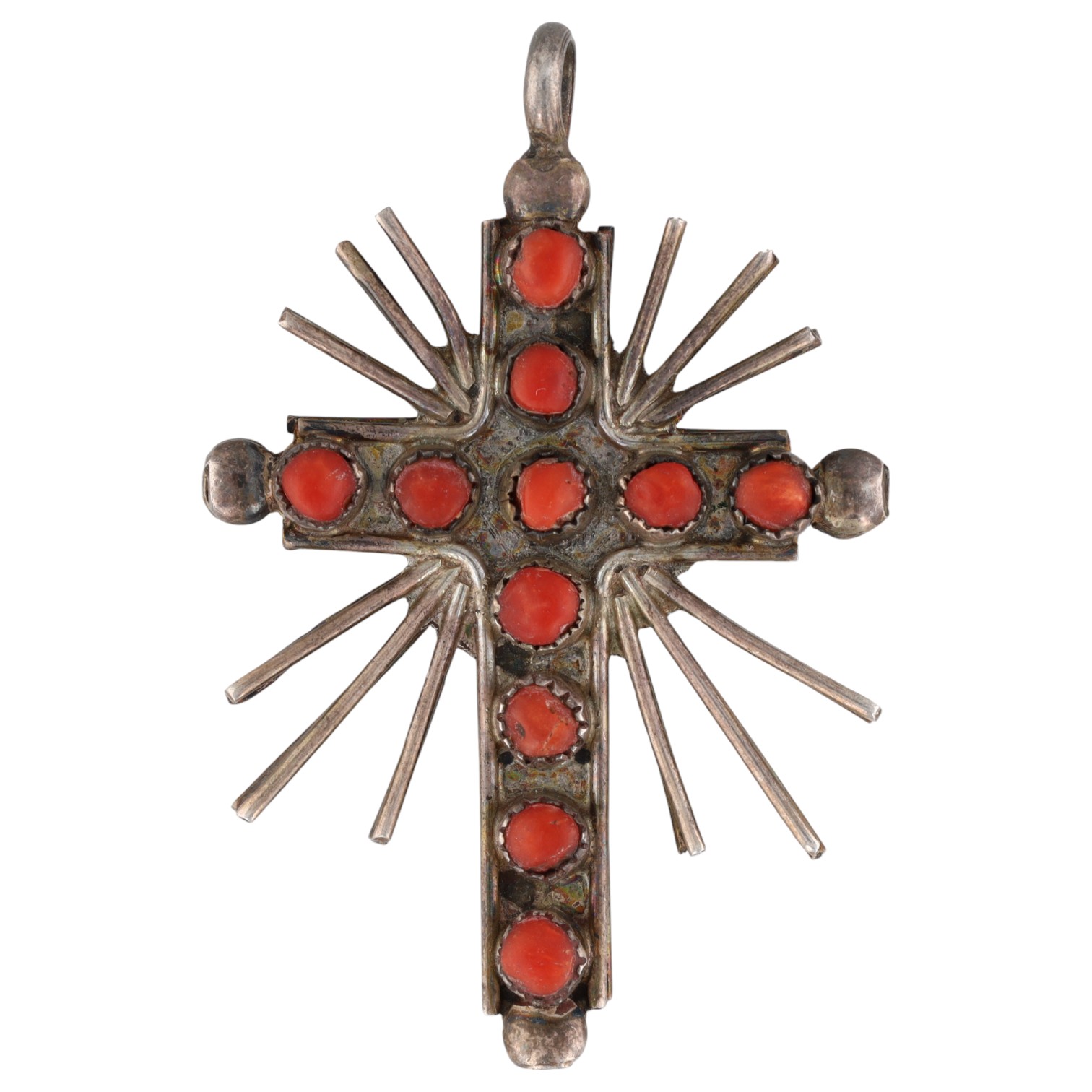 Vintage Zuni Sterling Turquoise and Coral Reversible Cross Pendant