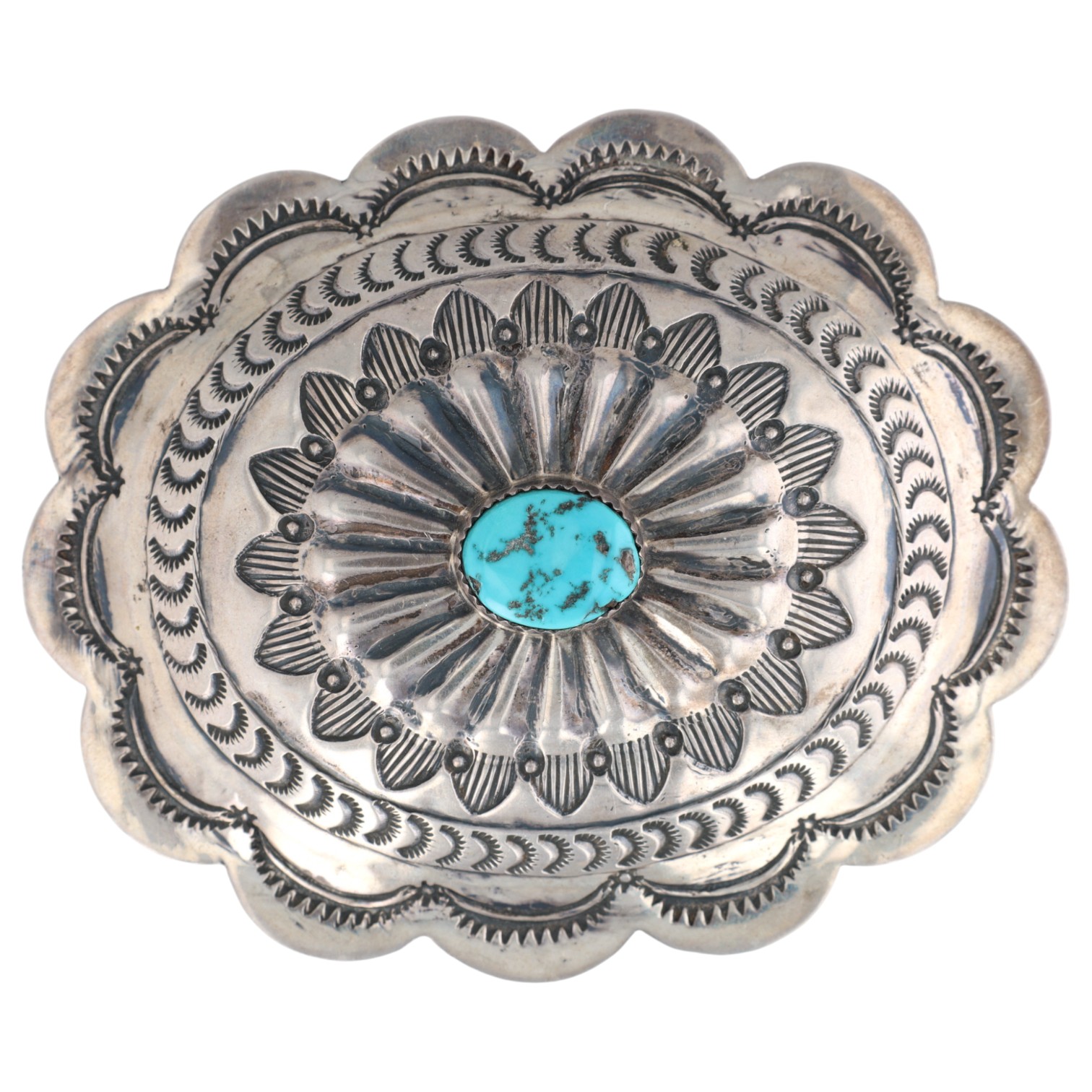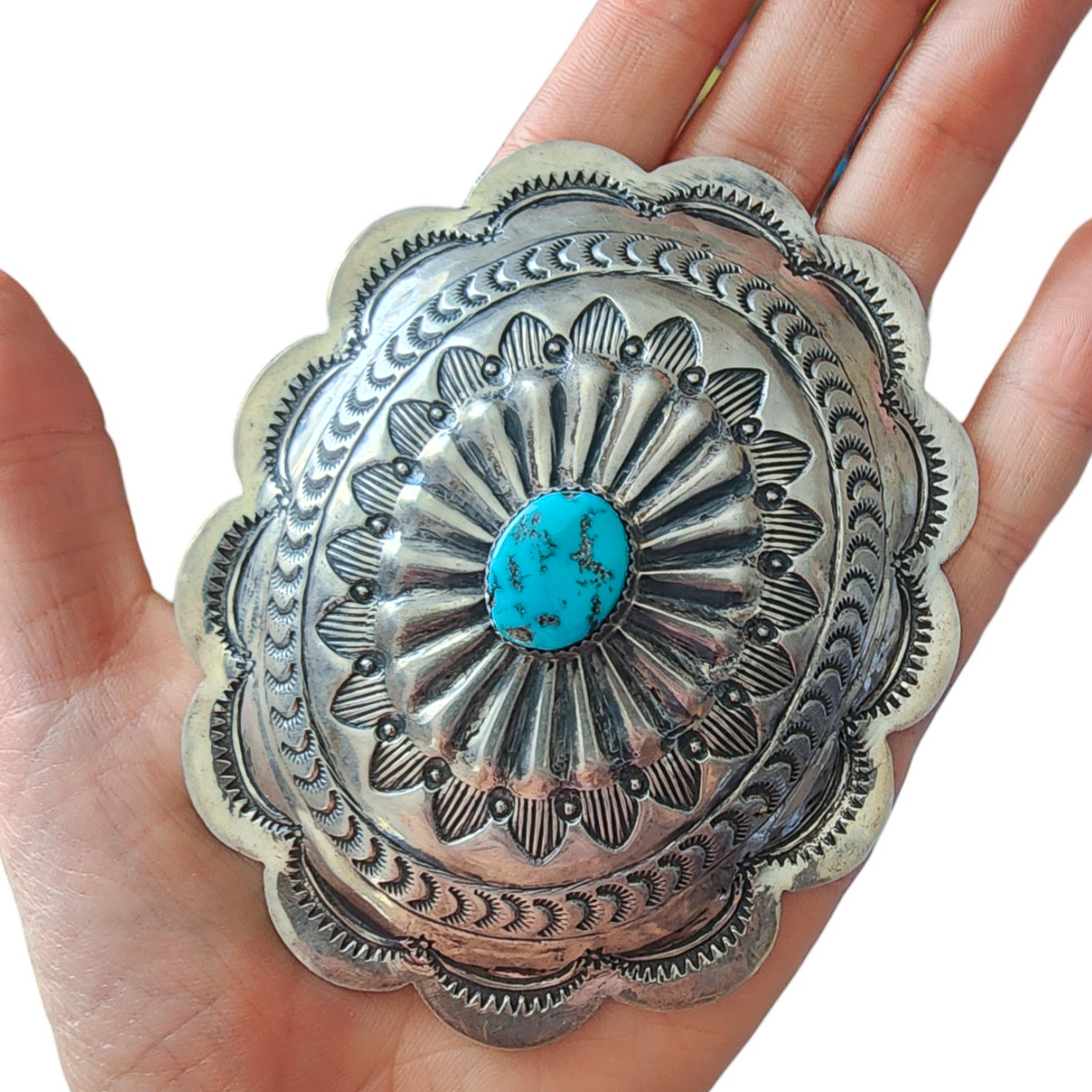 Vintage Huge Navajo Sterling Turquoise Concho Belt Piece