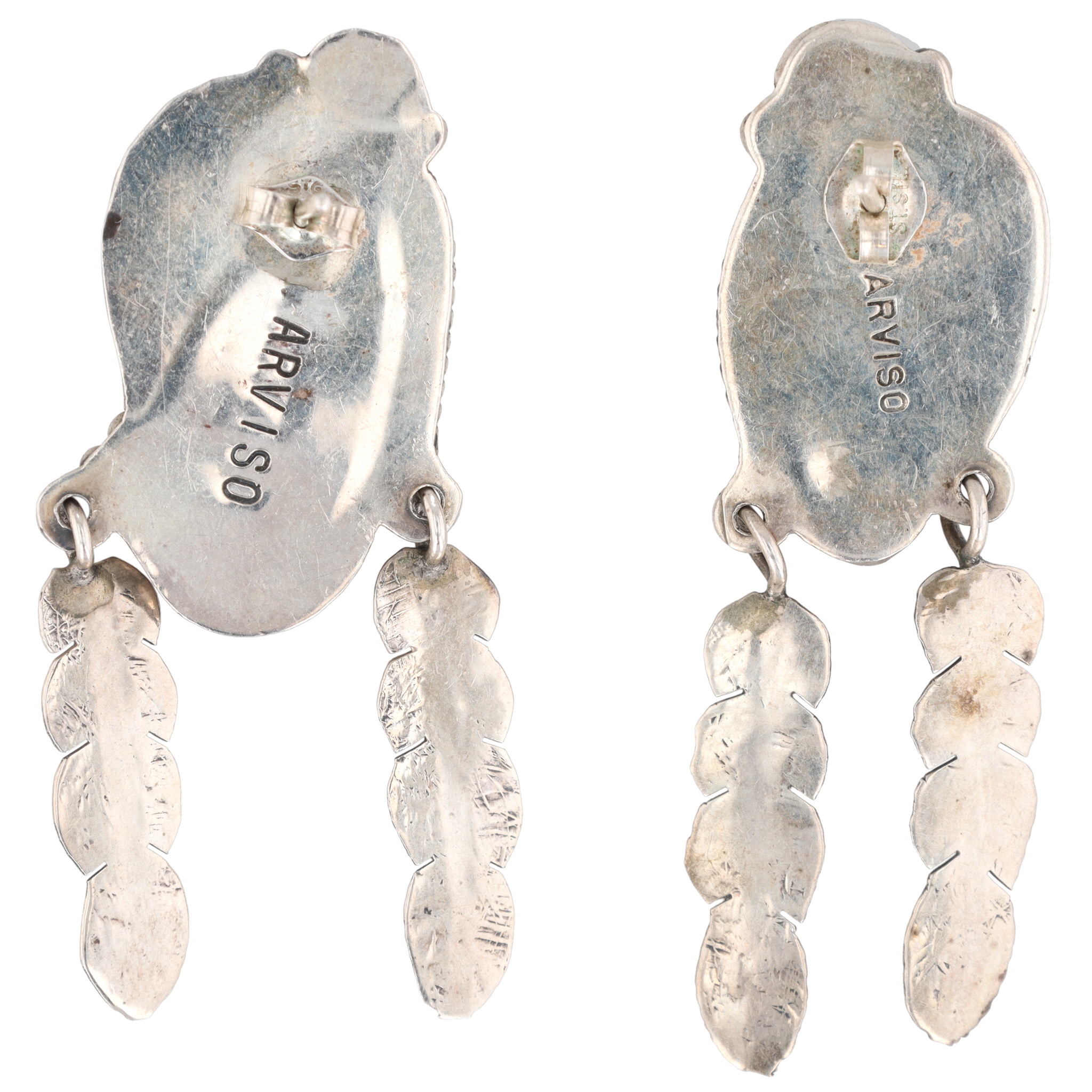 Frank Arviso Navajo Sterling Mother of Pearl Feather Dangle Earrings