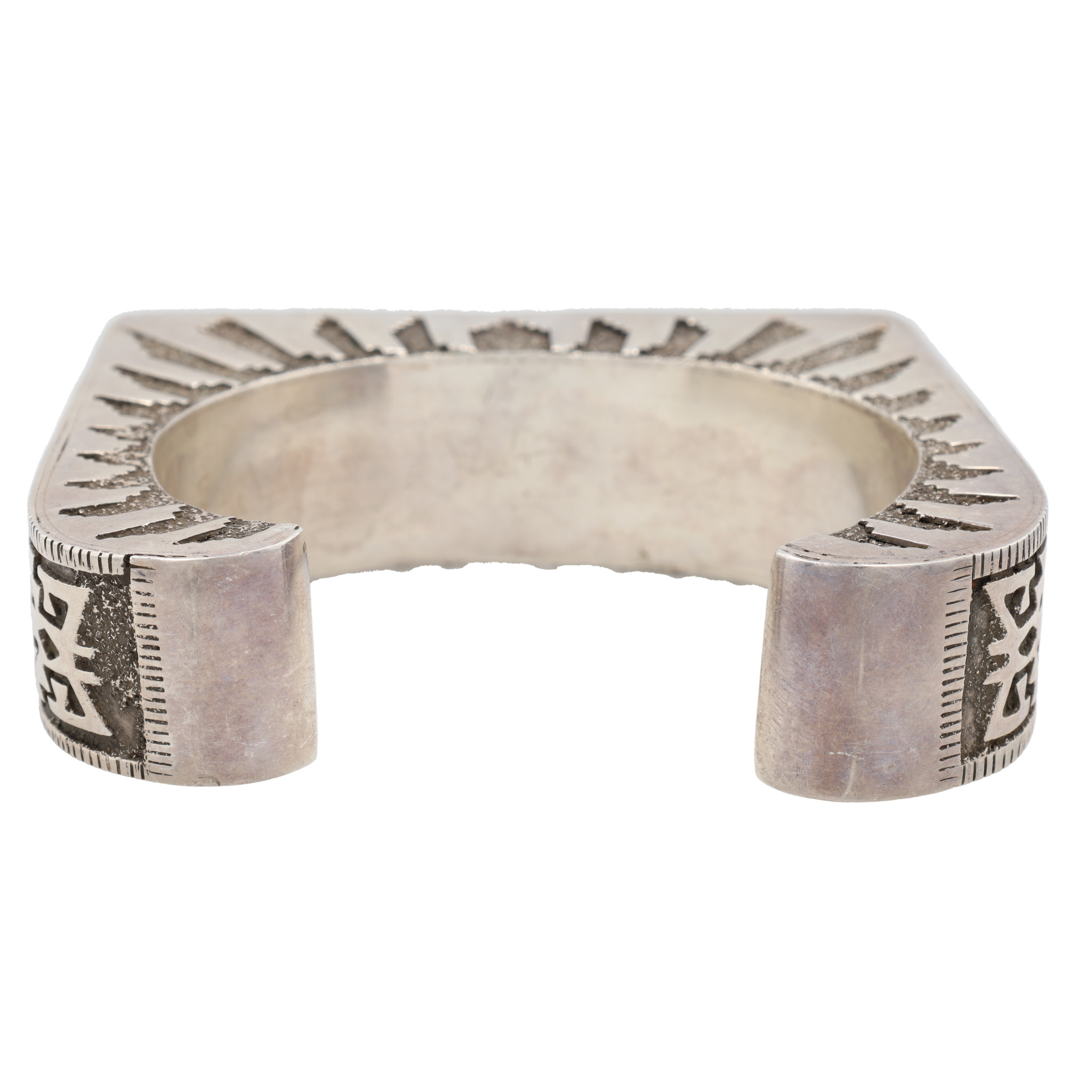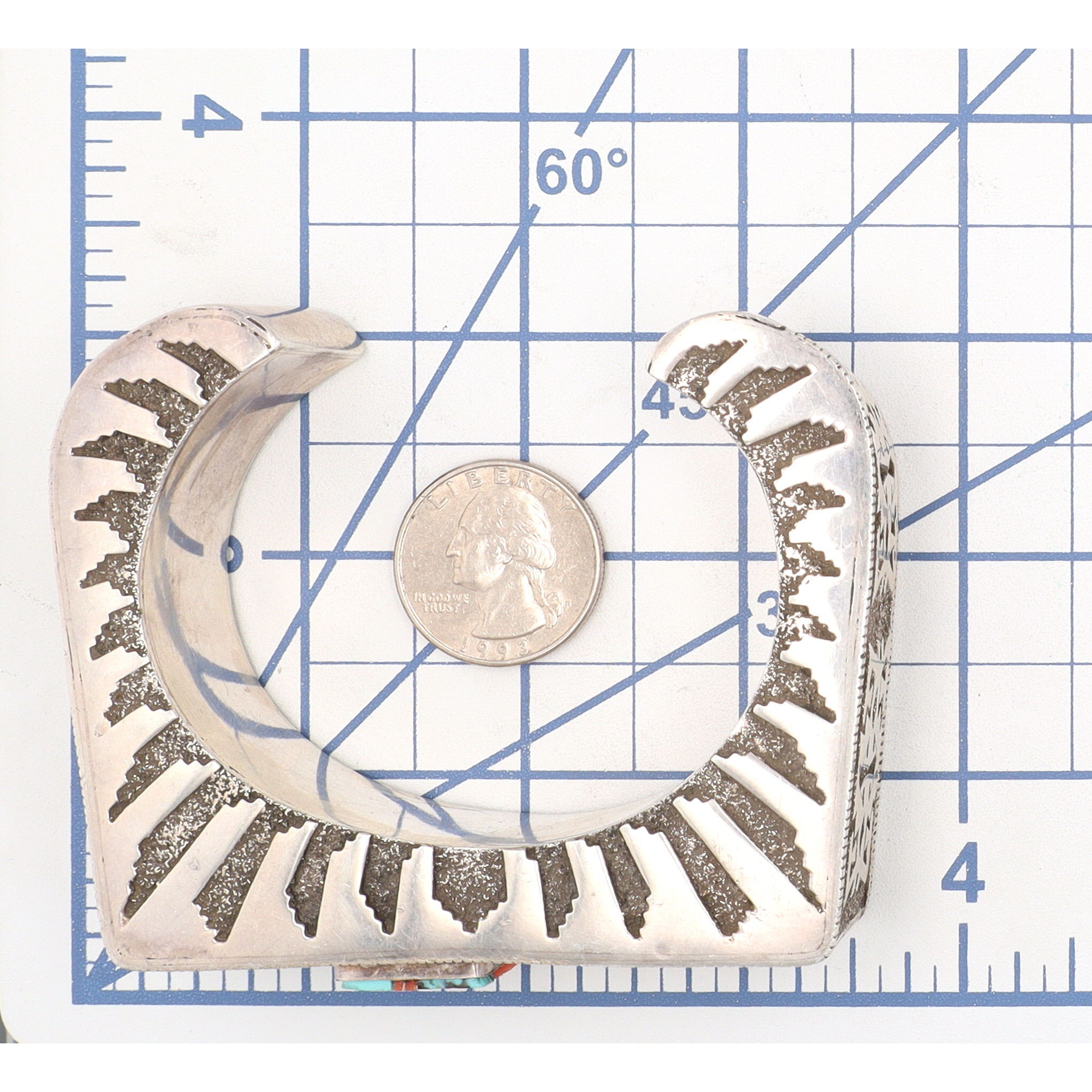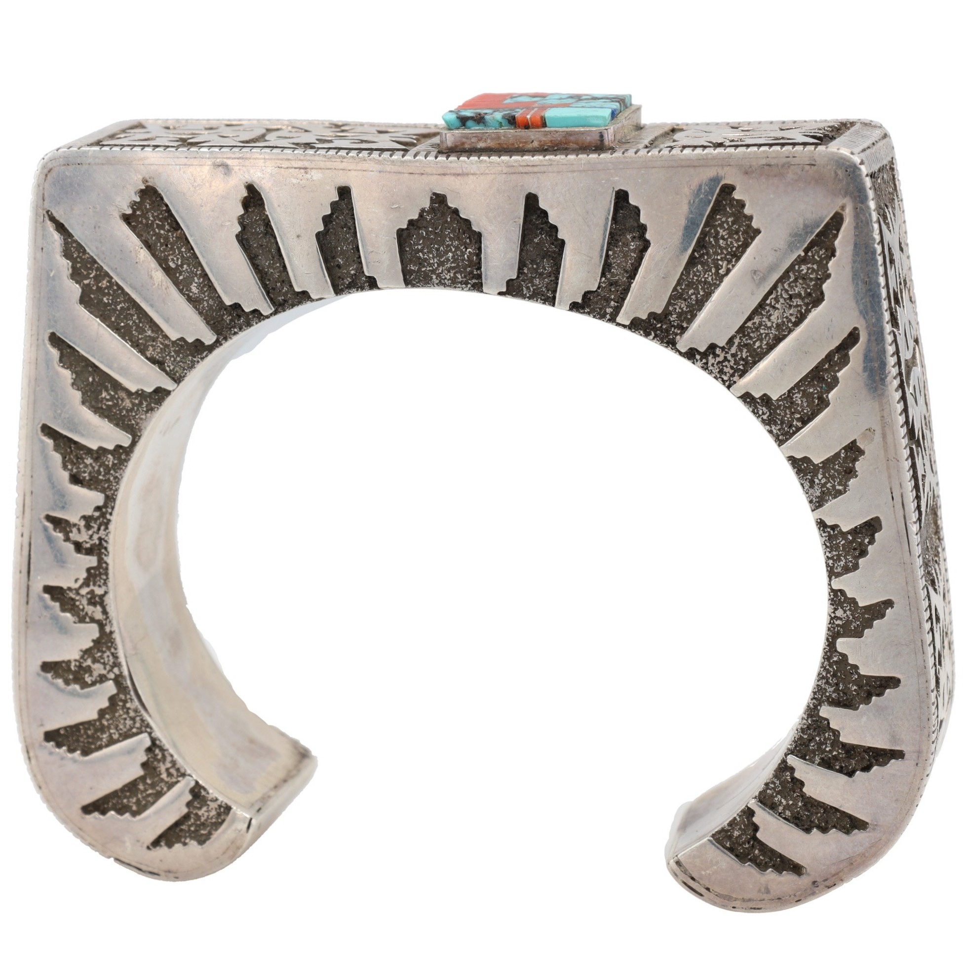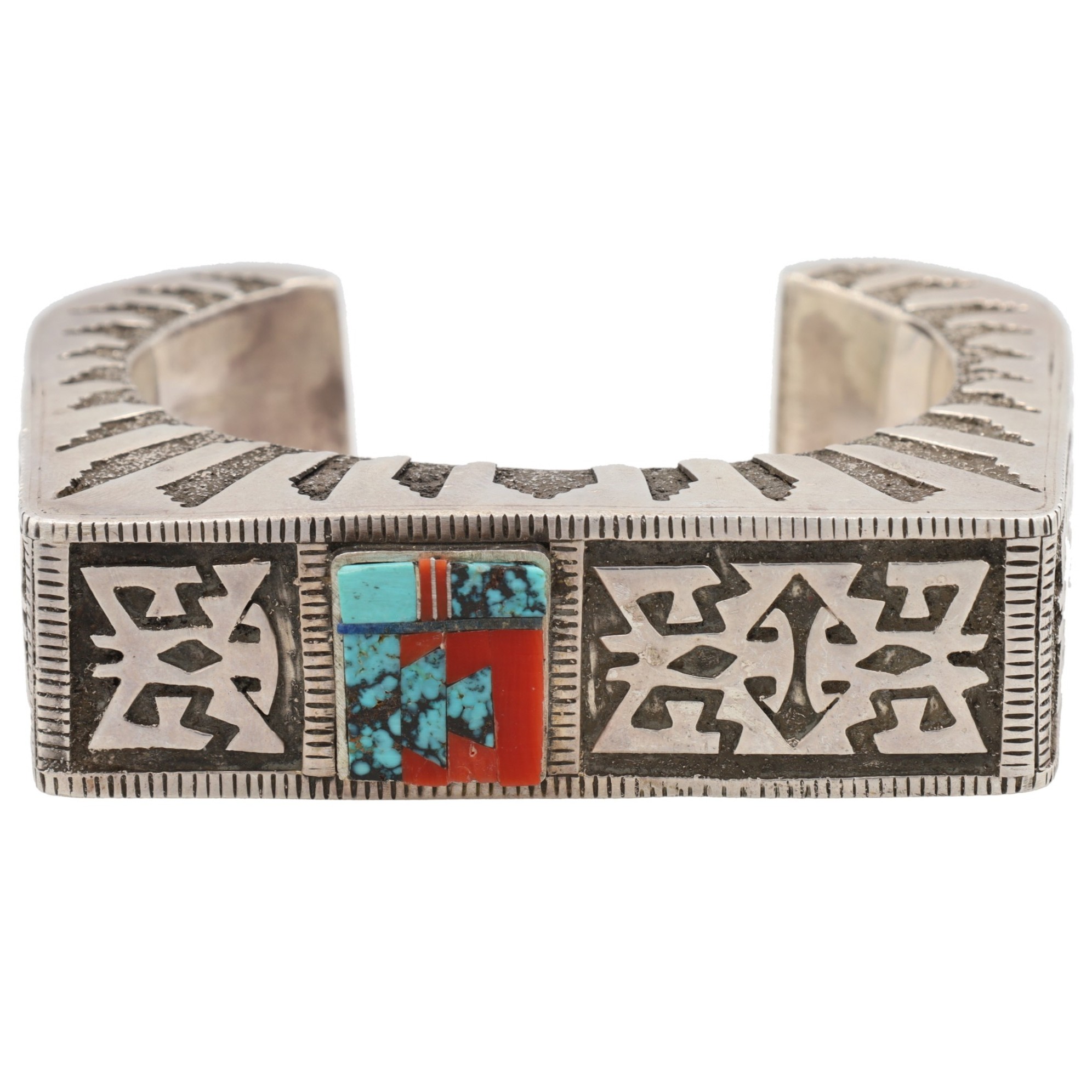 Vintage Navajo Sterling Heavy Gauge Multi Stone Inlay Cuff Bracelet
