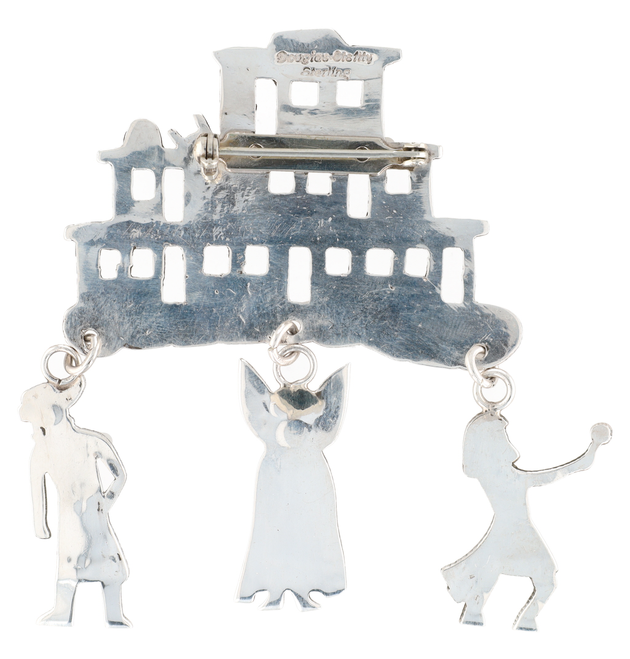 Big! Douglas Etsitty Navajo Sterling Pueblo Village & Kachina Dangle Brooch