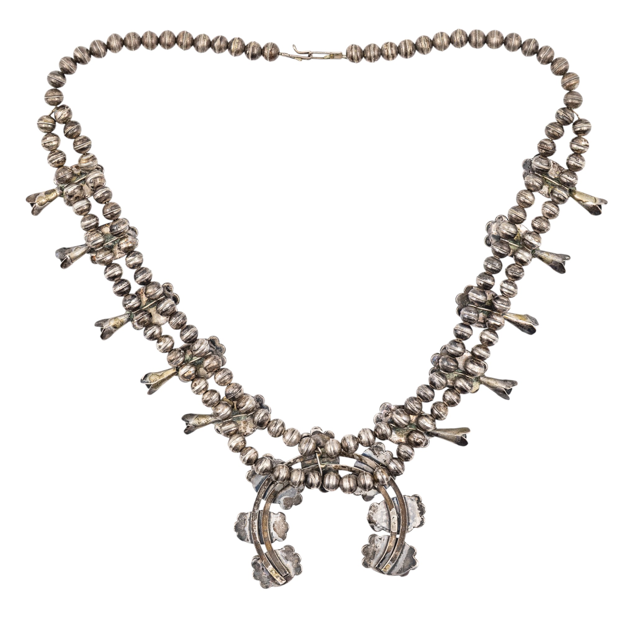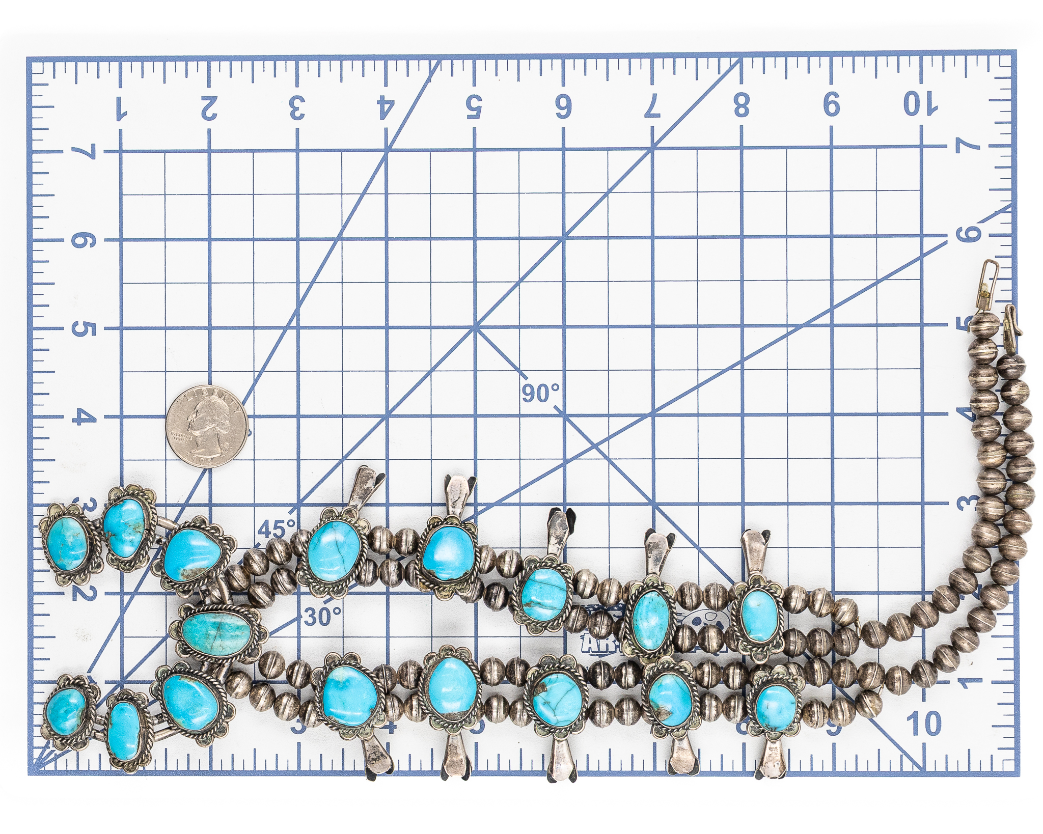Navajo Sterling Turquoise Squash Blossom Necklace