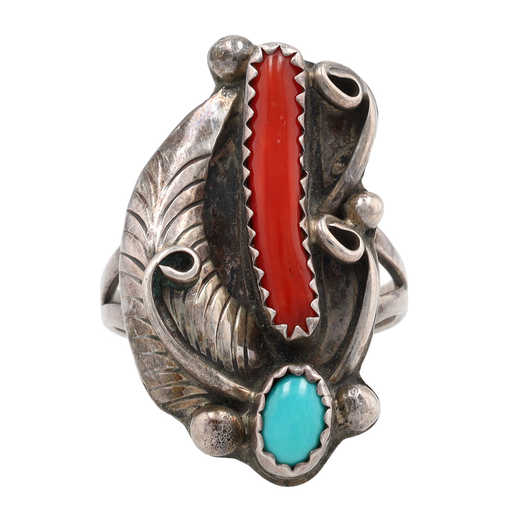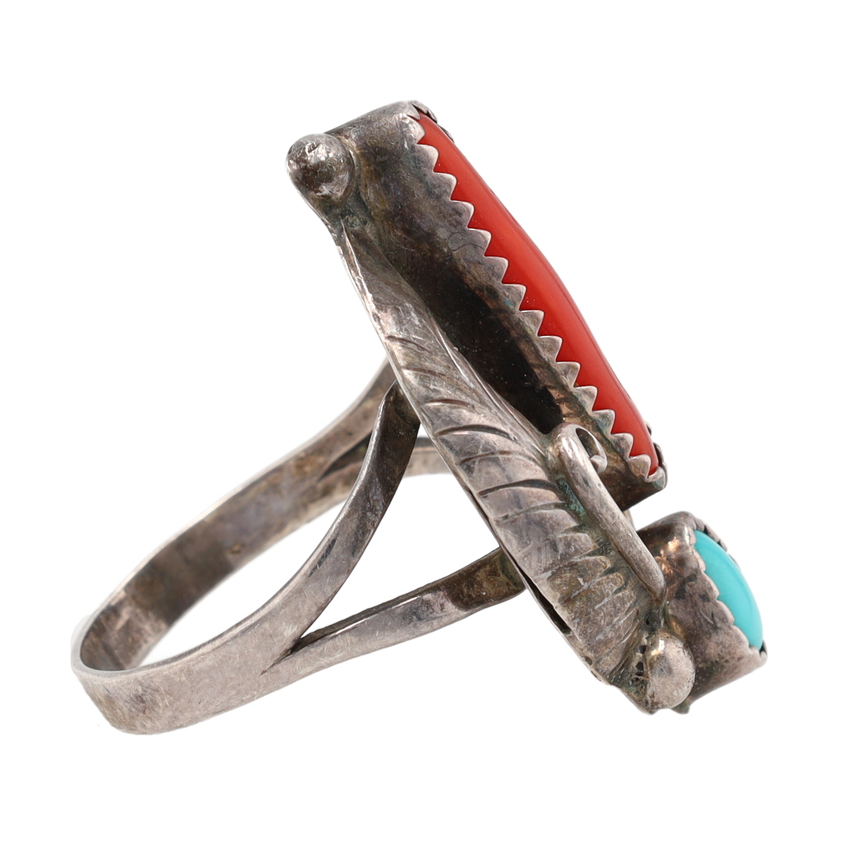 Birdie Desiderin Navajo Sterling Turquoise Coral Ring Sz 7.5