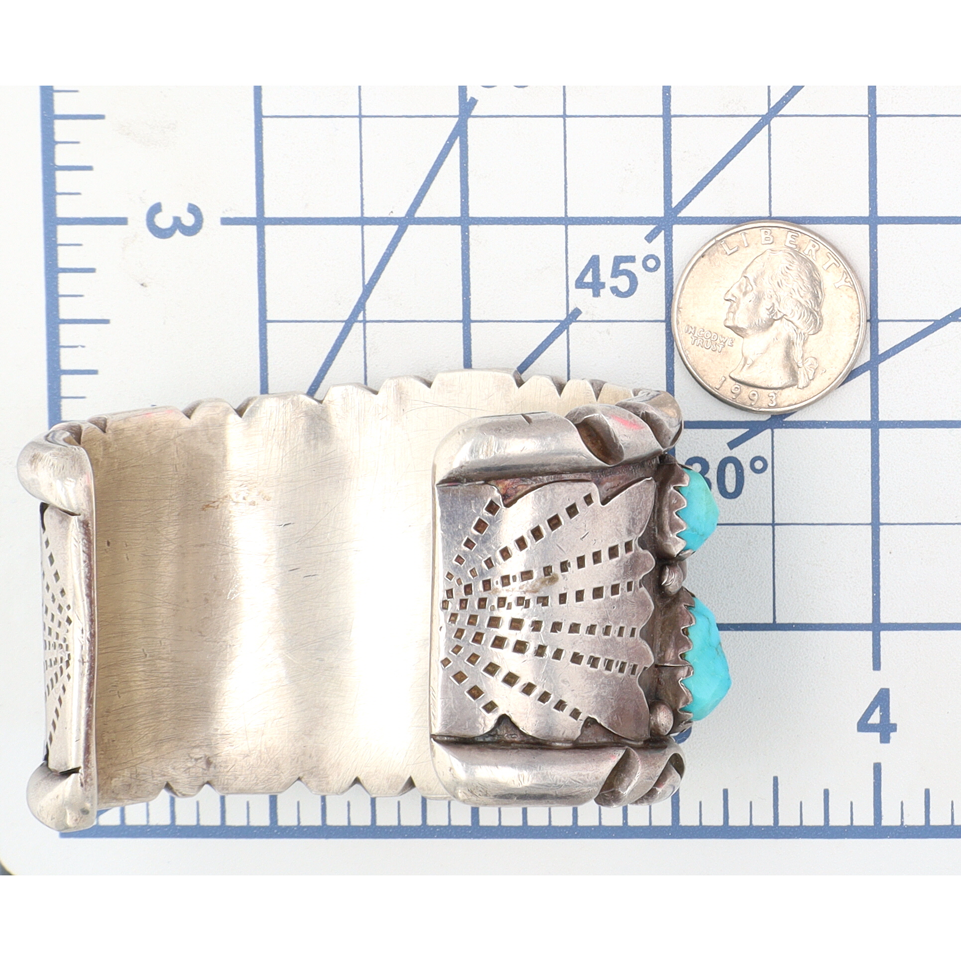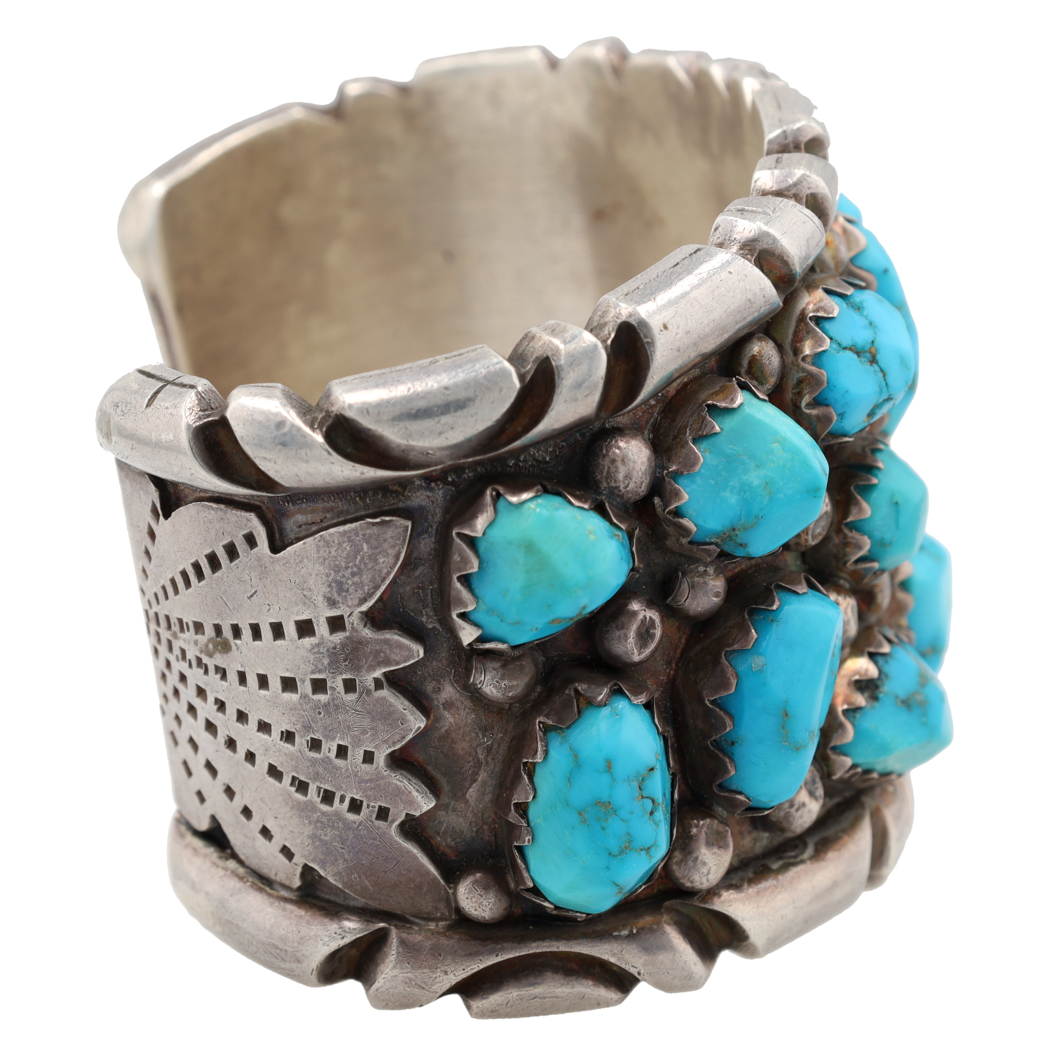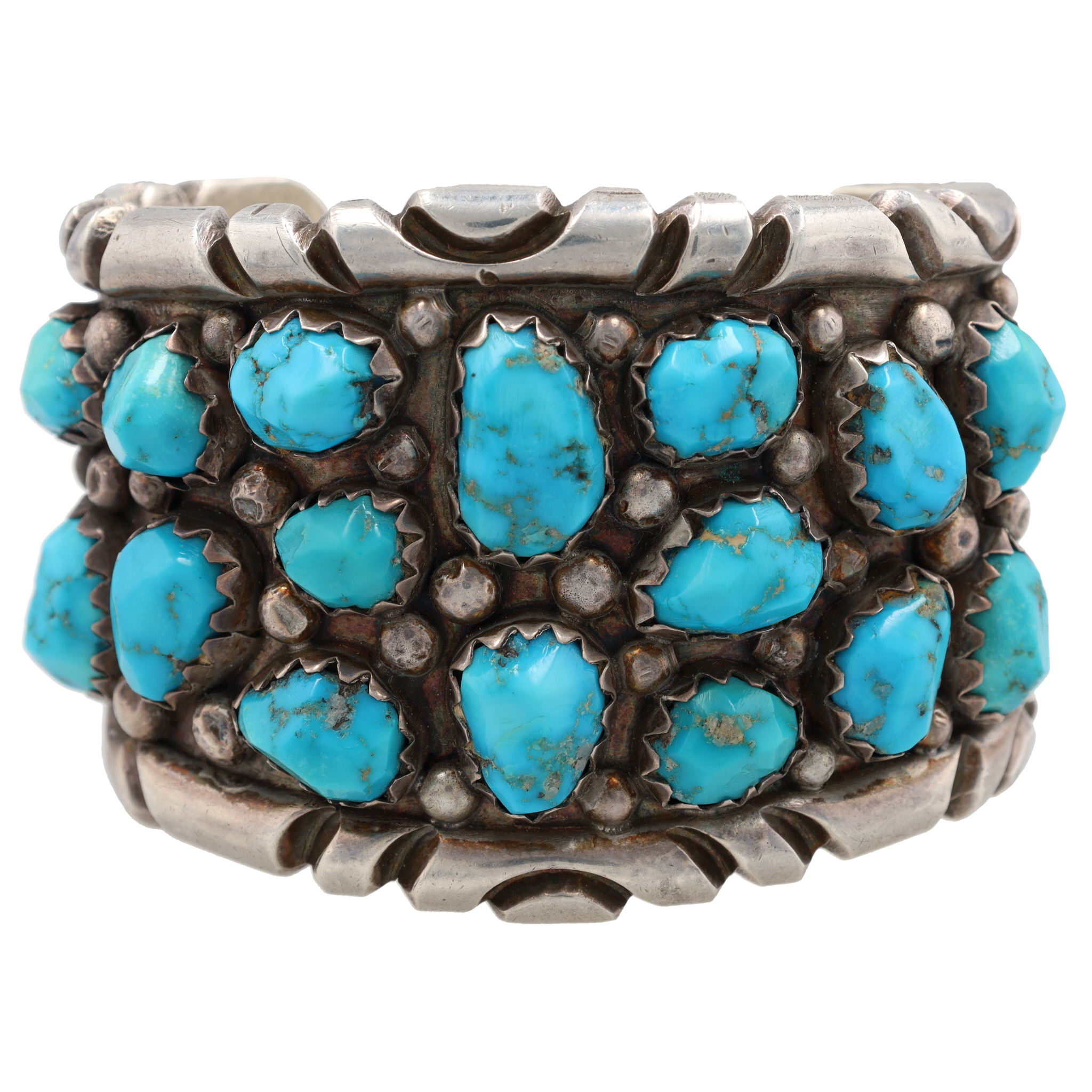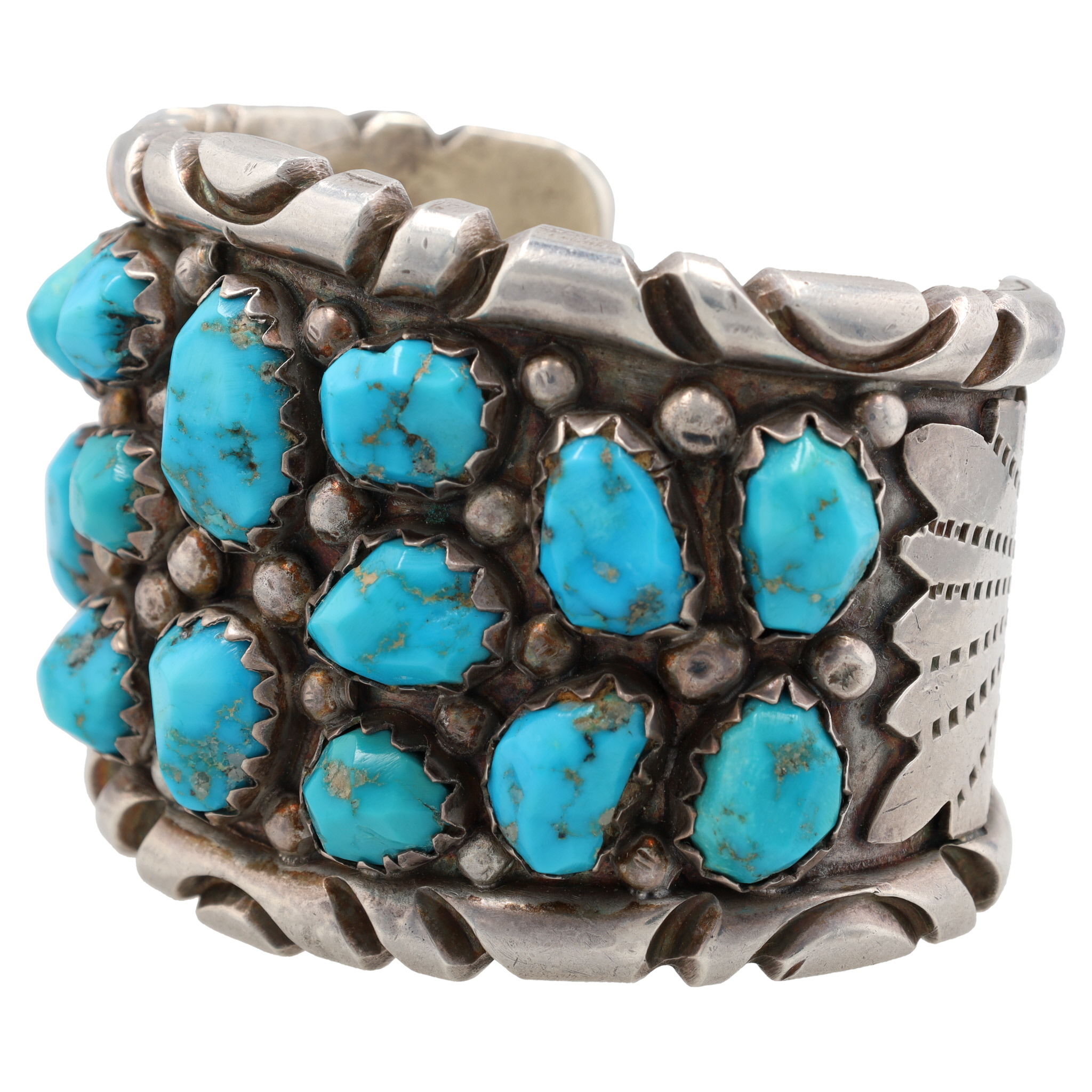 Huge Navajo Sterling Turquoise Cluster Cuff Bracelet
