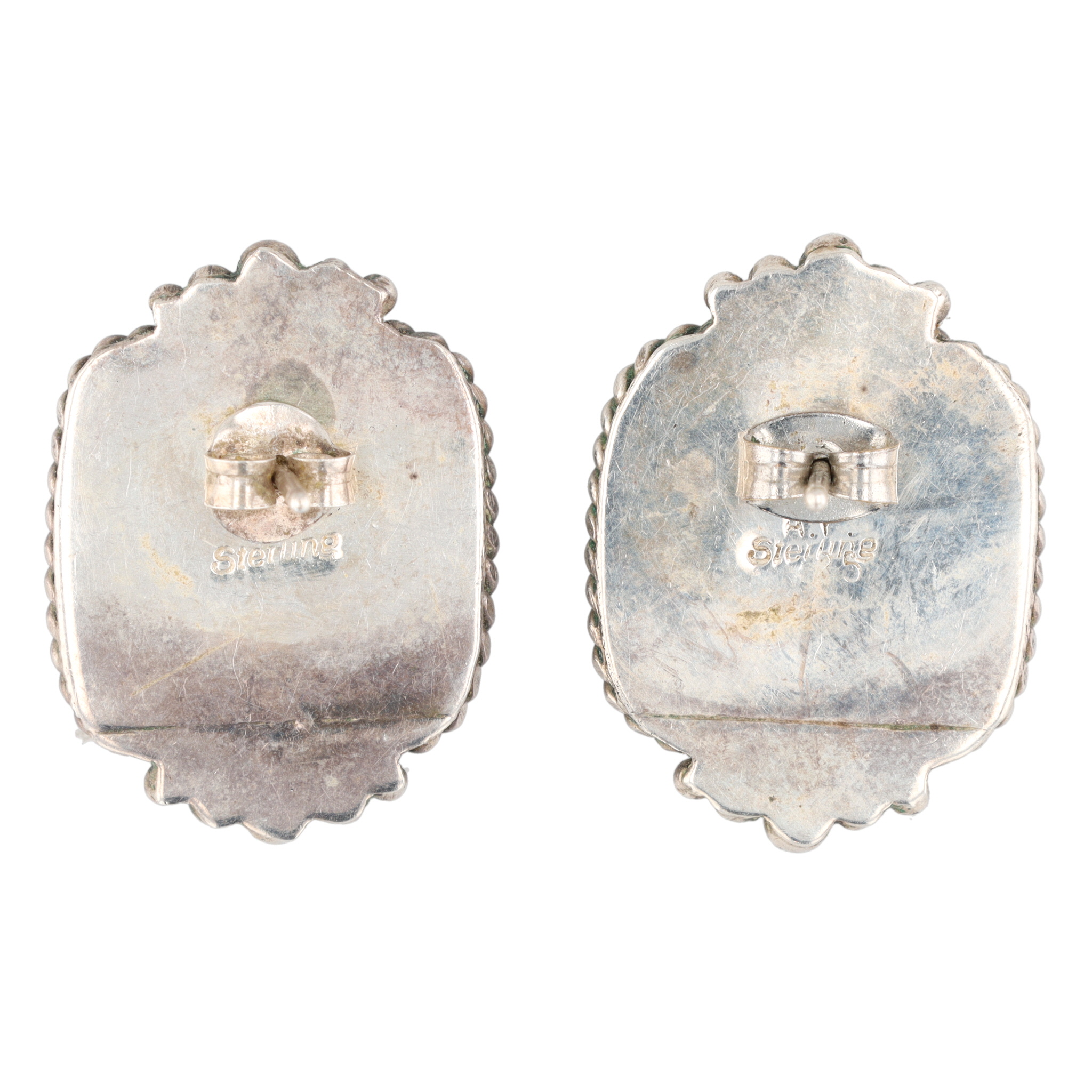 Signed AP Navajo Sterling Bisbee Turquoise Earrings