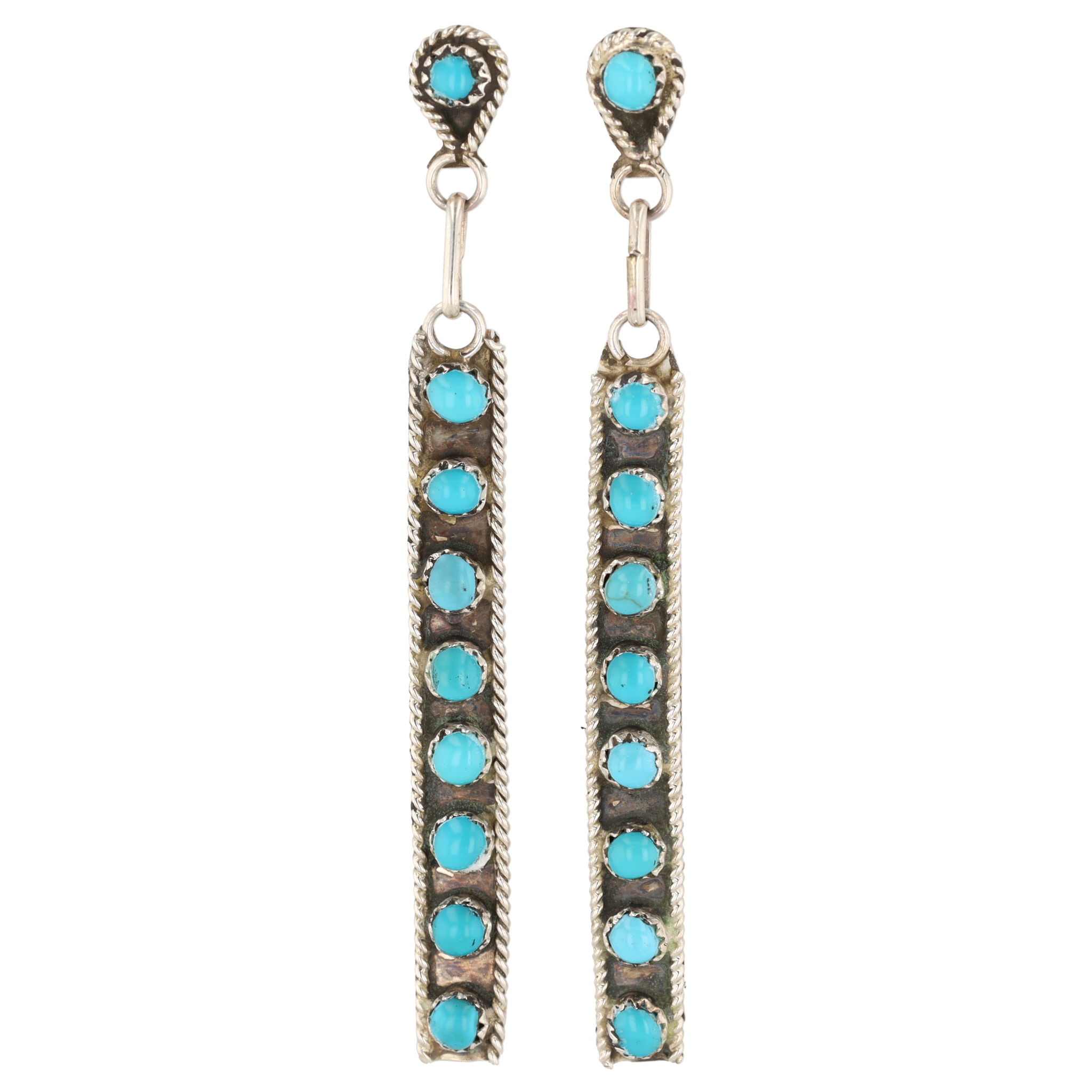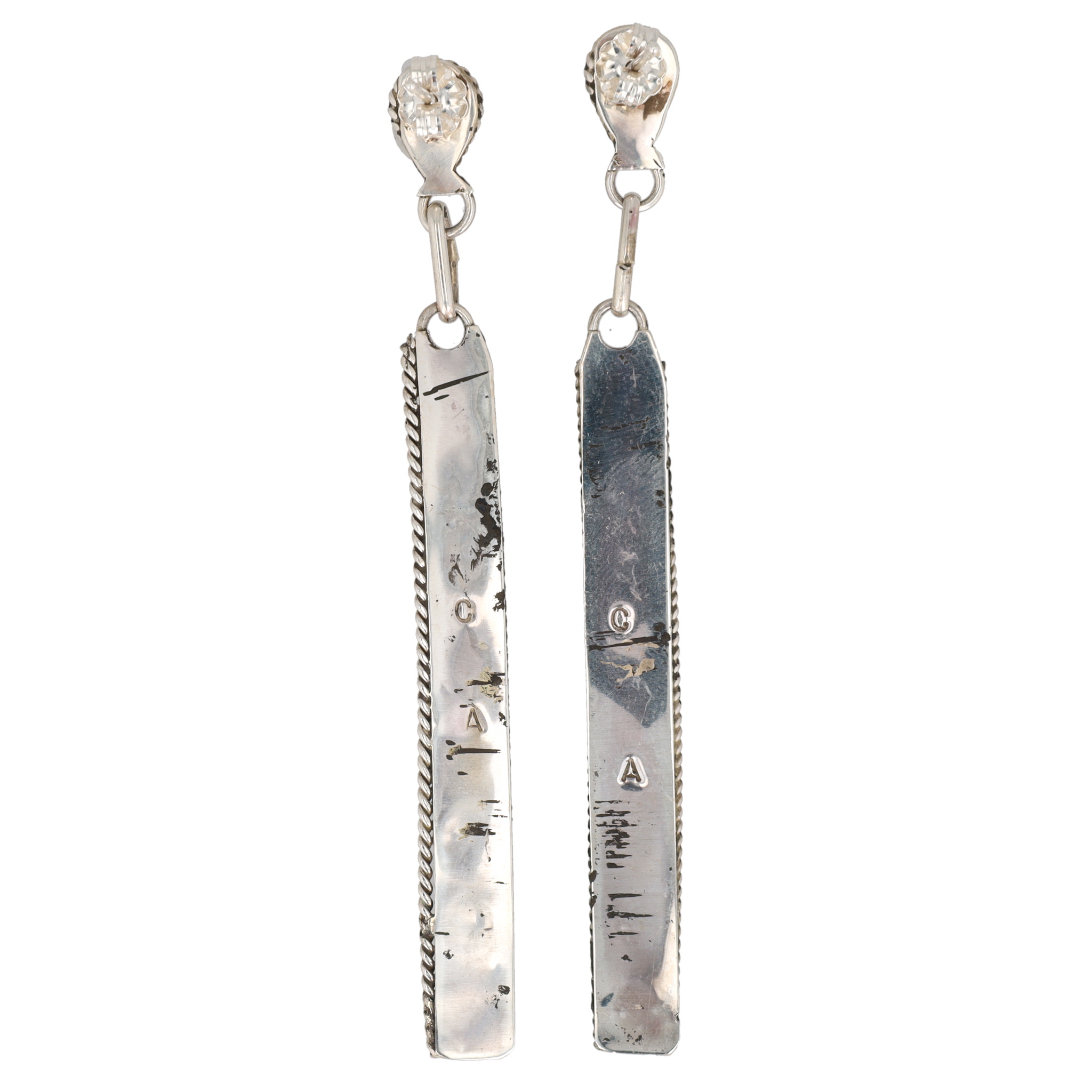 Carol Allapowa Zuni Sterling Kingman Turquoise Snake Eye Bar Earrings
