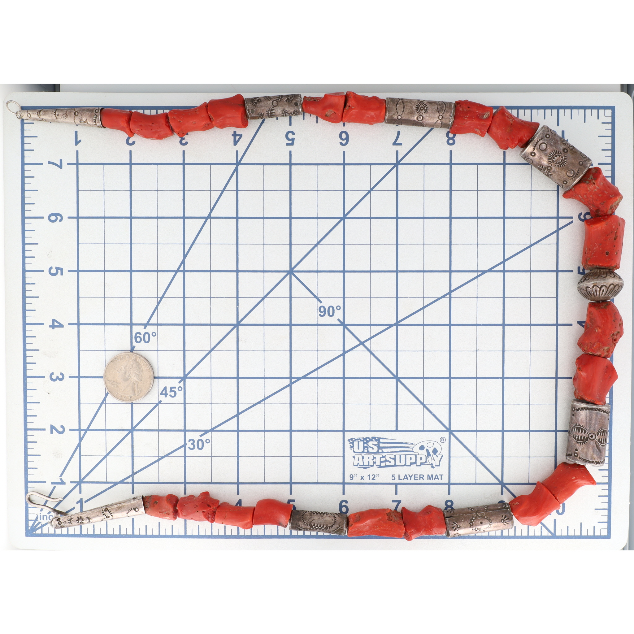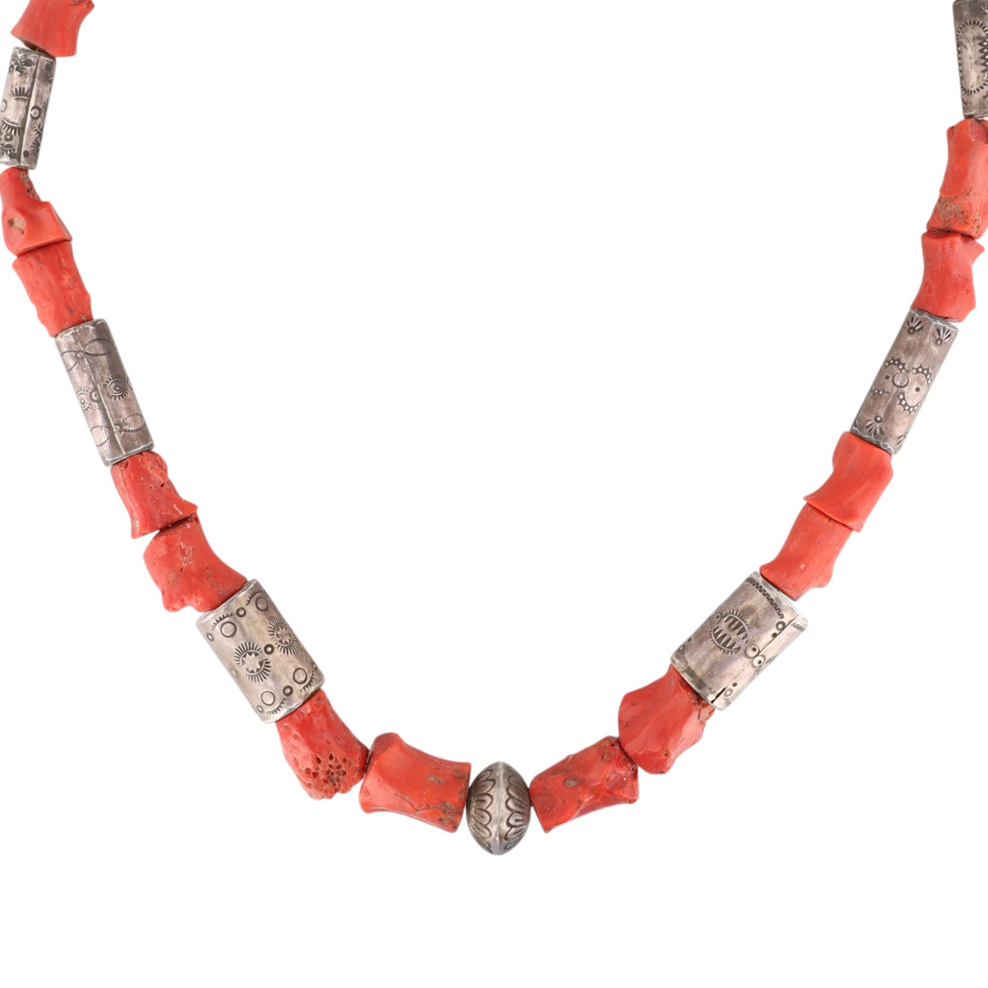 Vintage Santo Domingo Sterling Stamped Bead and Coral Necklace