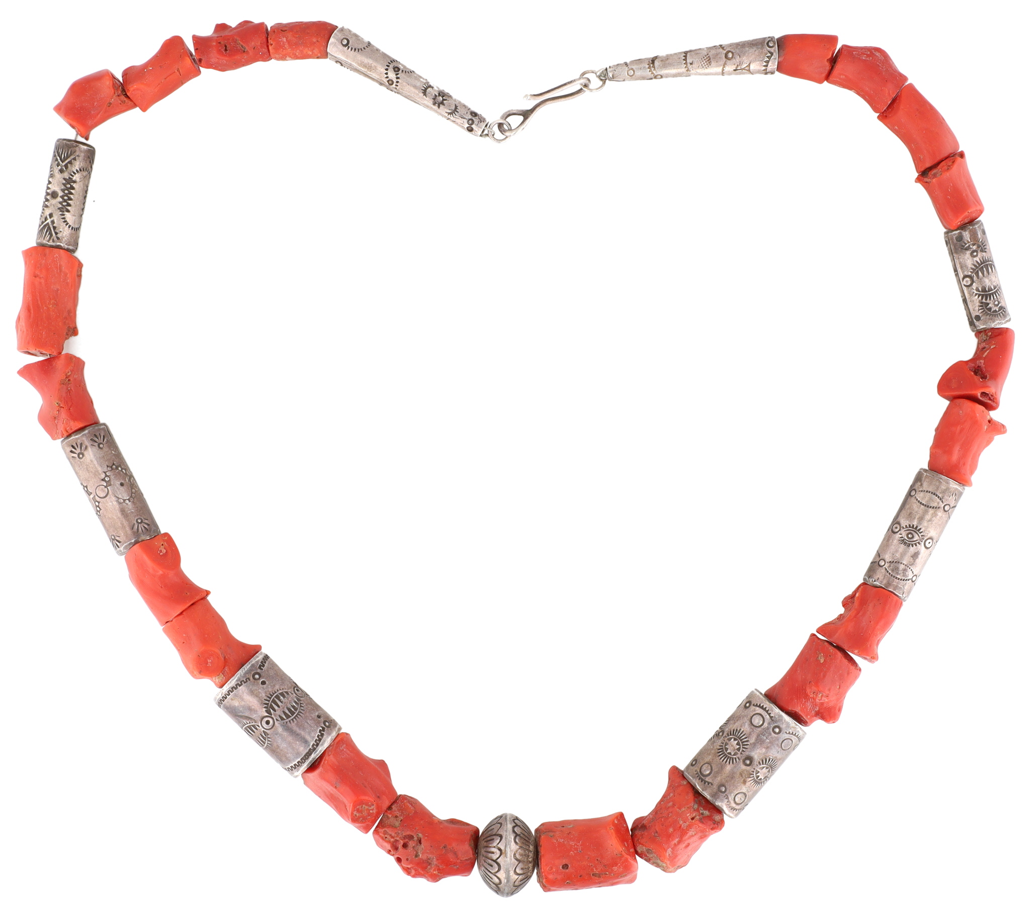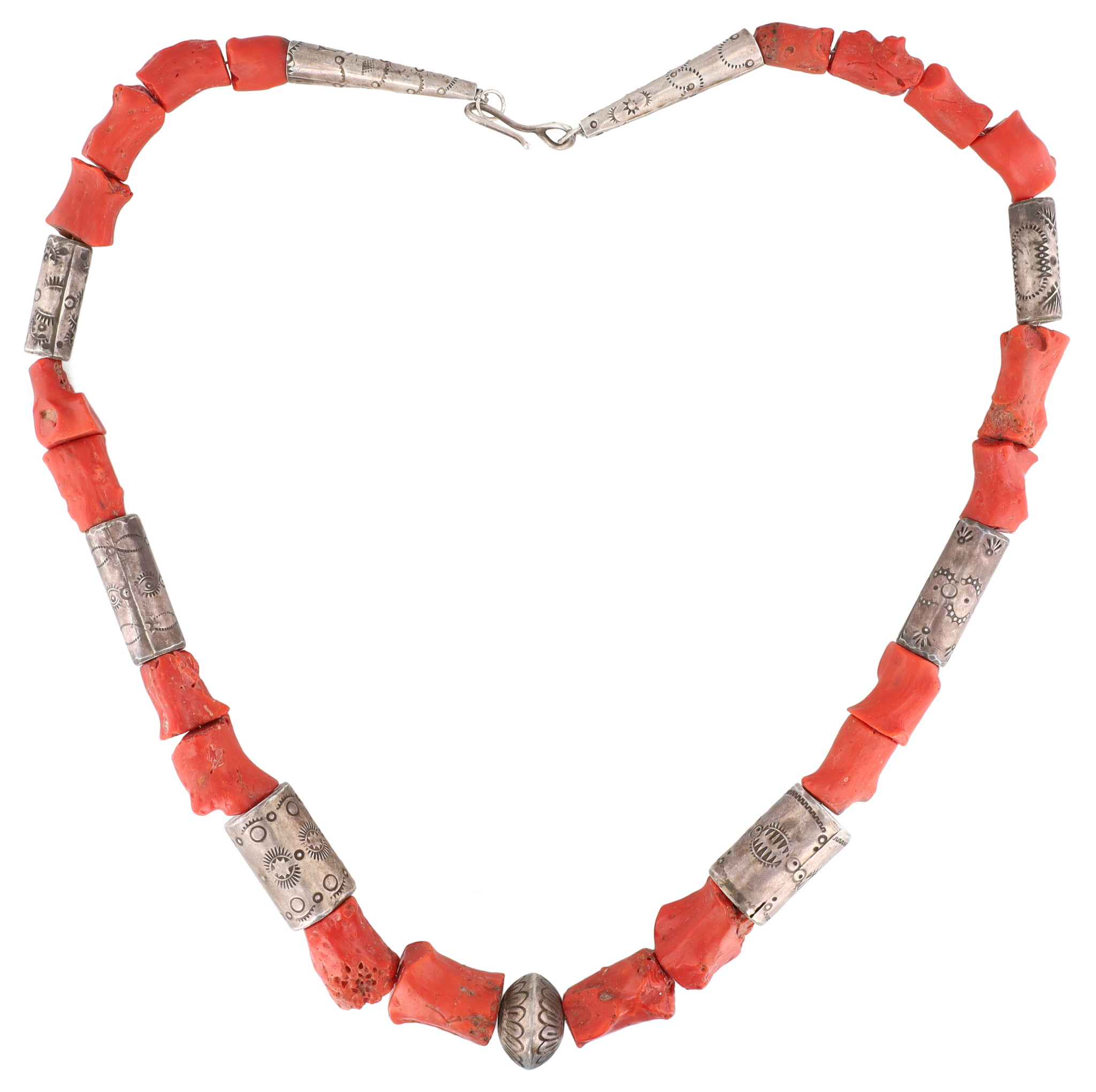Wow! Vintage Santo Domingo Sterling Stamped Bead and Coral Necklace