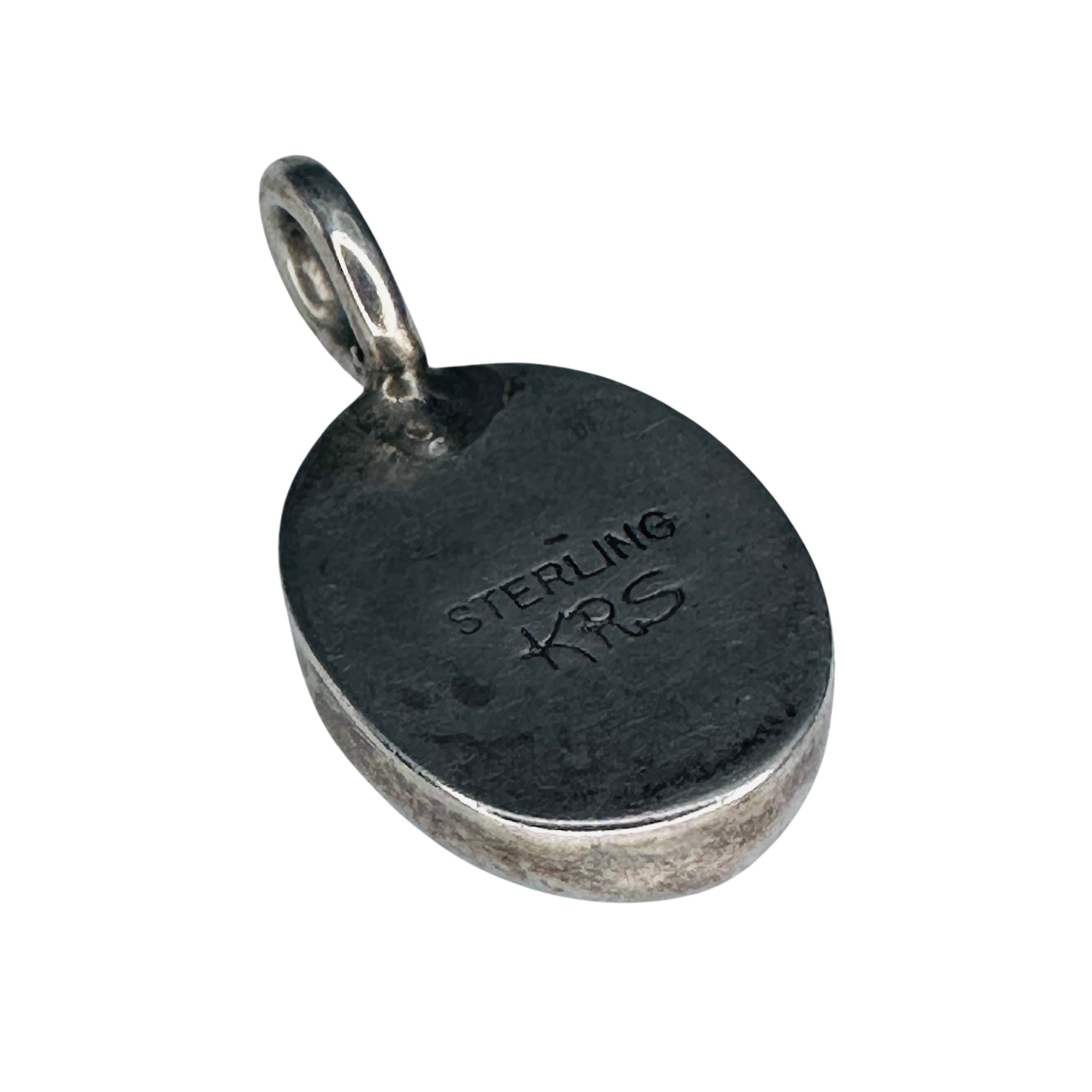 Signed KRS TURQUOISE sterling silver oval pendant 2.82g