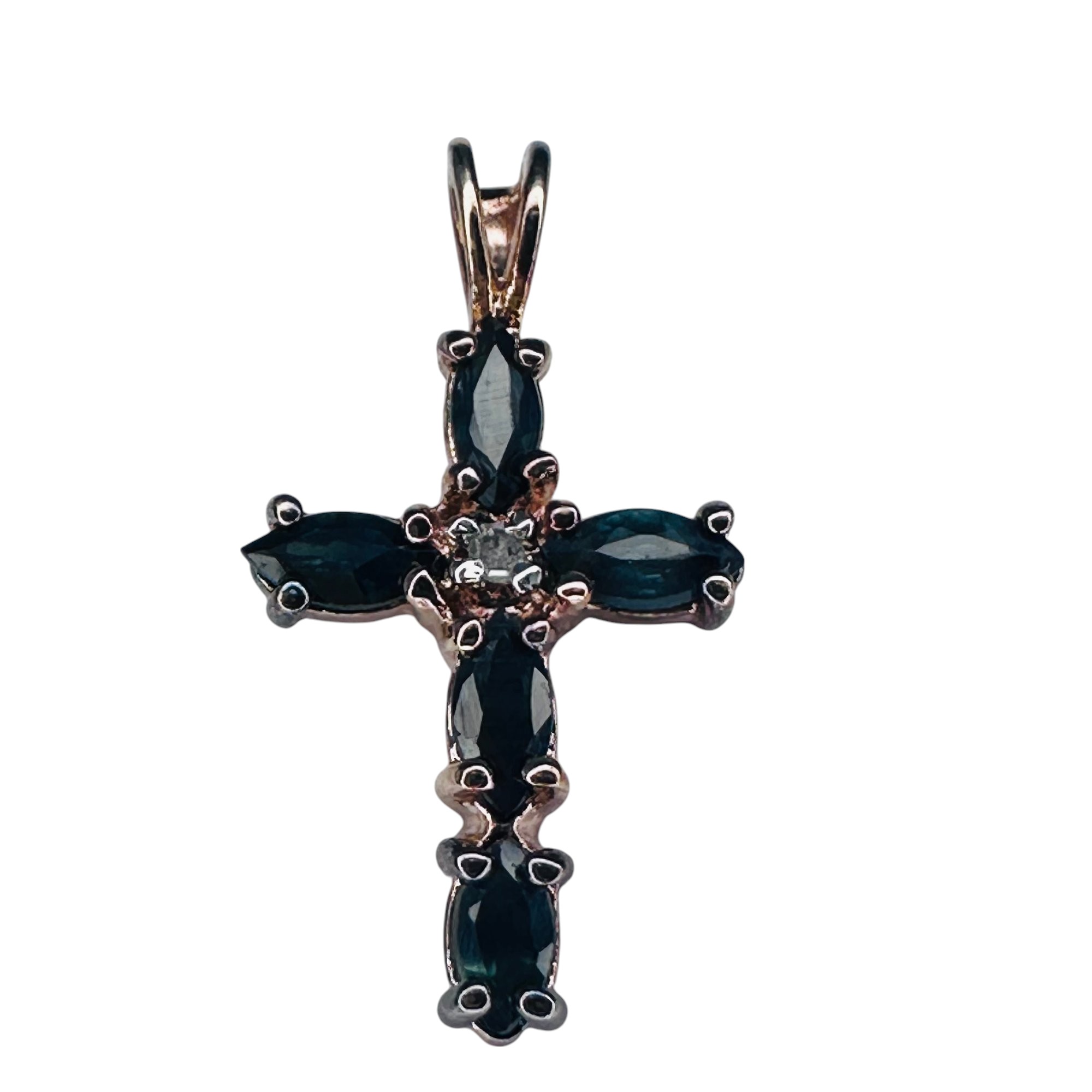 R DIAMOND SAPPHIRE Sterling silver cross pendant 1.11 g
