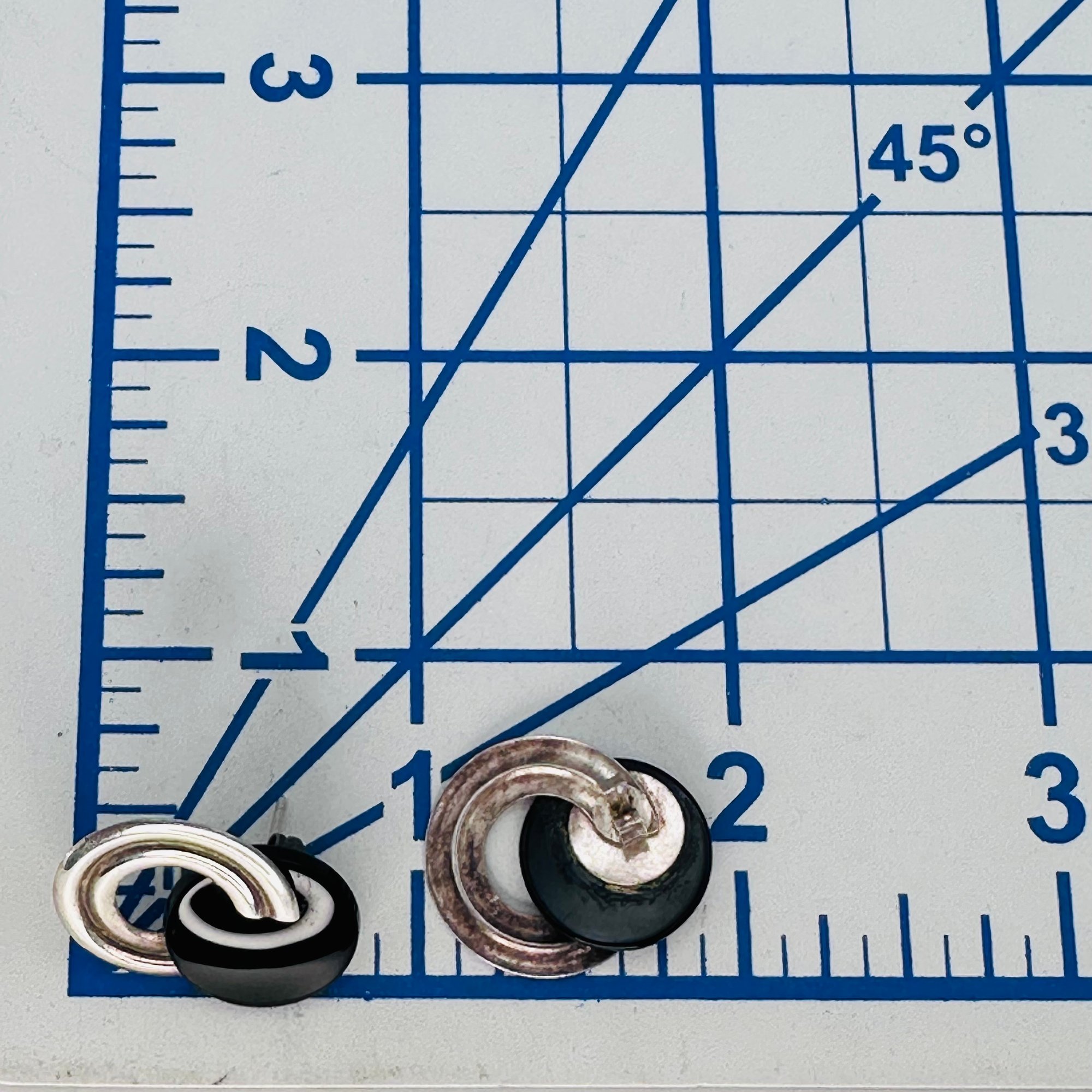 ONYX, Sterling Silver Double Circle Stud Earrings 3.62 G