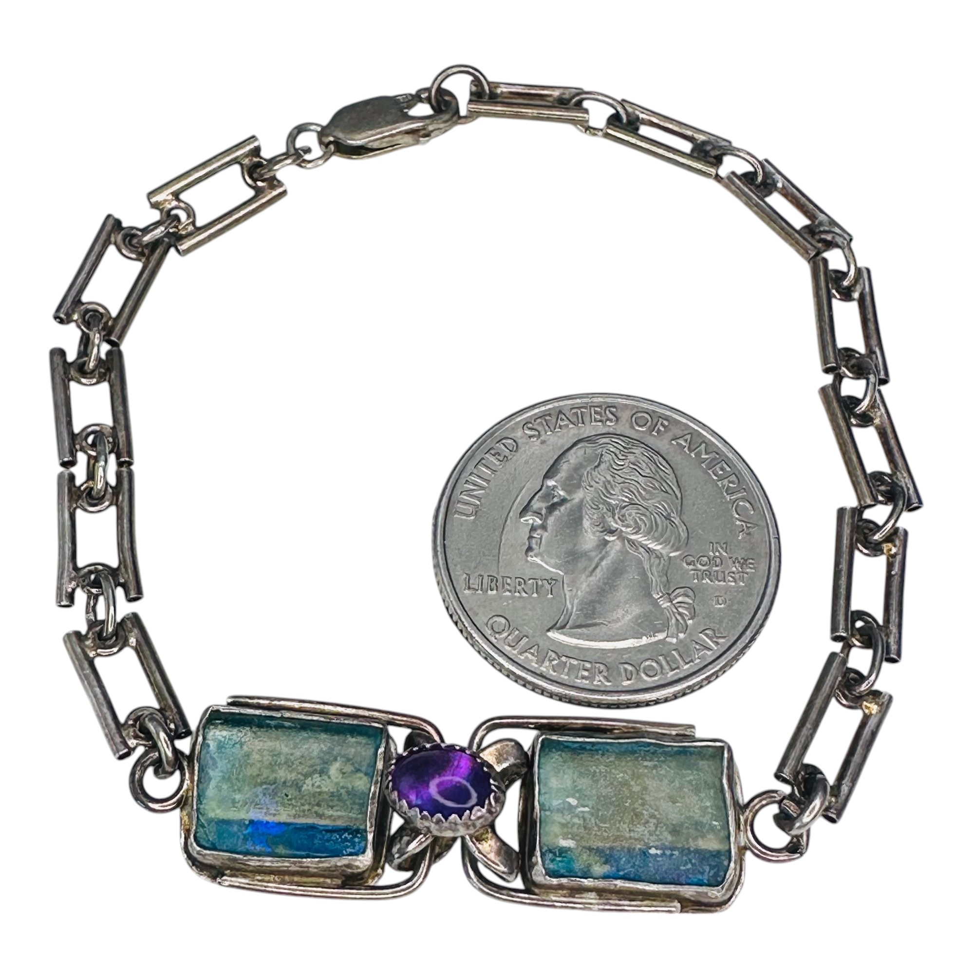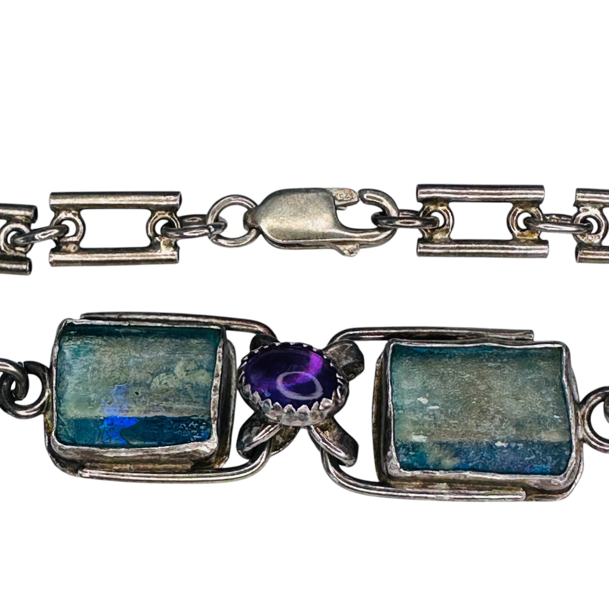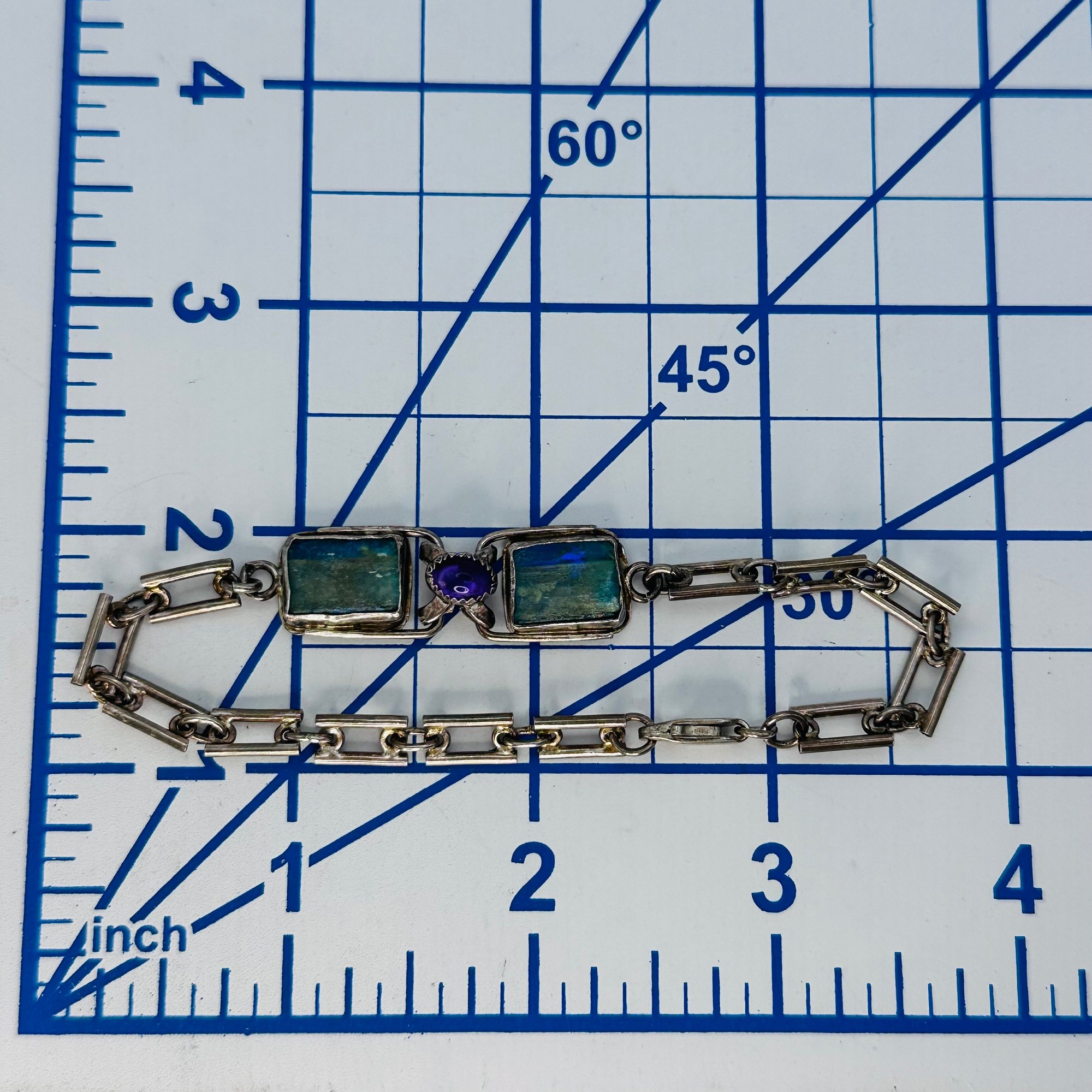 Signed AMETHYST Sterling silver blue stone Square link chain bracelet 9.67 g