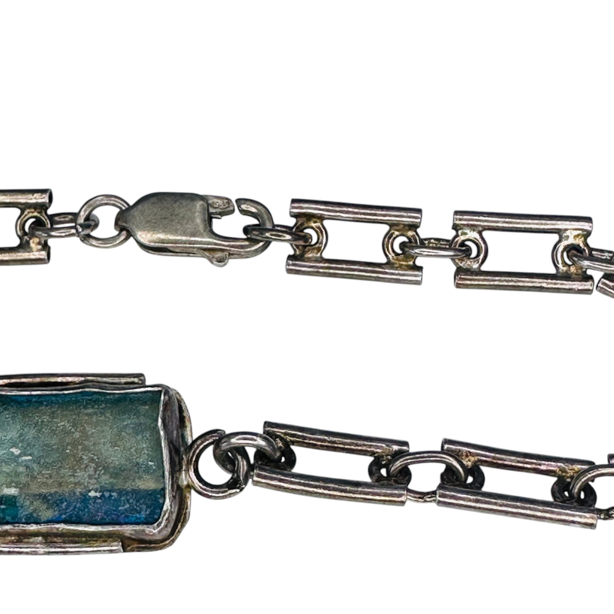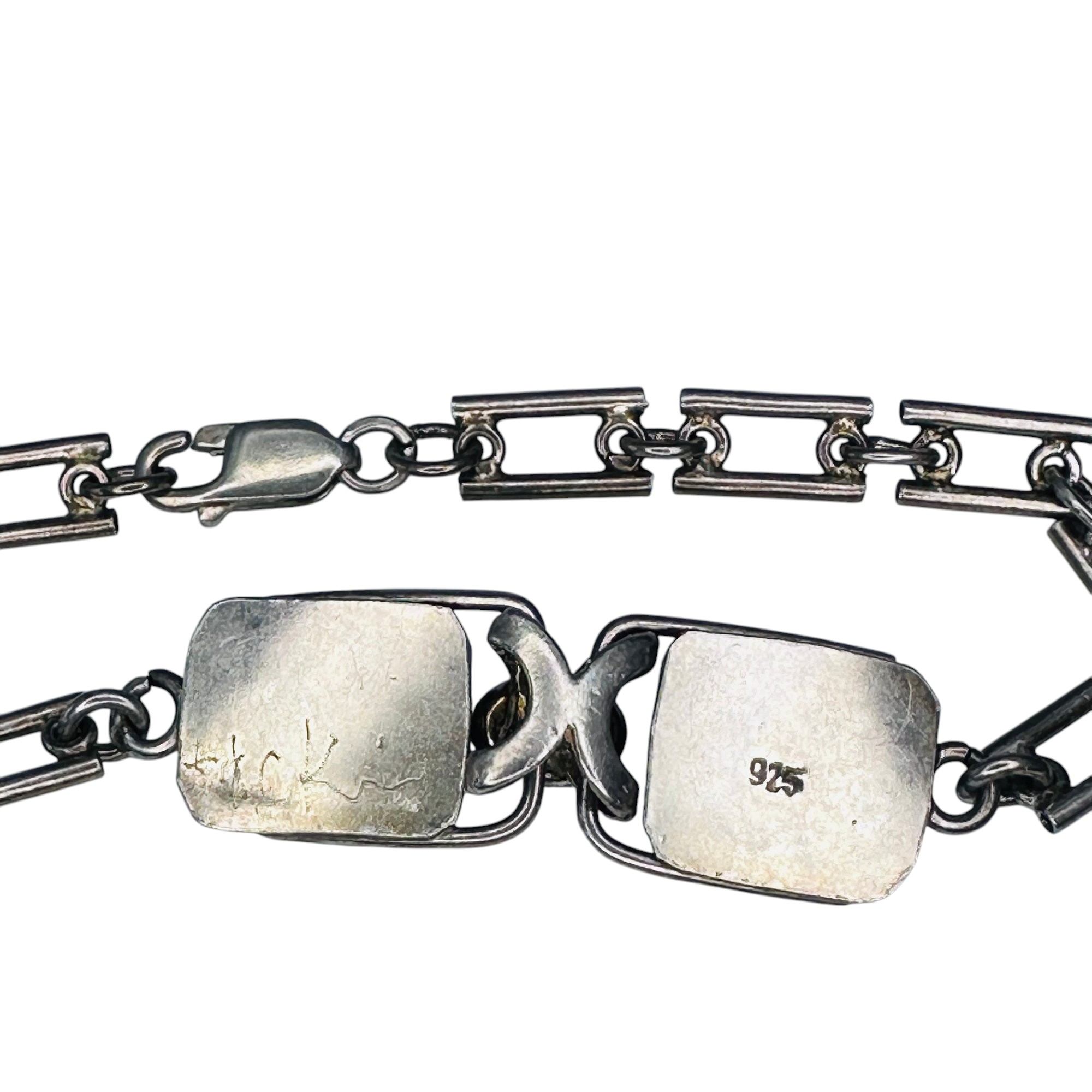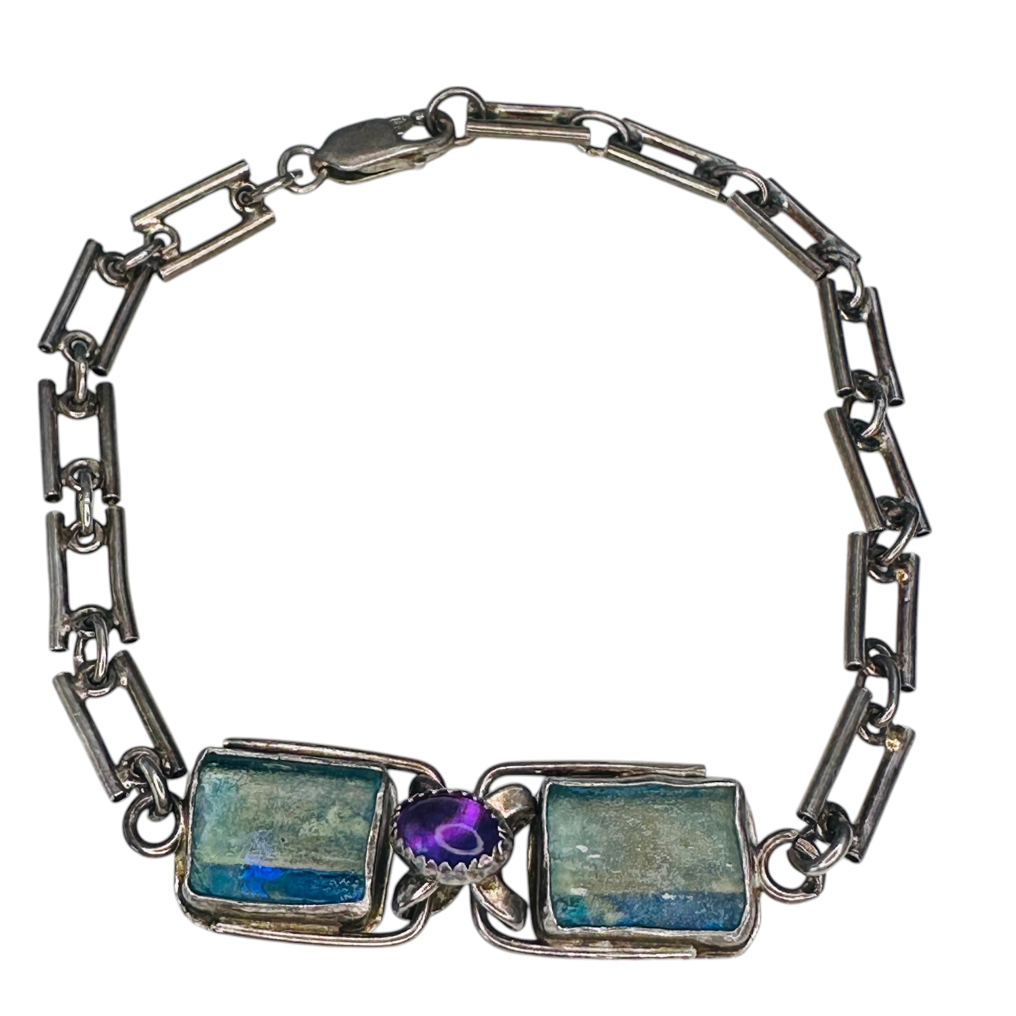 Signed AMETHYST Sterling silver blue stone Square link chain bracelet 9.67 g