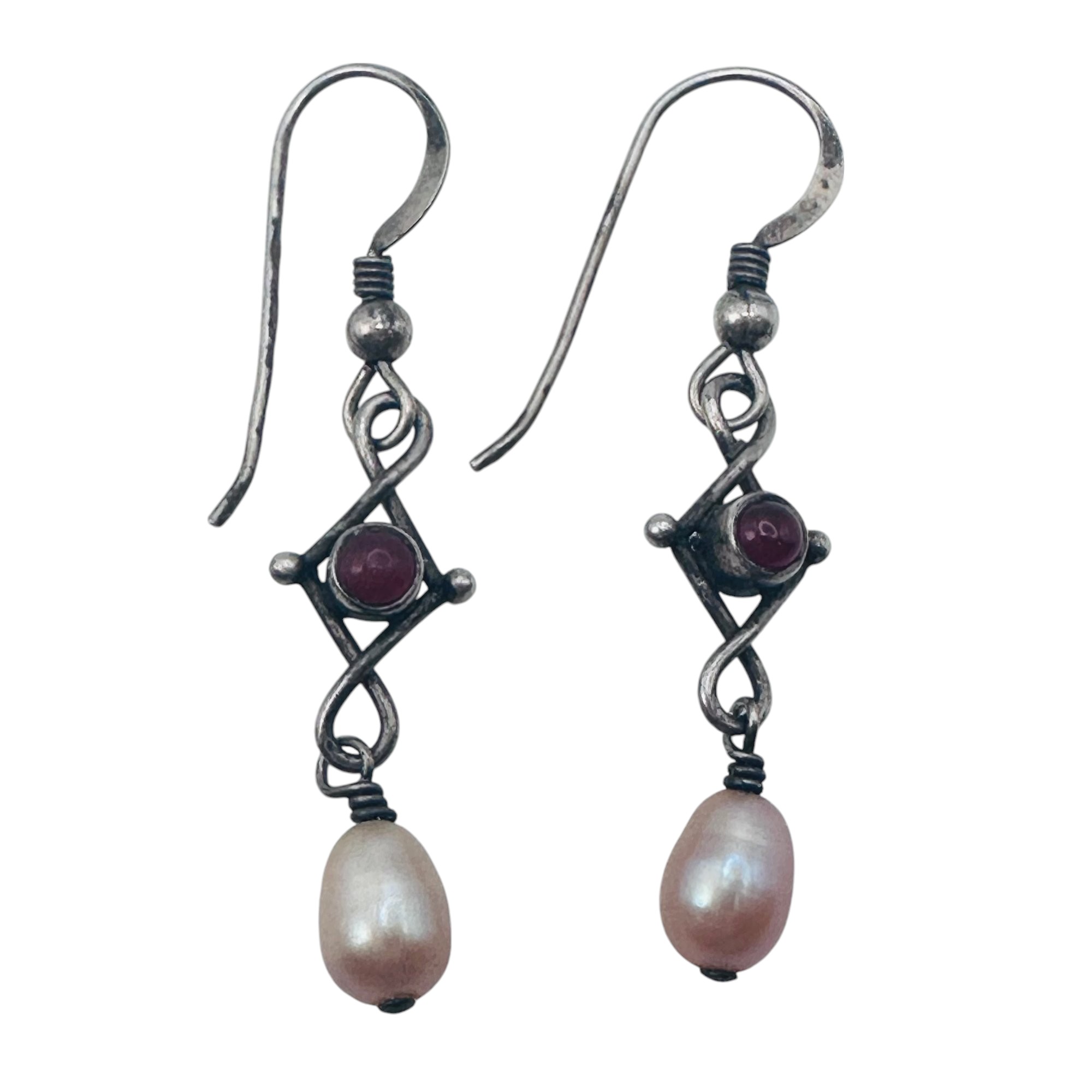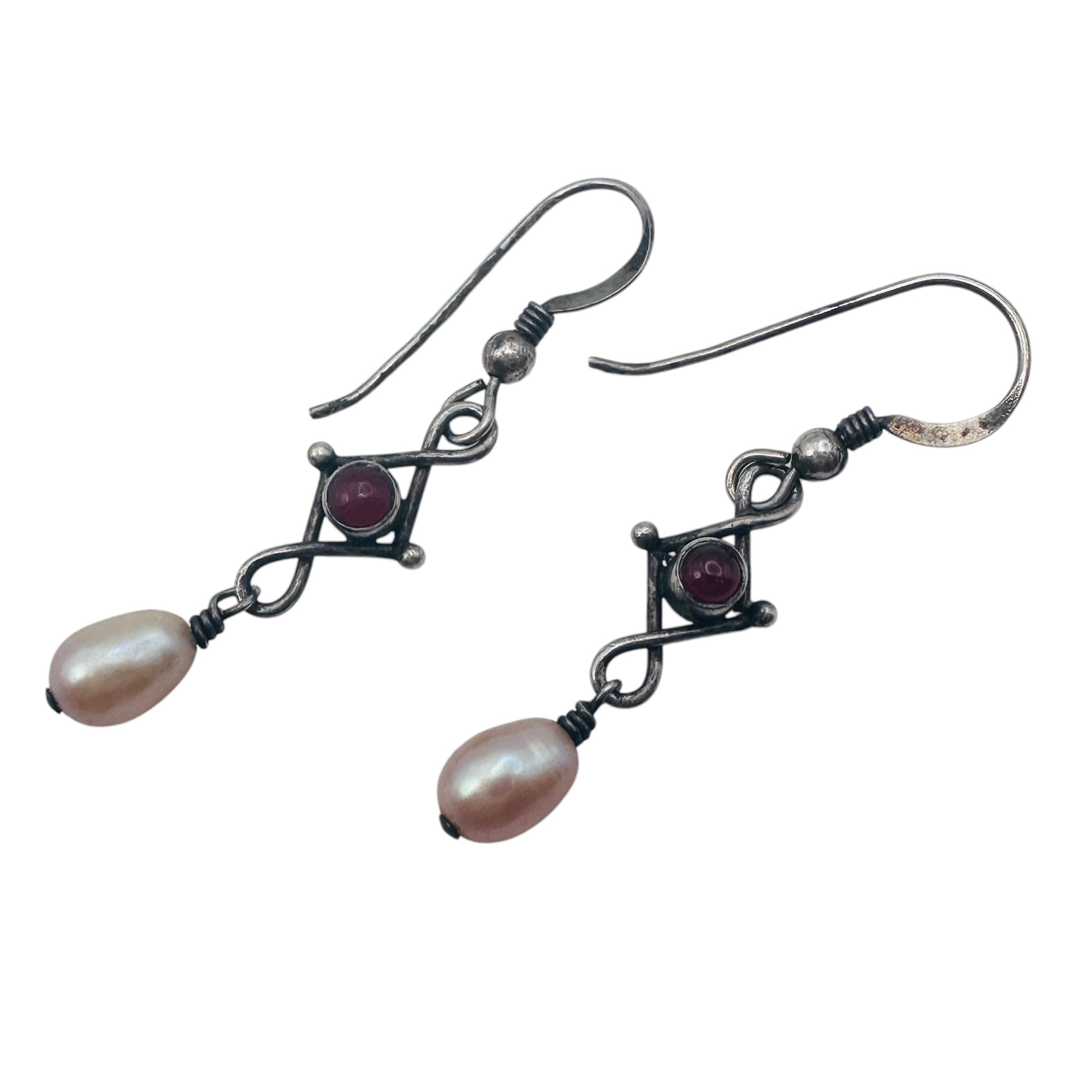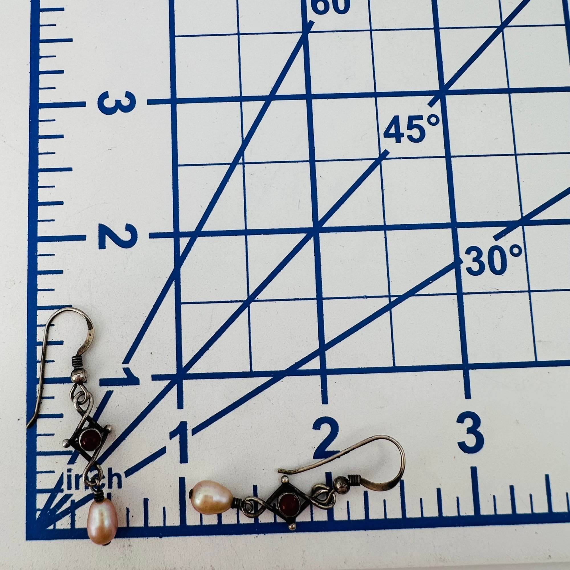 CD PEARL red rhinestone sterling silver dangle earrings 2.00 g