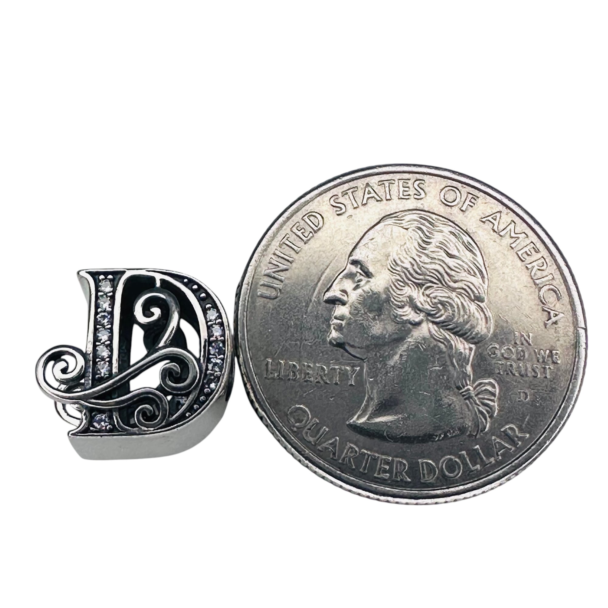 TOPAZ, Sterling Silver Letter D Pendant Unknown Symbol 2.49 G